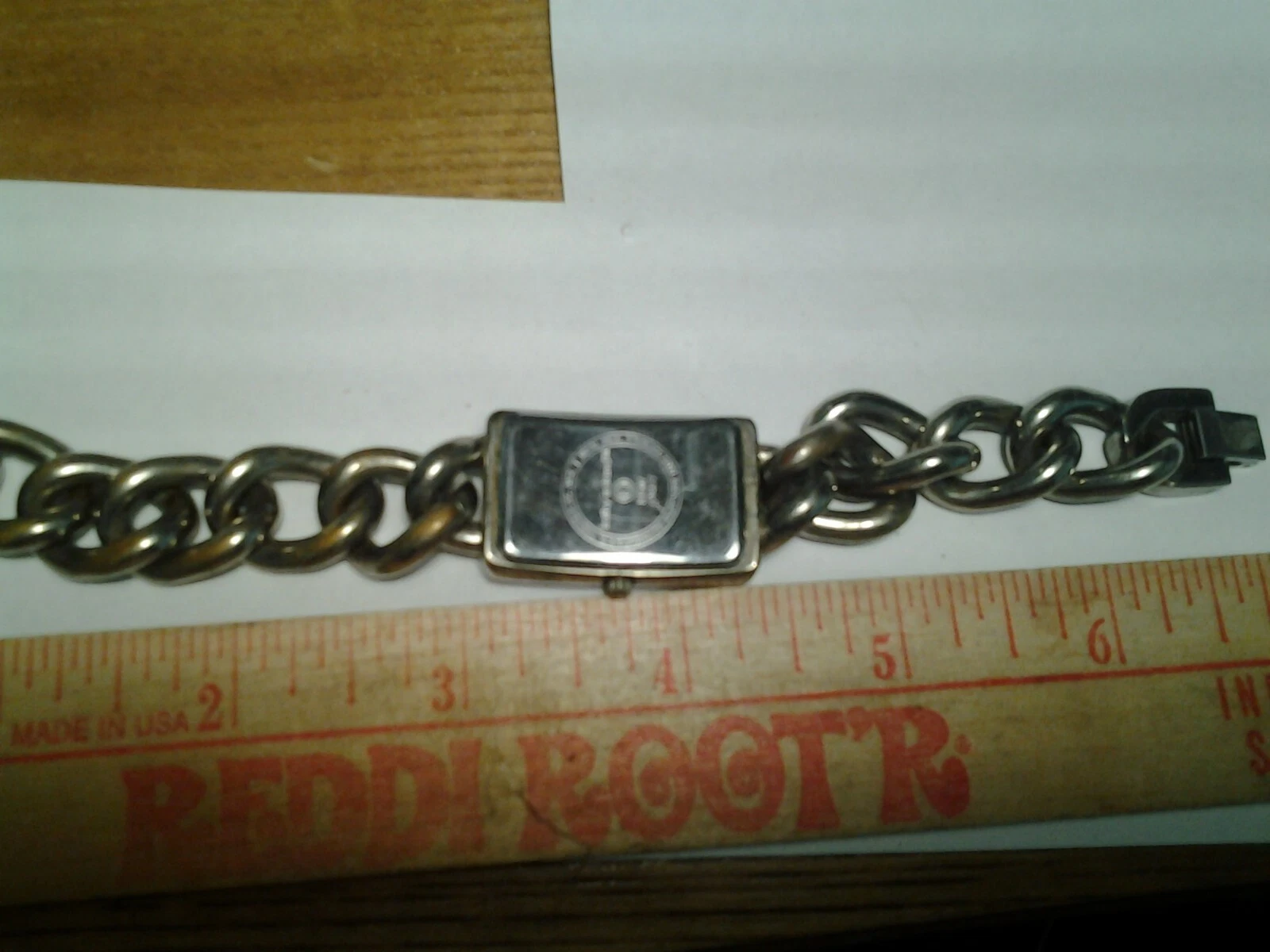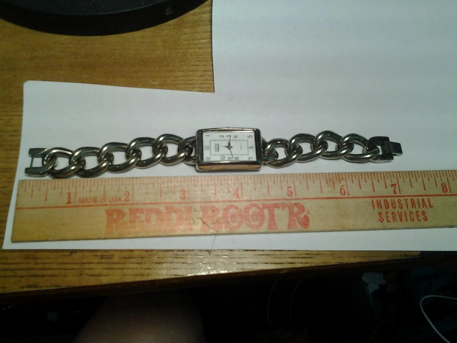 Kathy Ireland Wristwatch Silver Toned Link Band Rectangular White Face