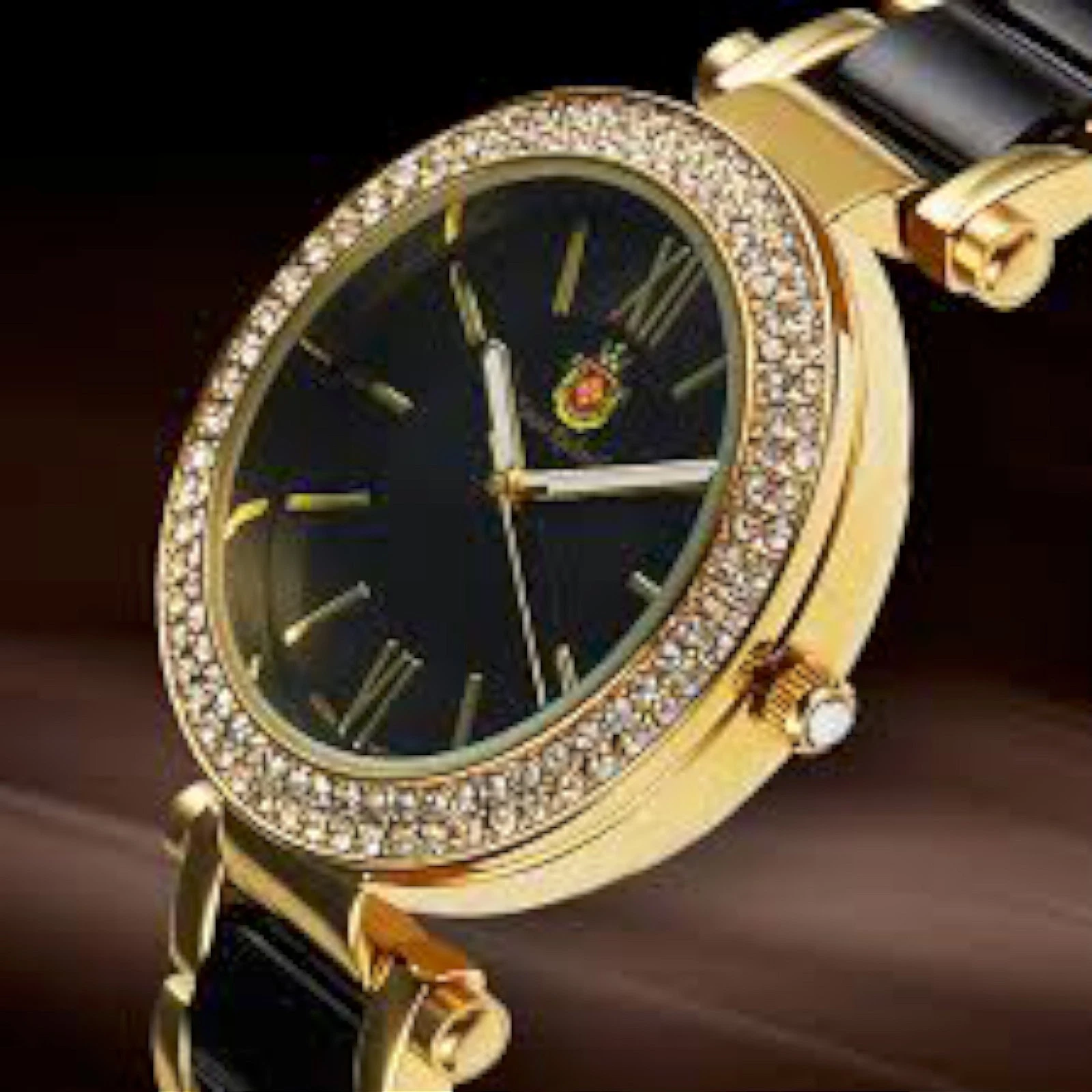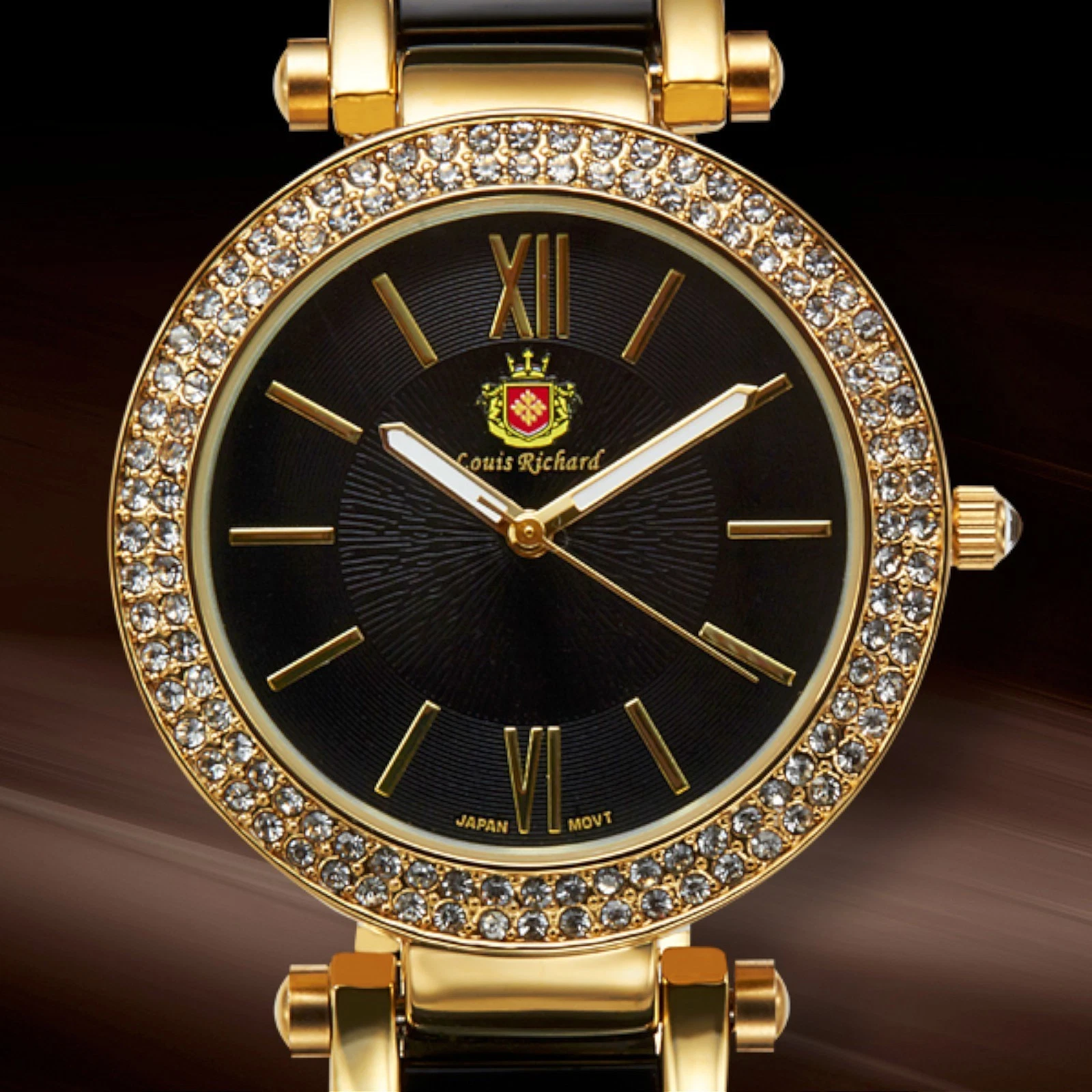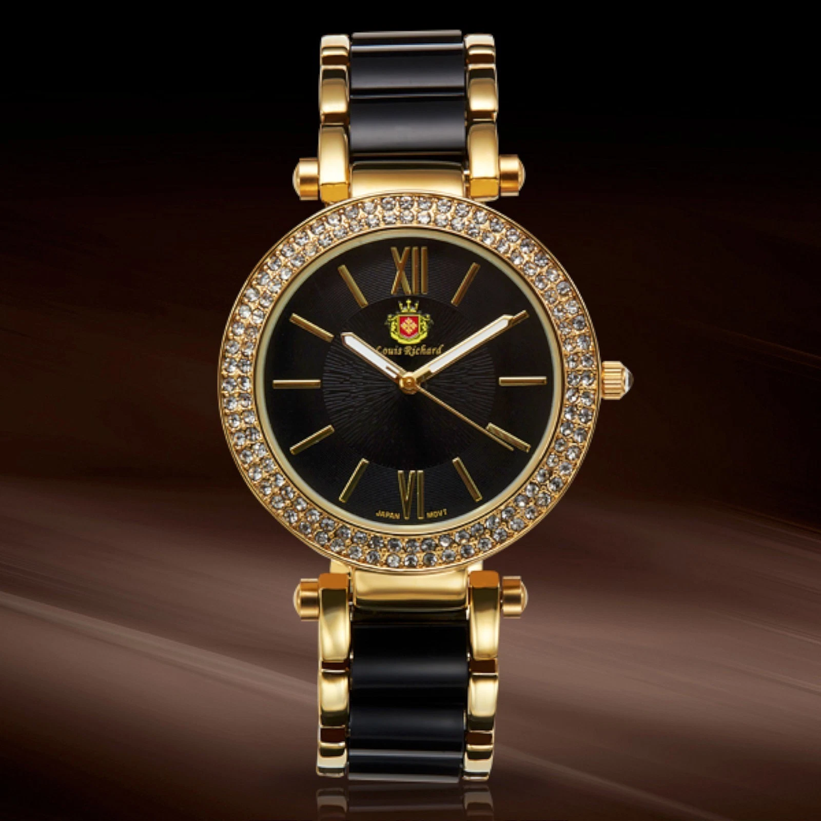 NEW Louis Richard 62623611 Gold & Black Bracelet Polyurethane Band Watch ladies