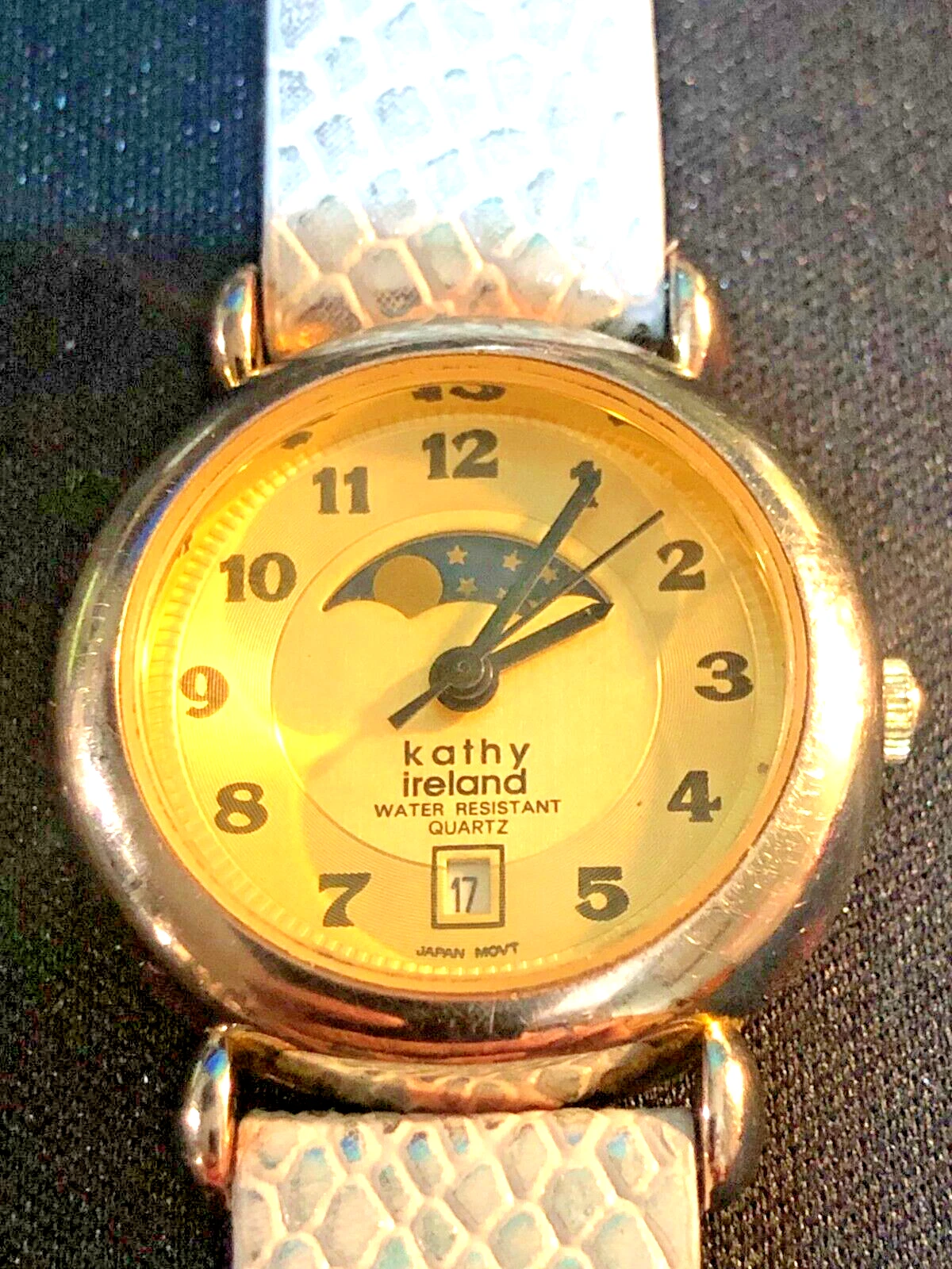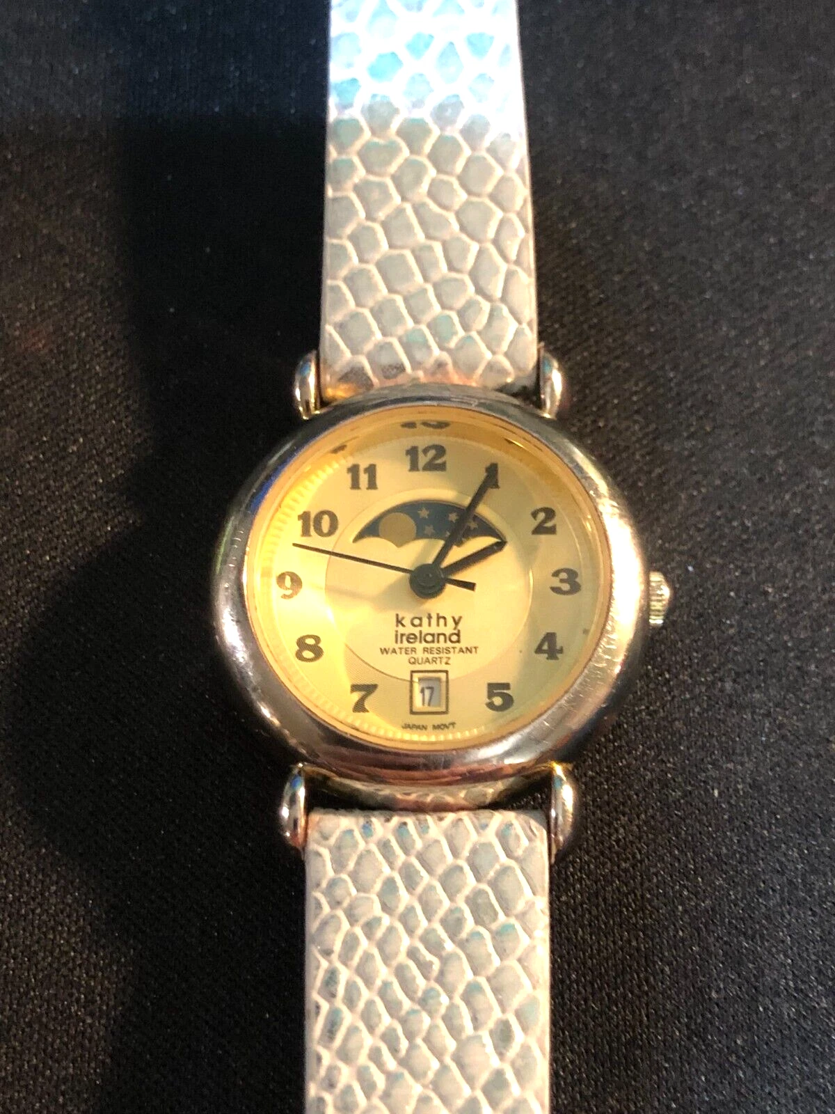 Vintage Kathy Ireland Moon Phase Watch Women 27mm Silve Tone NEW BATTERY & Band