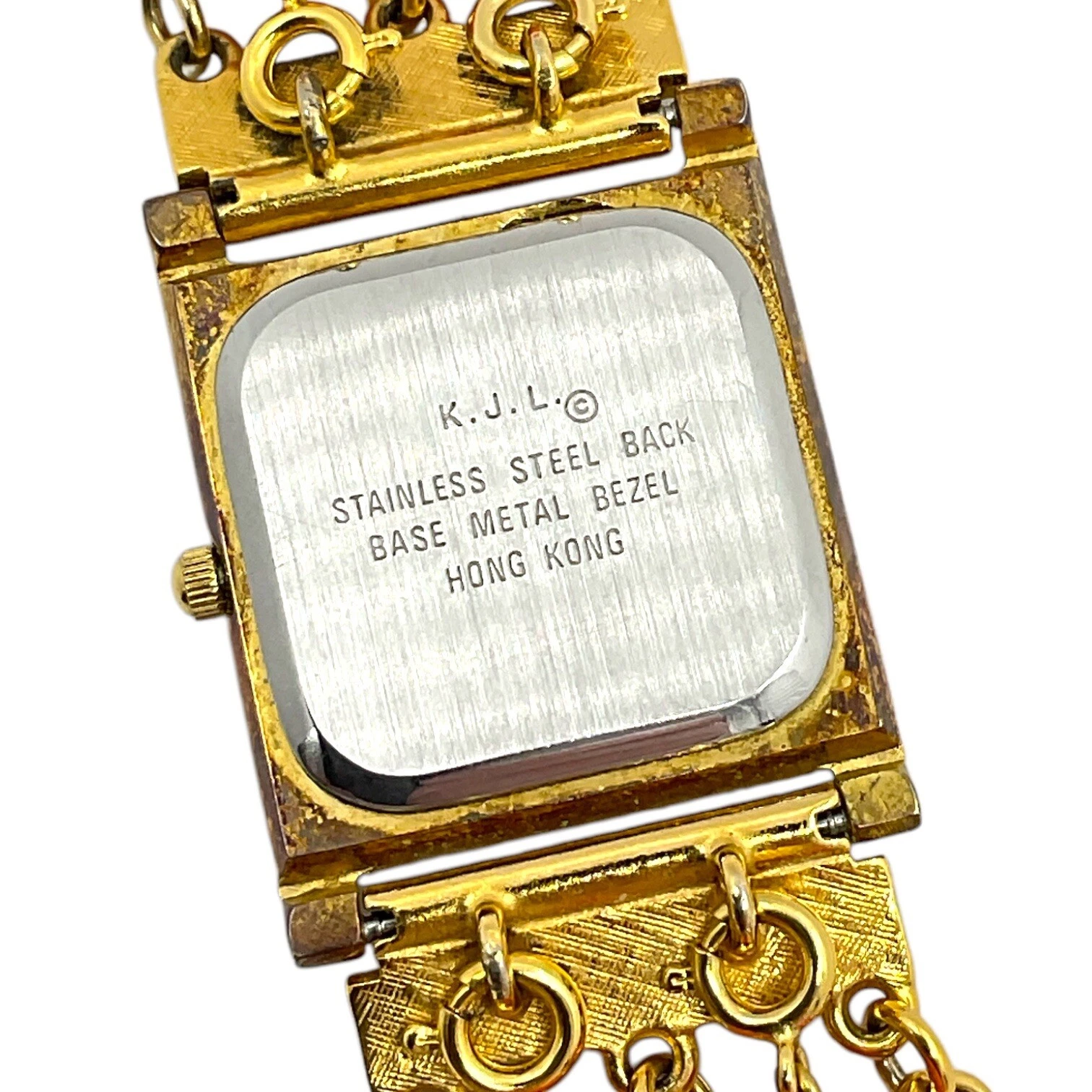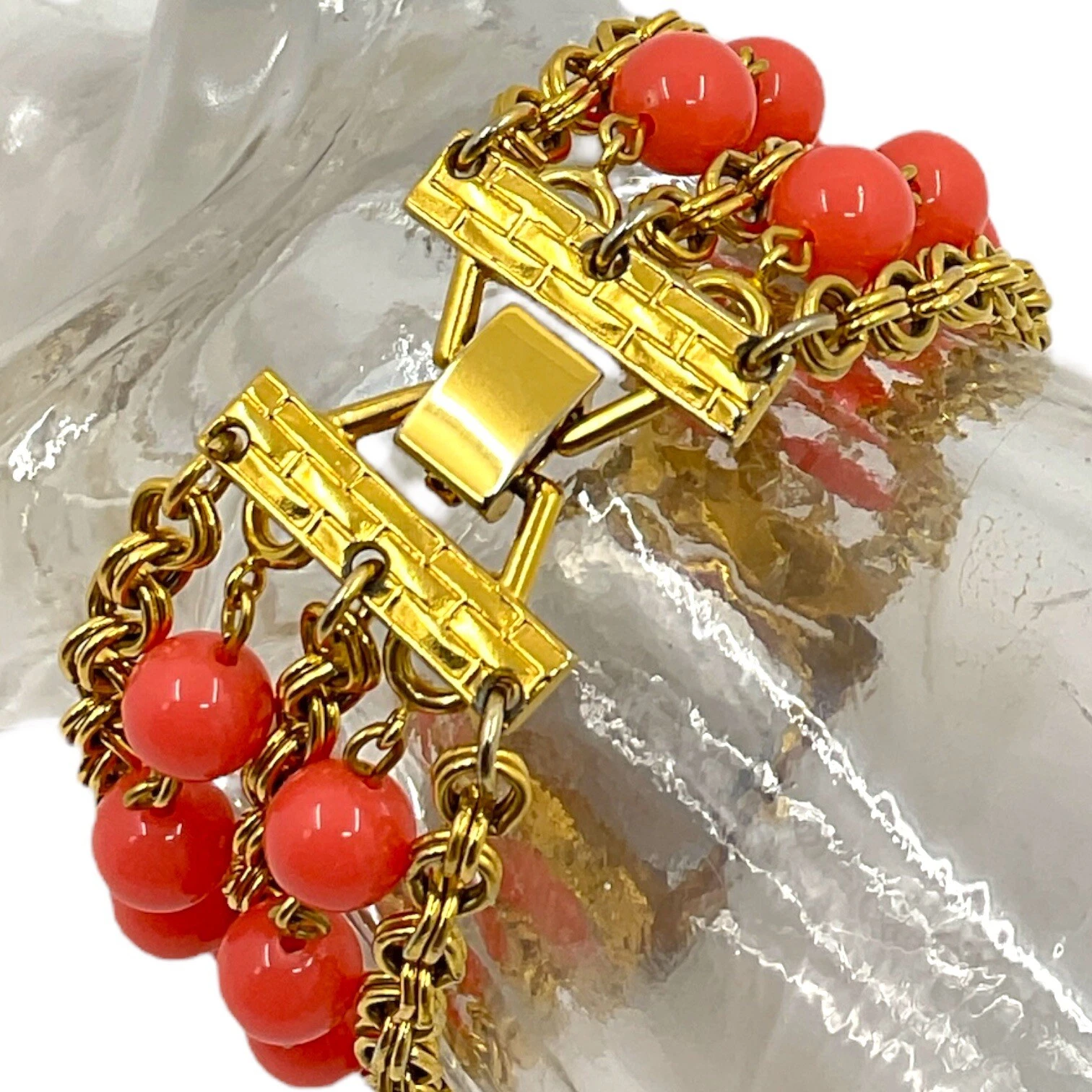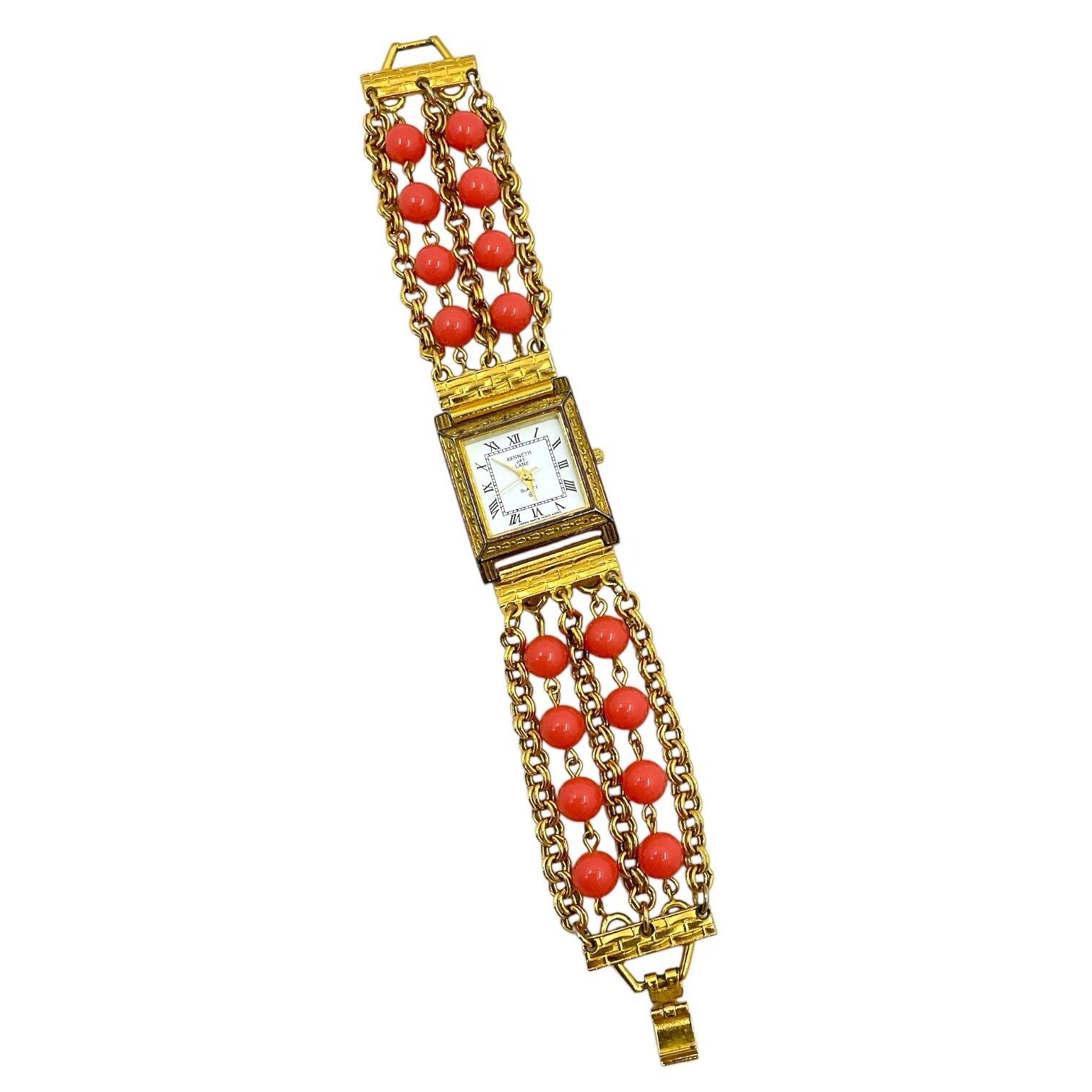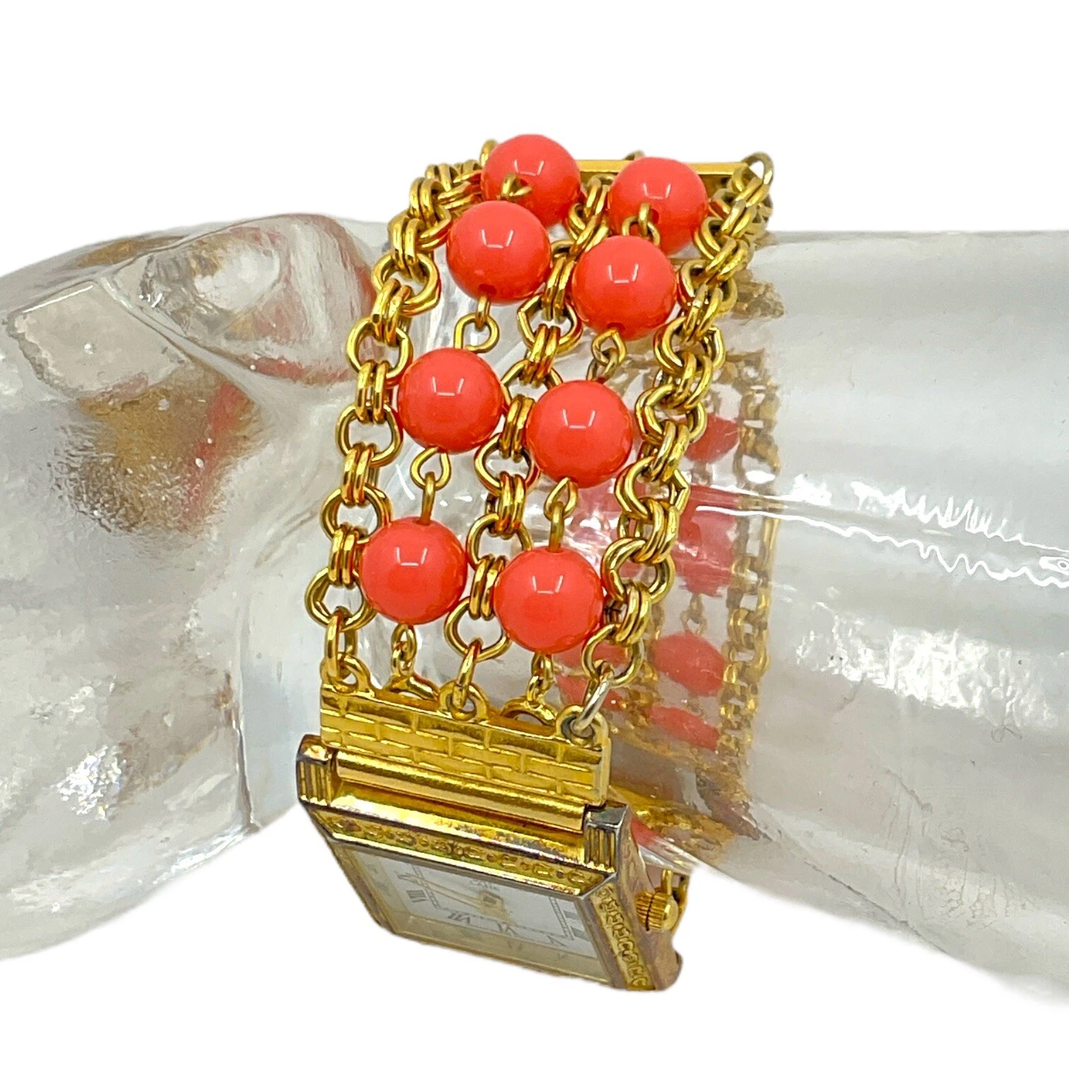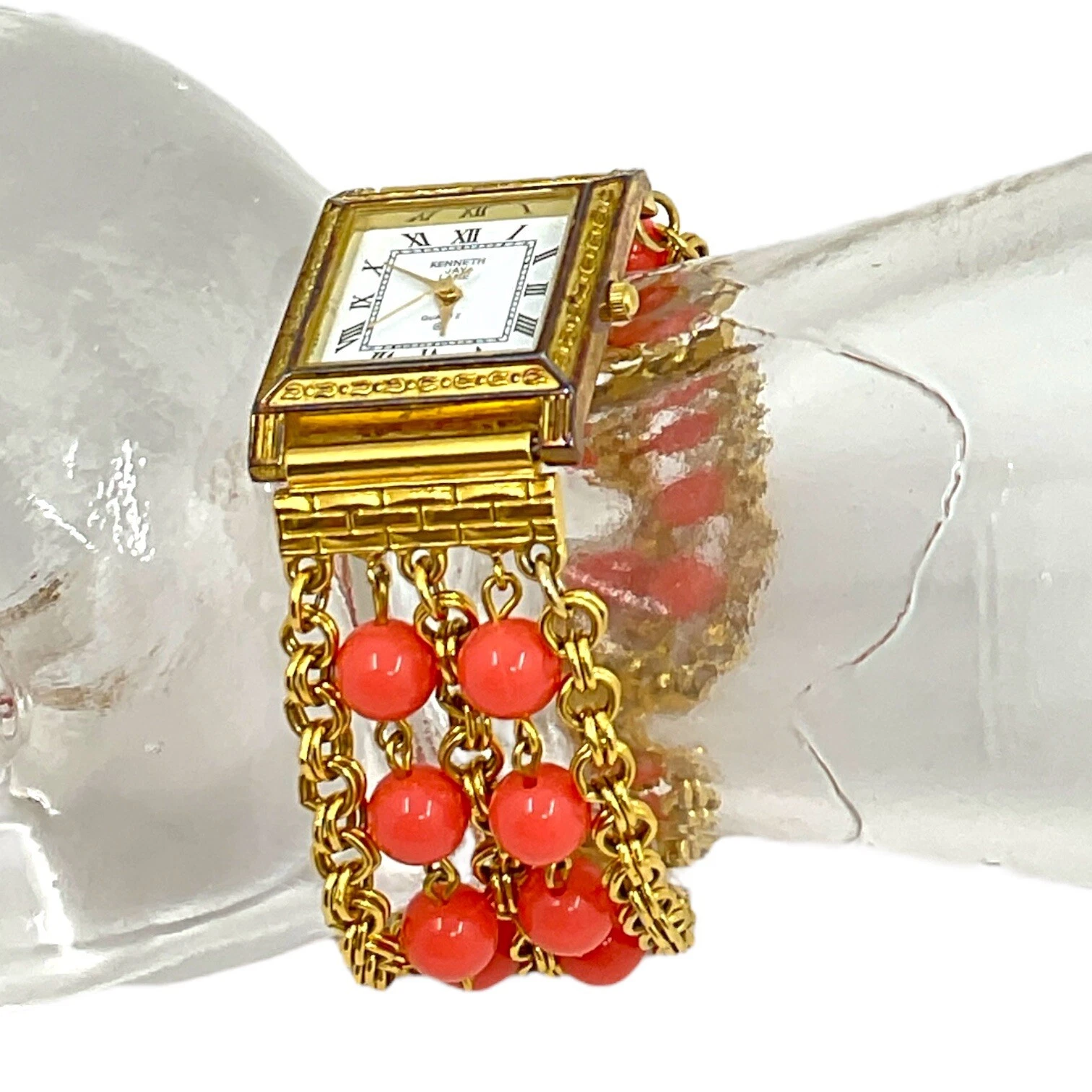 VTG Kenneth J Lane Gold Tone Watch Removable Faux Coral Beads New Battery Works