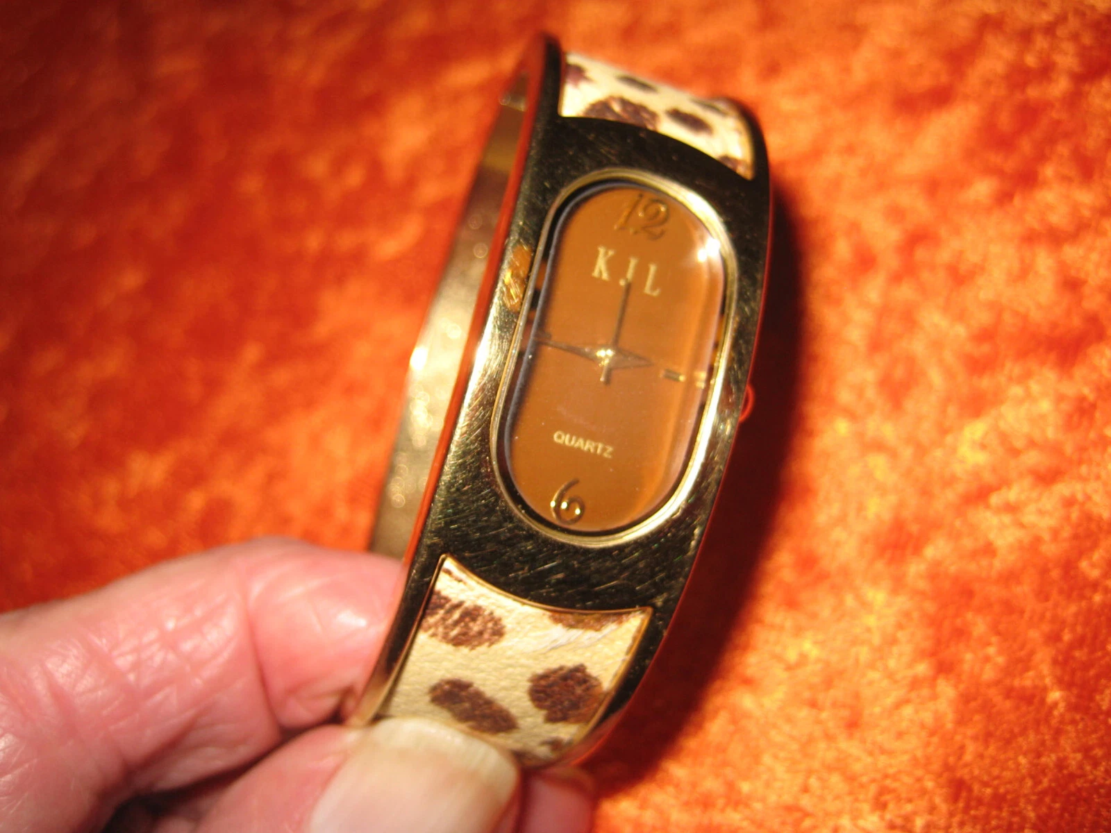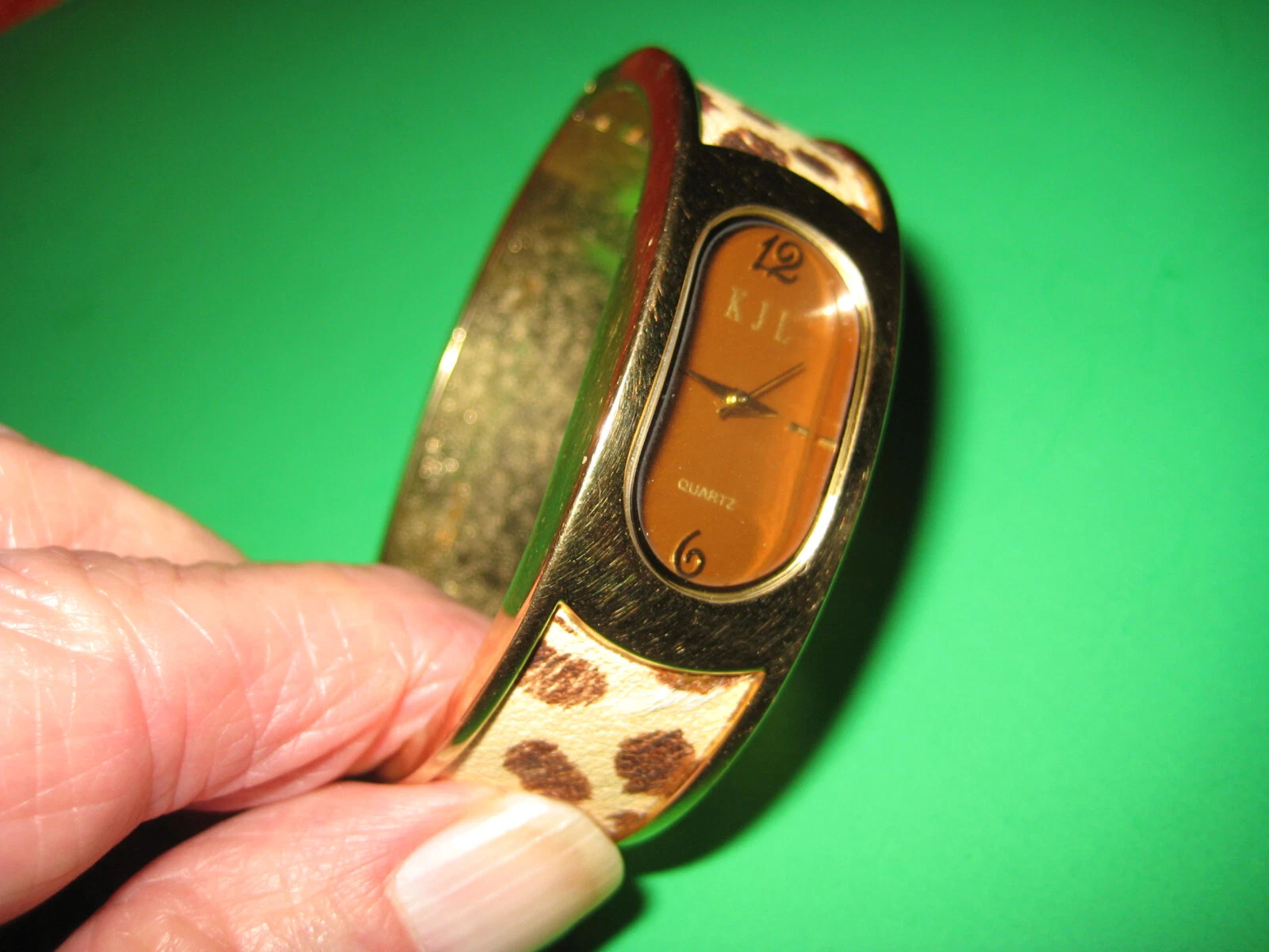 KJL LEOPARD BRACELET GOLD  ORIGINAL BOX LADIES W NEW BATTERY