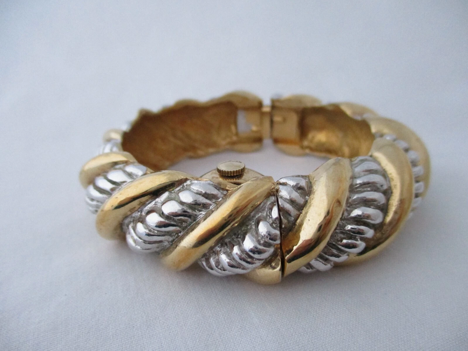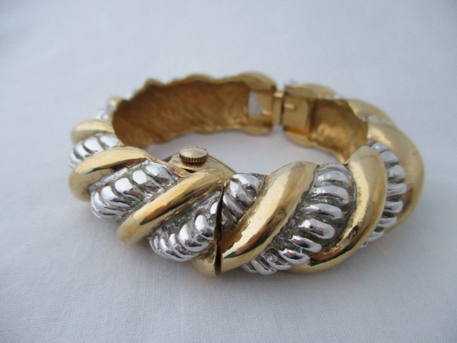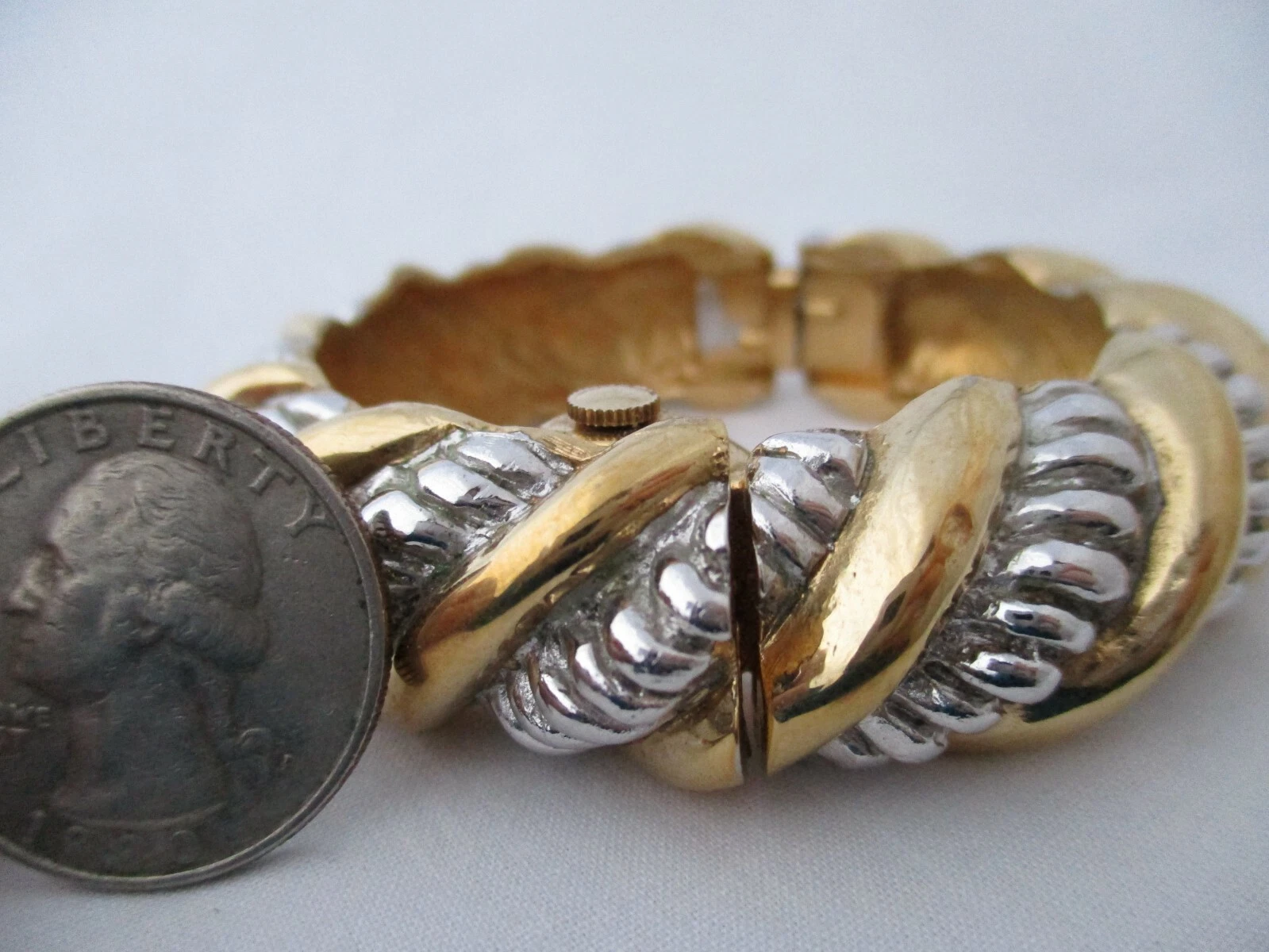 Kenneth Jay Lane Sheffield 17 Jewels Gold Toned Cuff Band Wind Up Watch