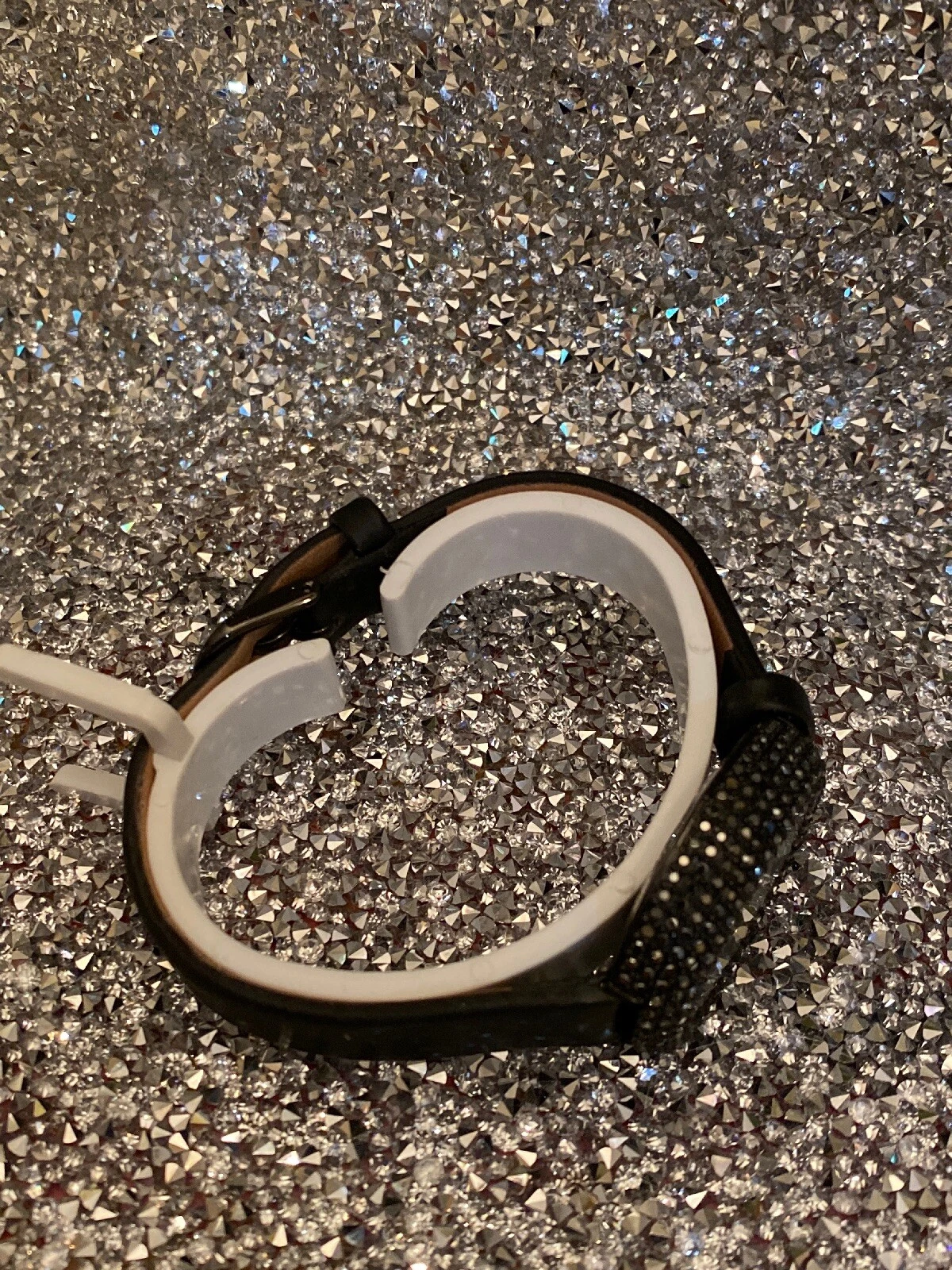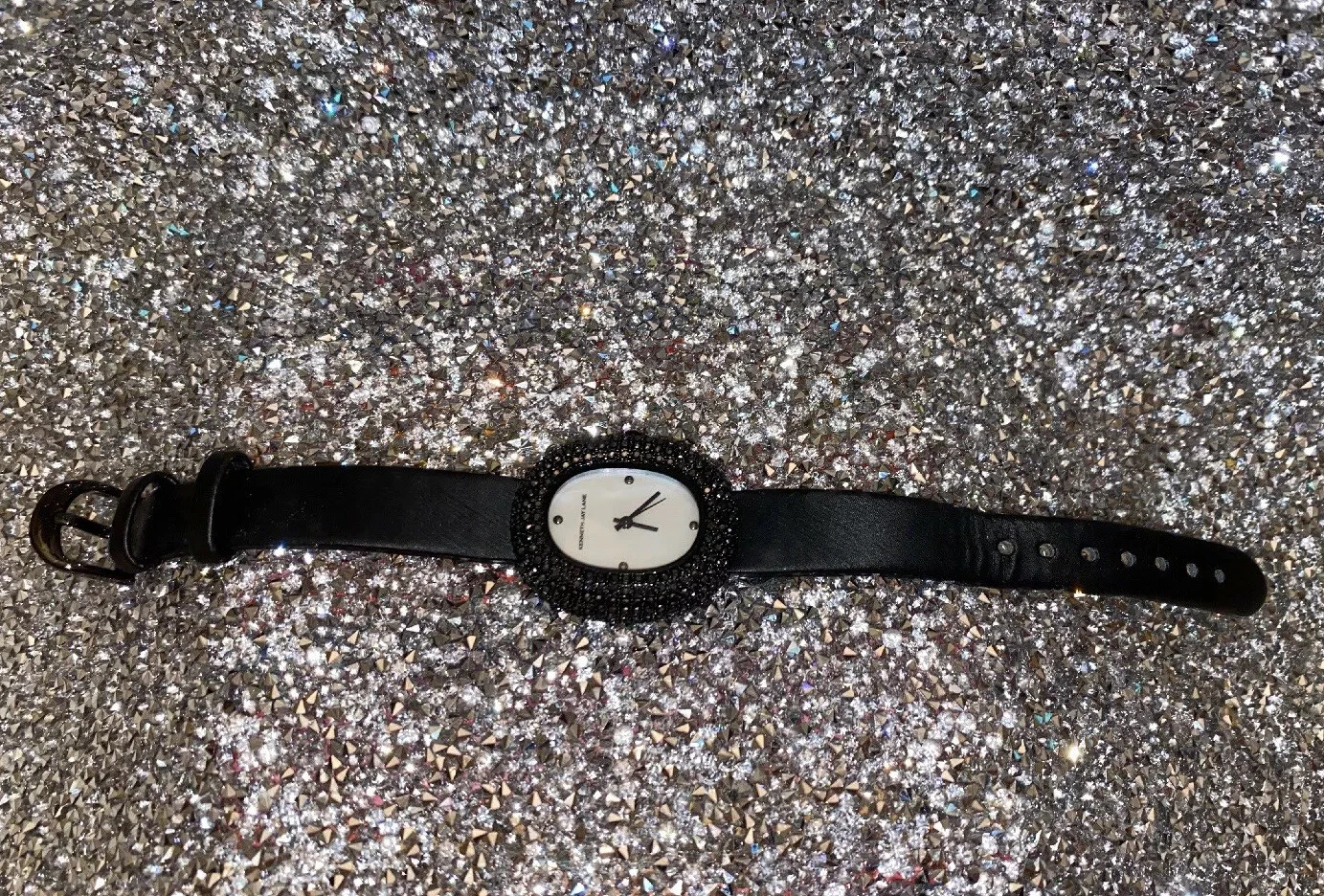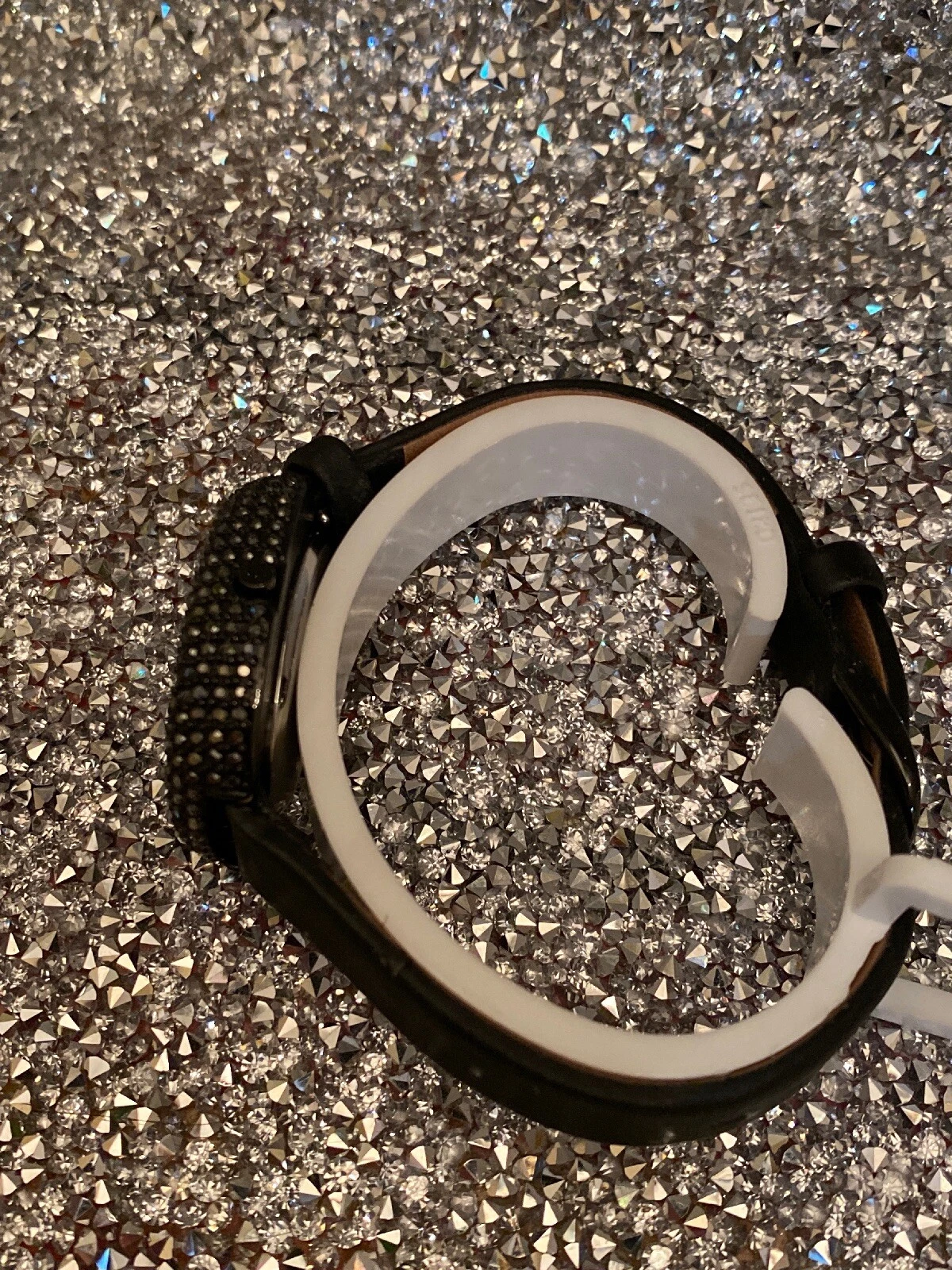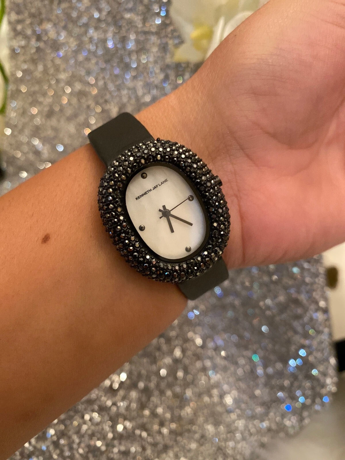 Kenneth Jay Lane KJL Ladies Crystal Studded Black Leather Watch