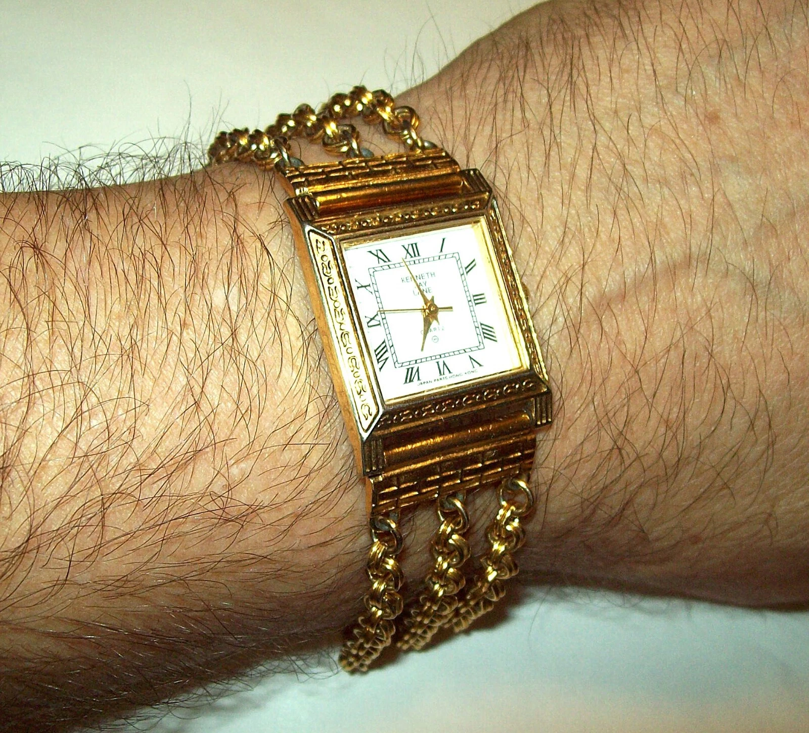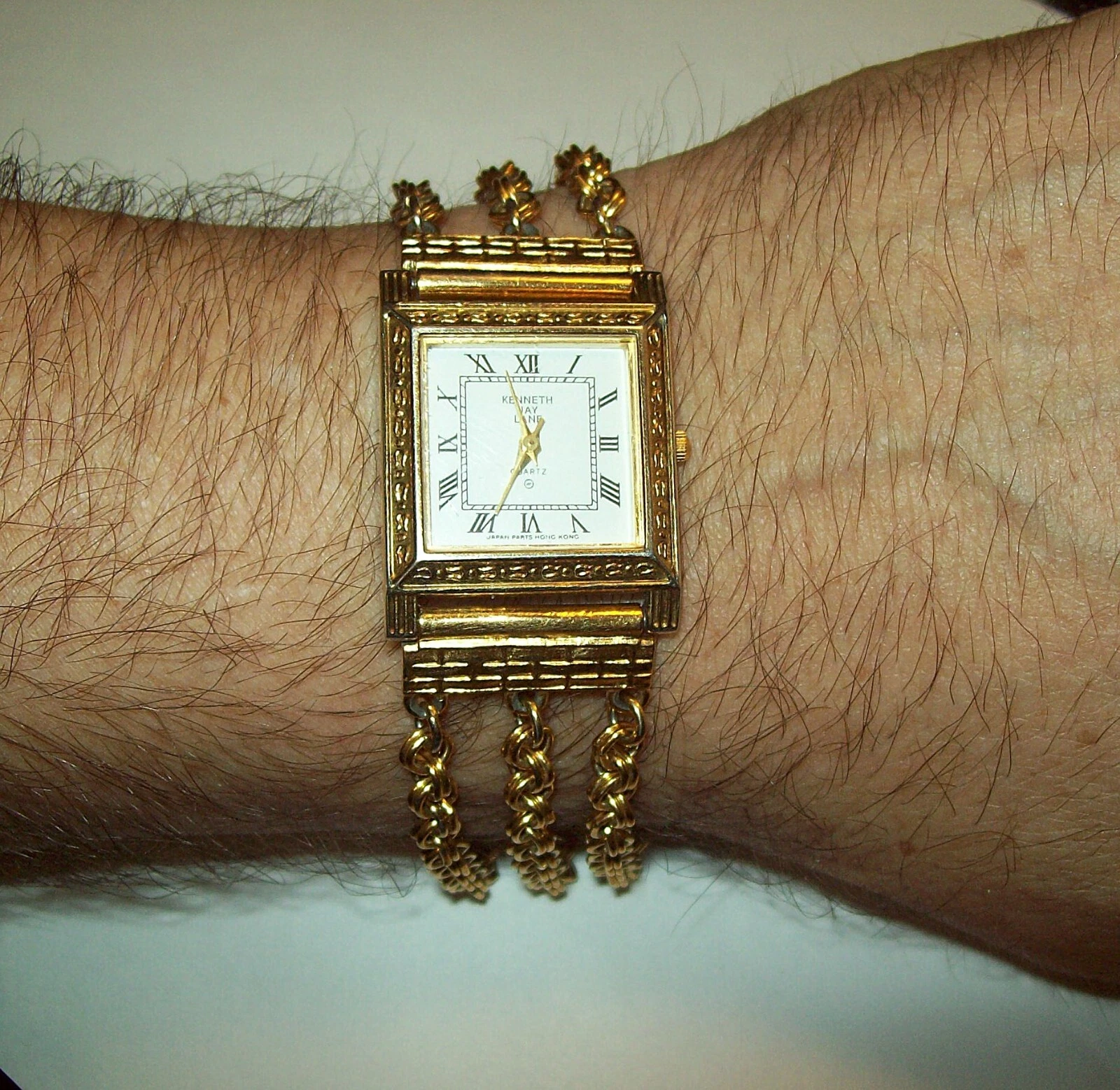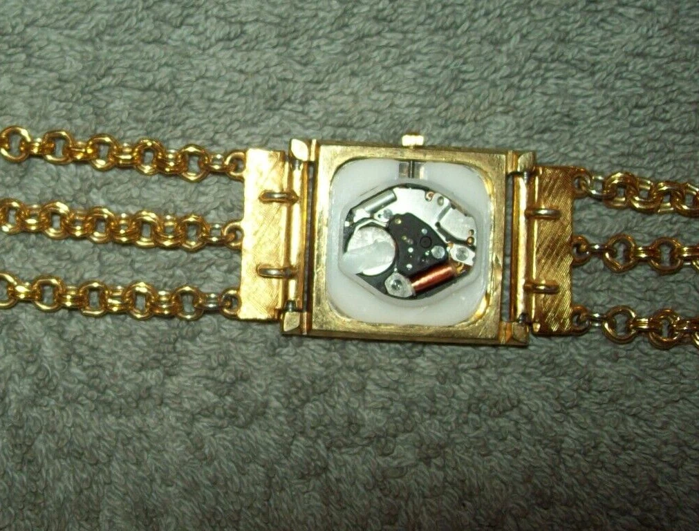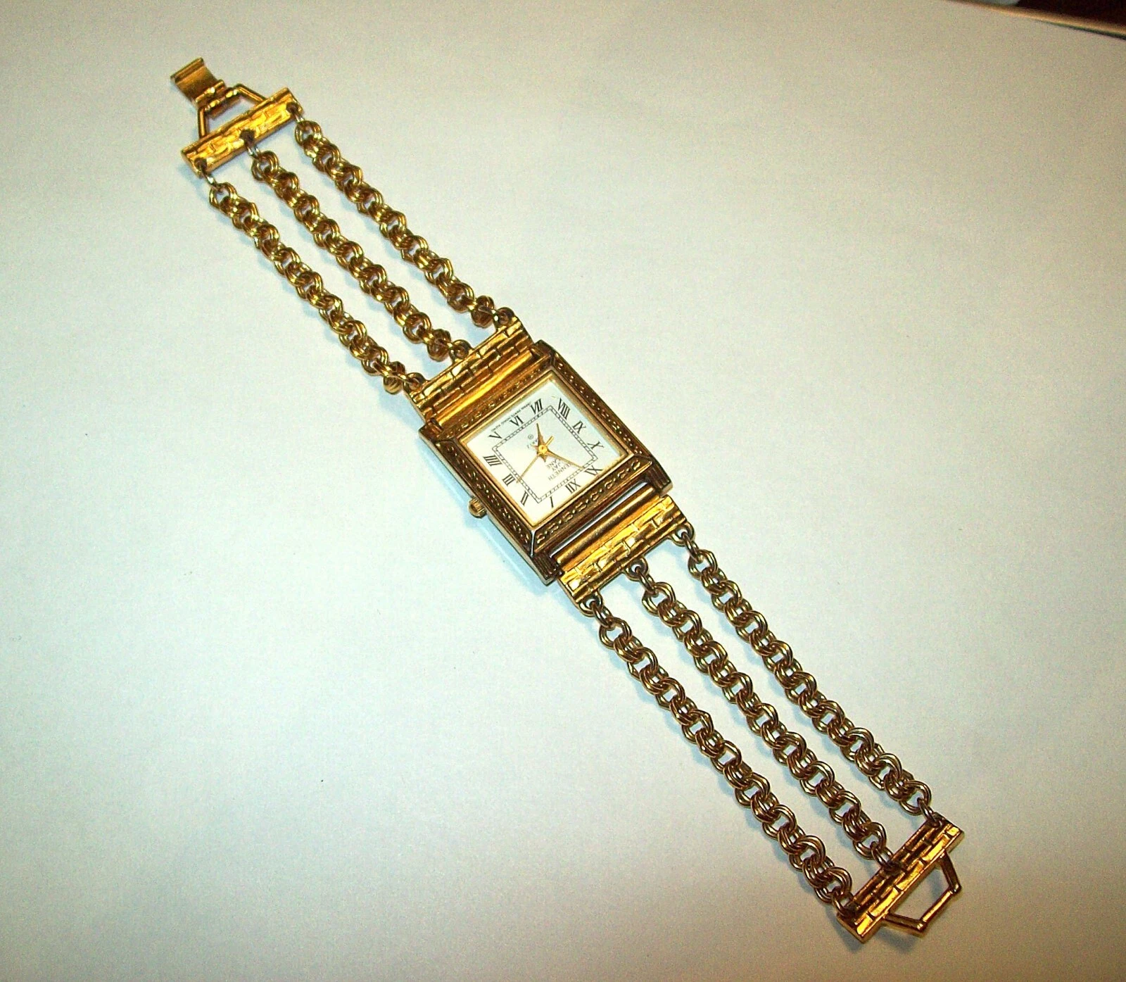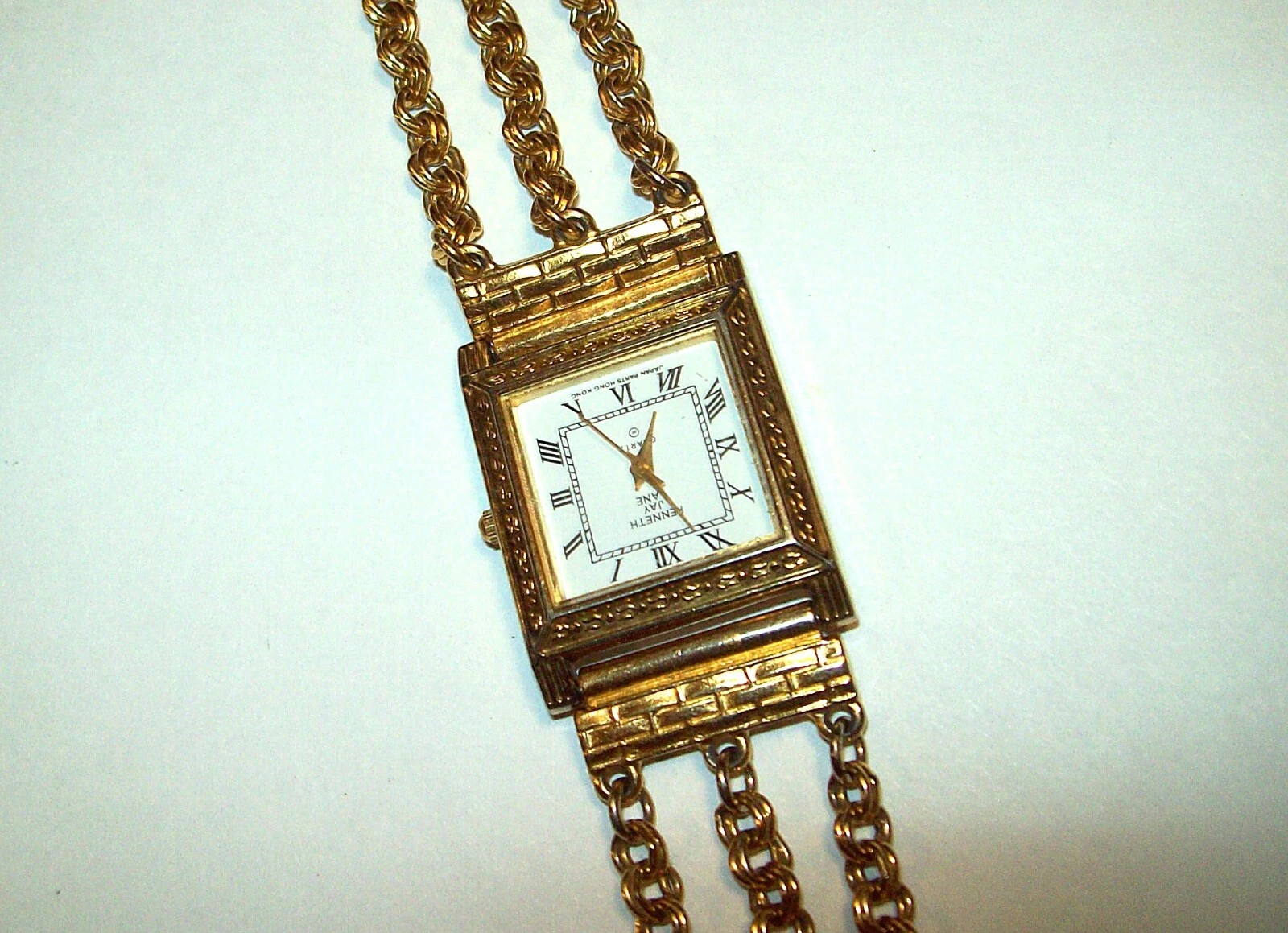 Kenneth Jay Lane Luxury Style Watch Tri-Strand Gold Bracelet Dress Vintage
