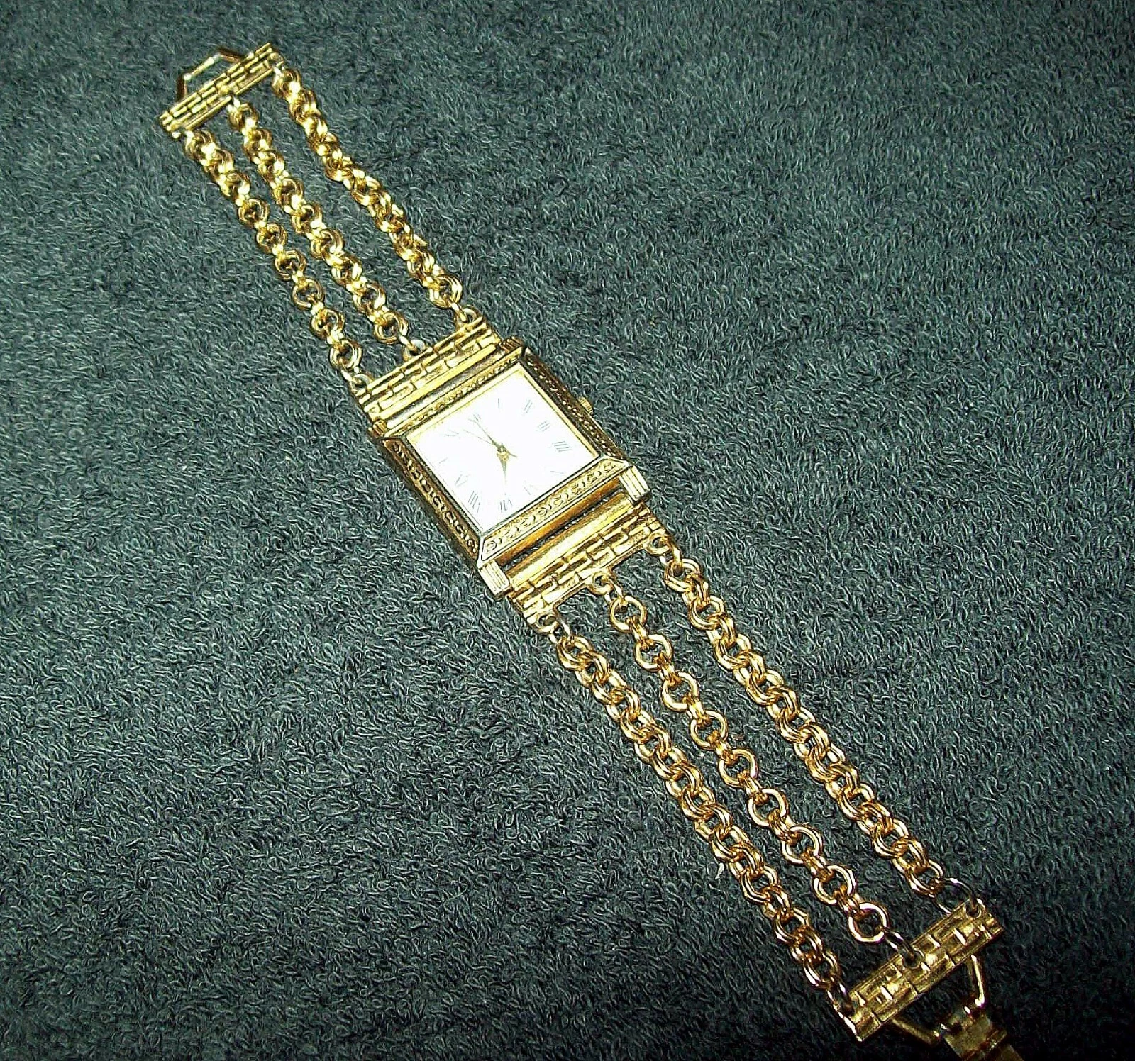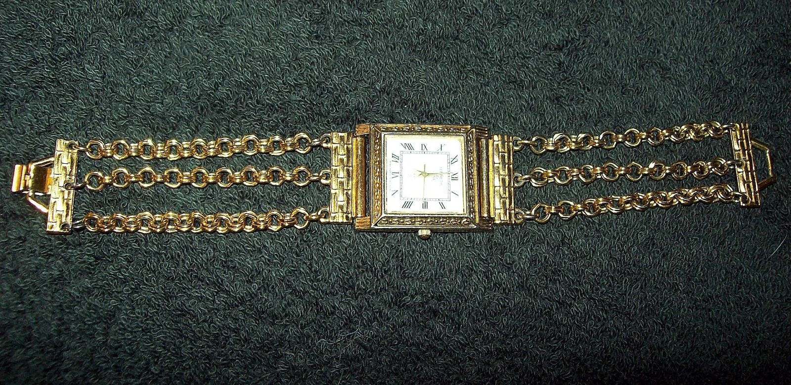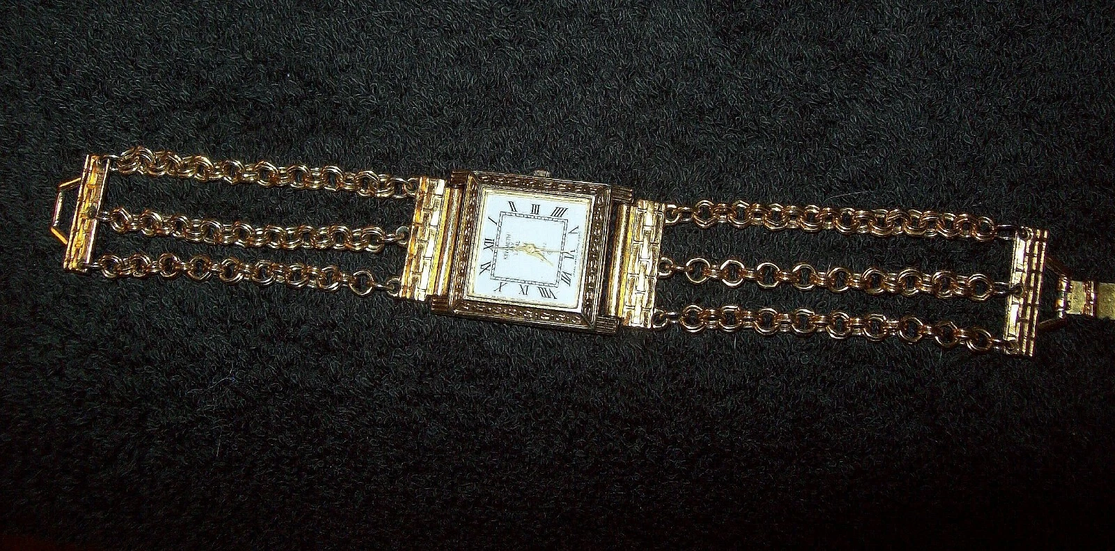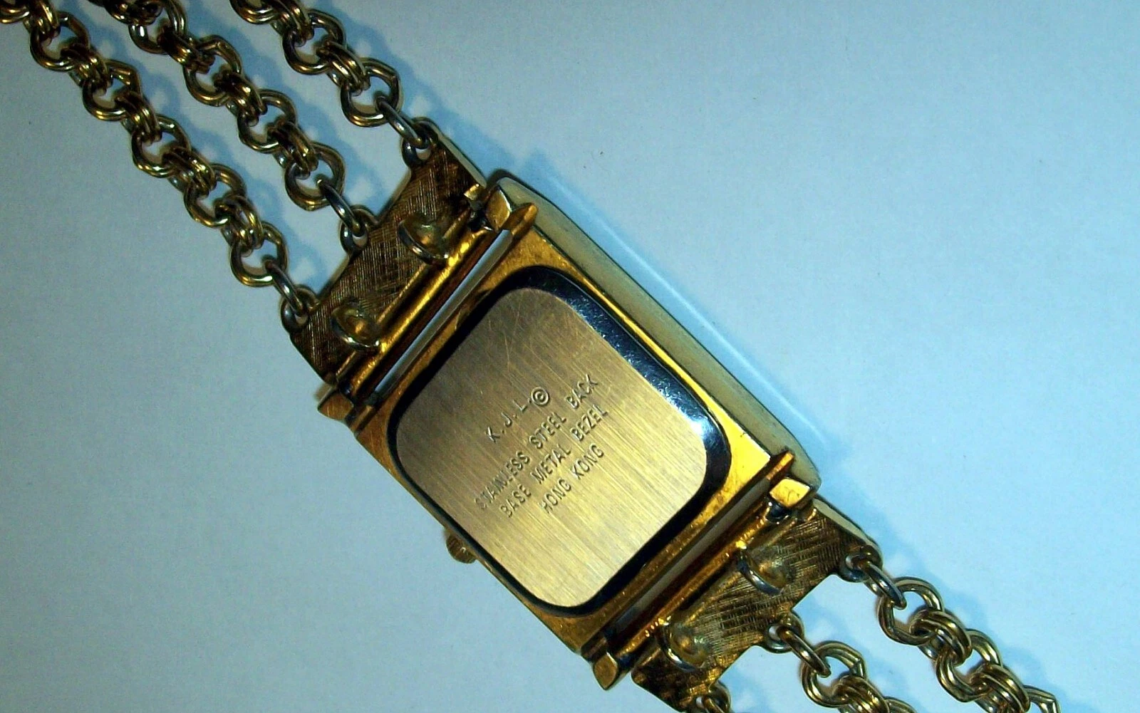 Kenneth Jay Lane Luxury Style Watch Tri-Strand Gold Bracelet Dress Vintage