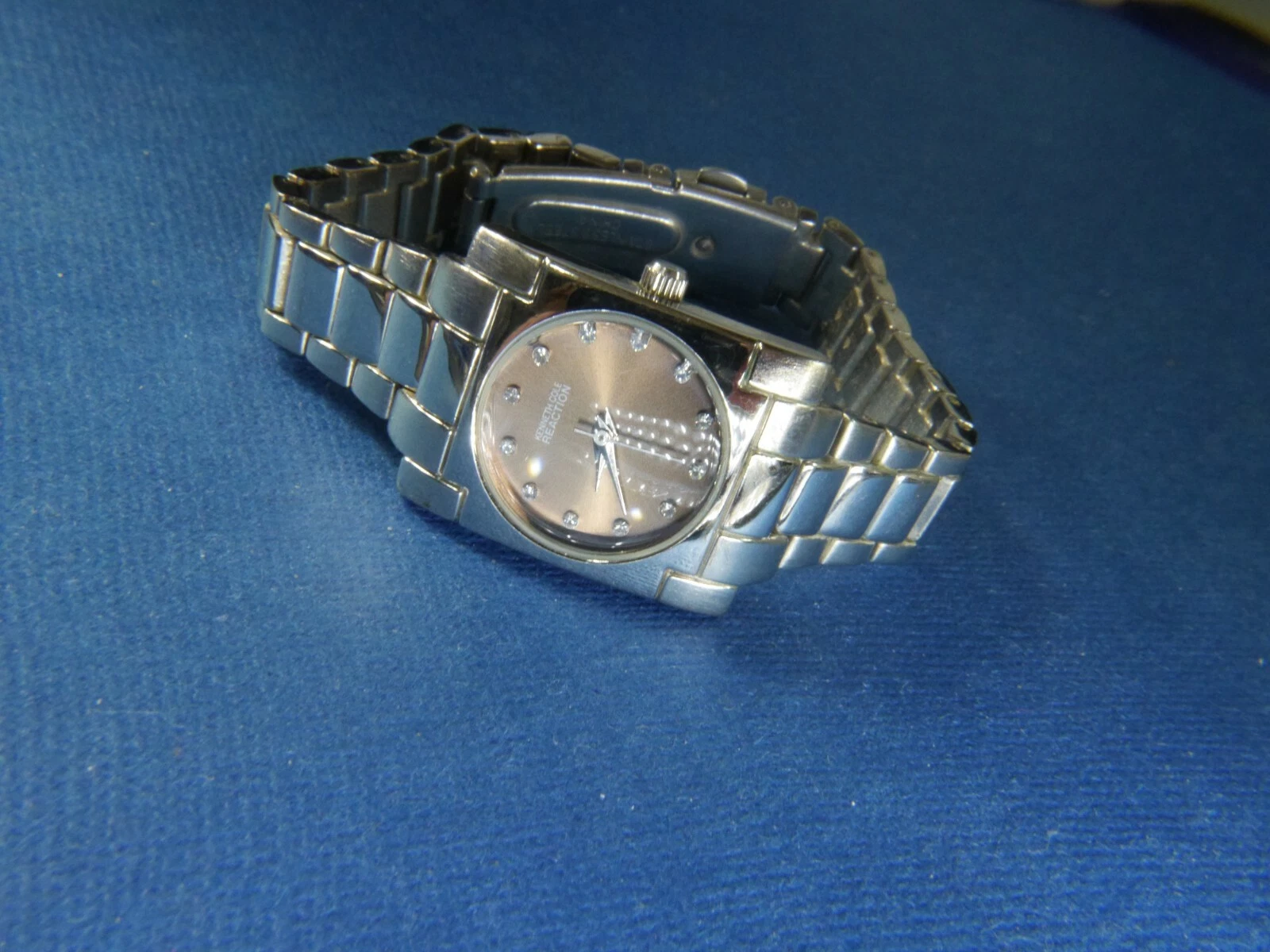 KENNETH COLE REACTION A126 11 SILVER TONE DEPLOYANT band WATCH FRESH BATTERY A25