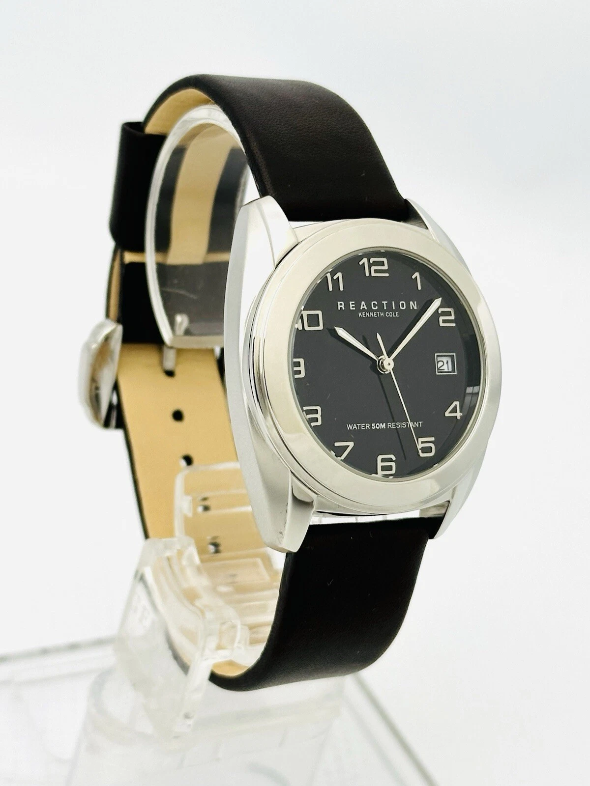Reaction By Kenneth Cole RK1017 Dark Blue Dial Dark Brown Leather Strap Watch