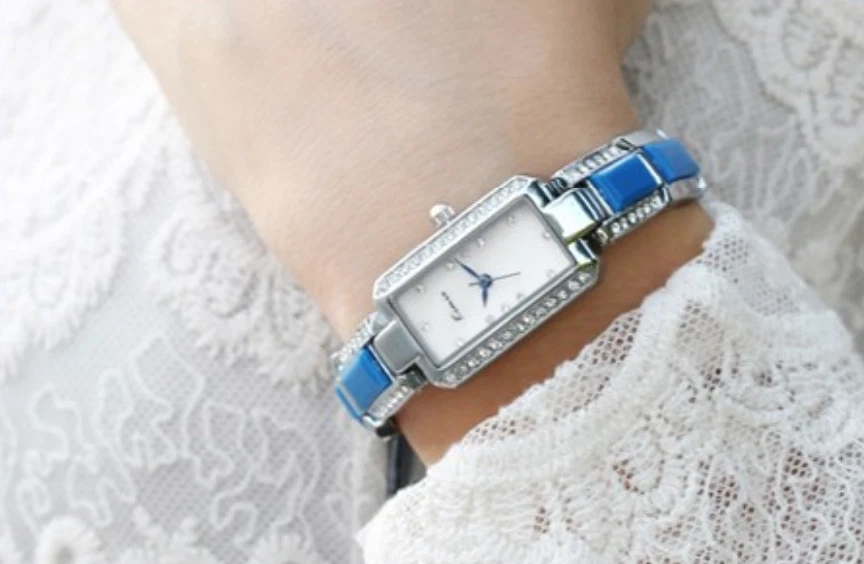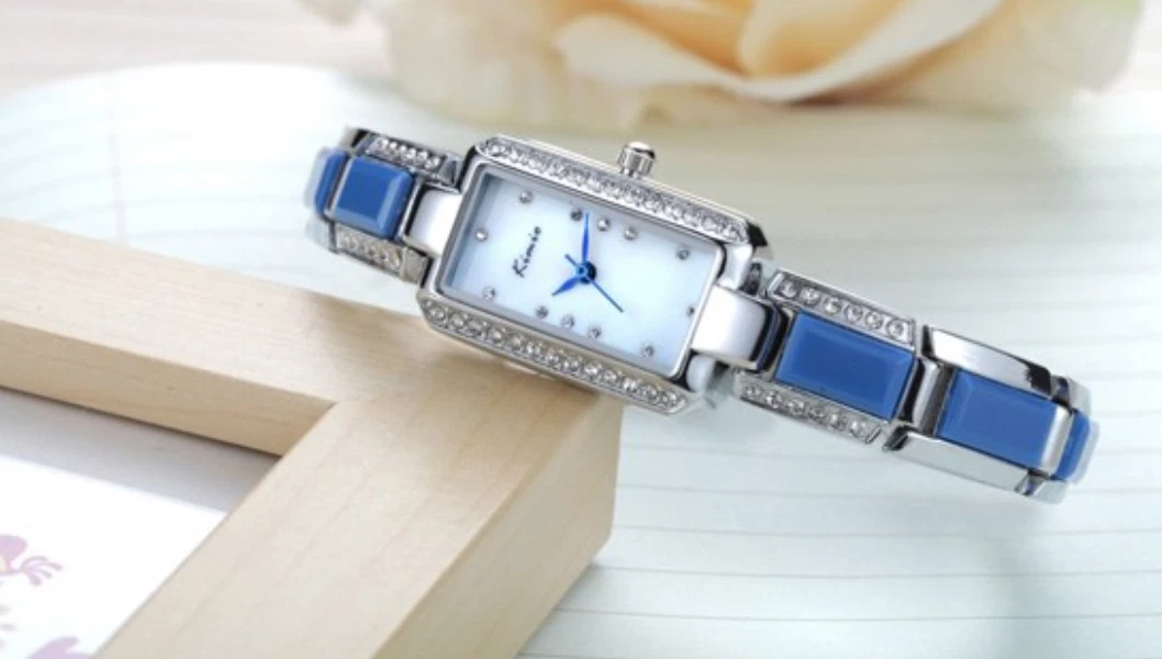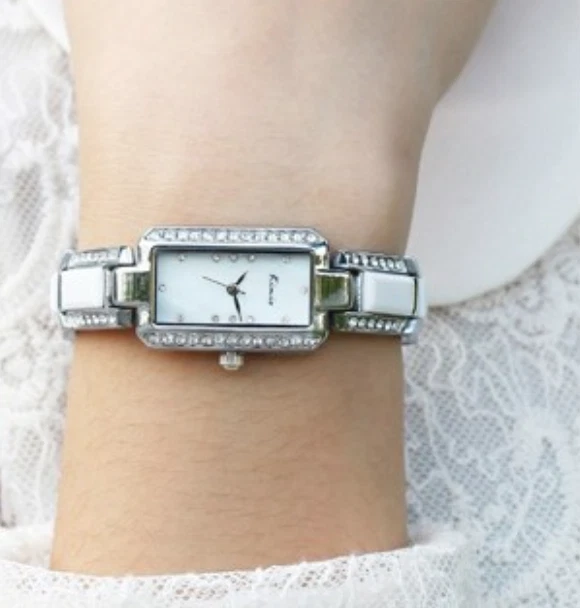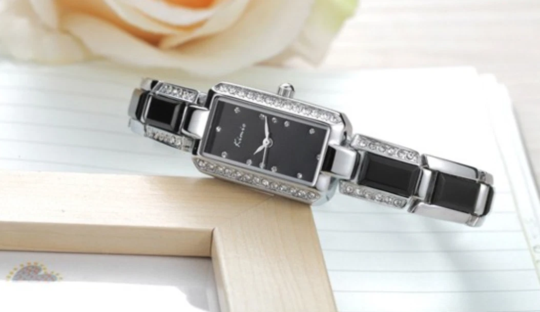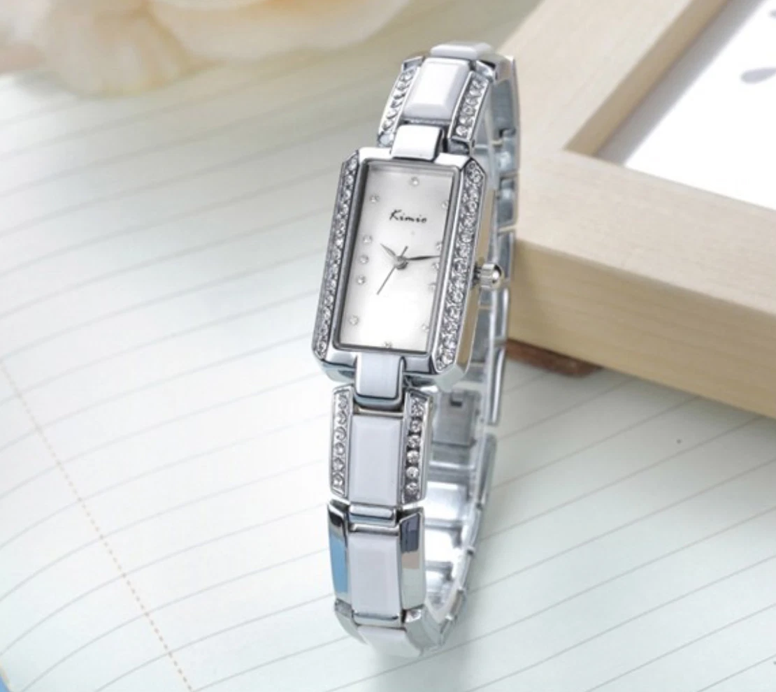 KIMIO Luxury Ceramic Rhinestone Rectangle Ladies Watch