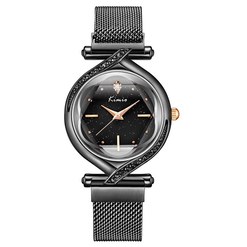 Kimio K6322 Black Steel Magnetic Closure Glitter Wrist Watch for Women