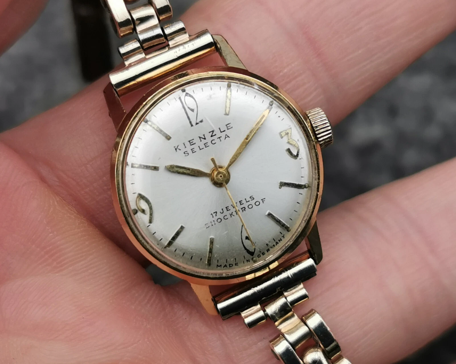 Kienzle Watch Germany Made 17 Jewels Rolled Gold Polished Link Bracelet, Vintage