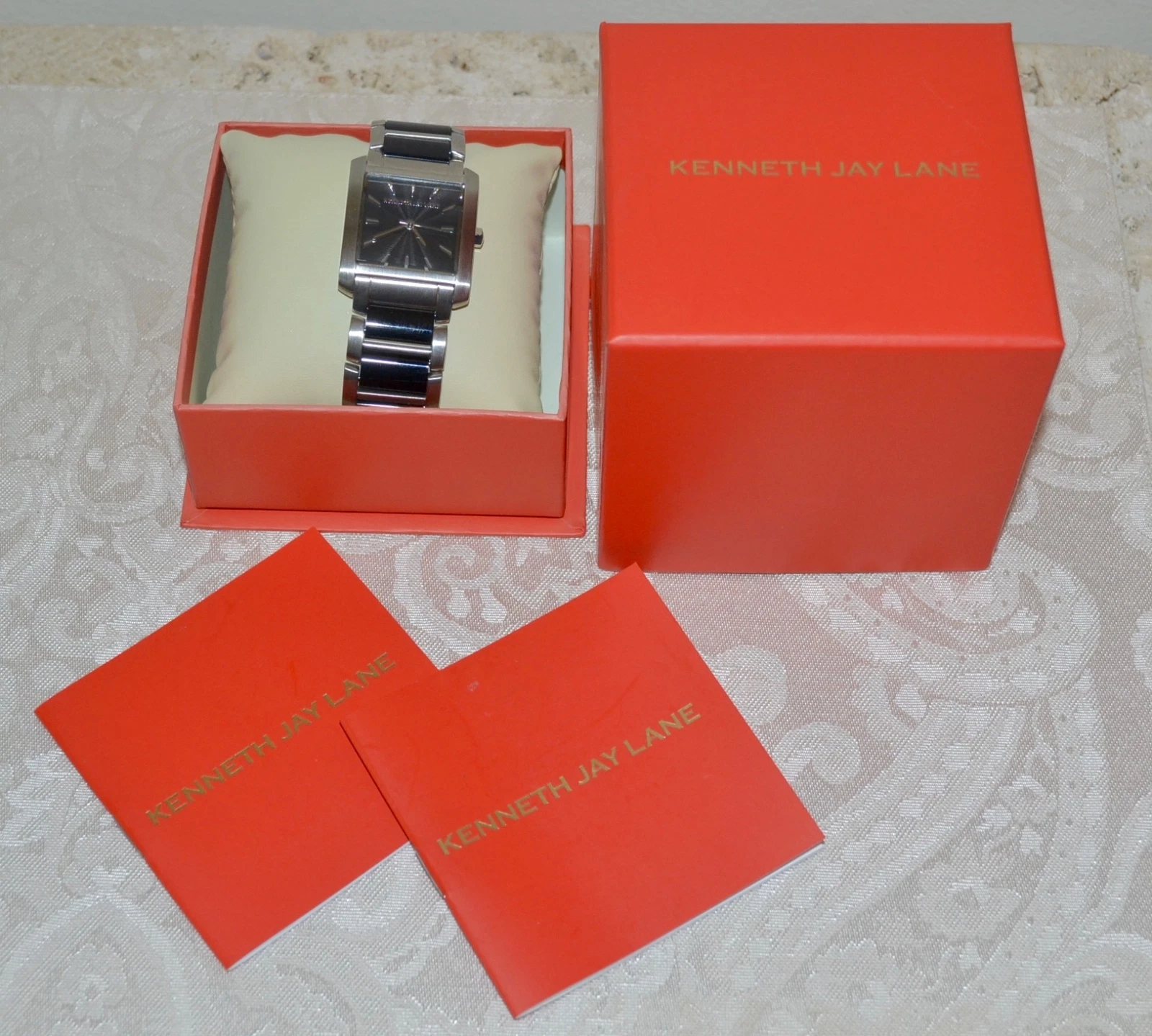 New $225 Kenneth Jay Lane Women's Watch KJL-1601 Black Dial Stainless Steel