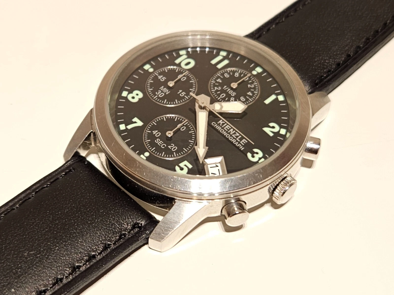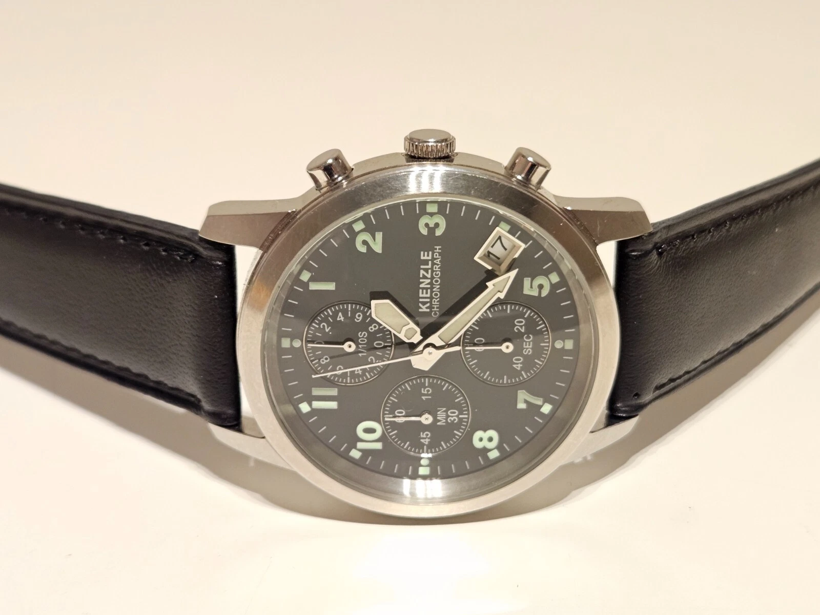 RETRO PILOTS MILITARY STYLE STEEL MEN'S CHRONOGRAPH QUARTZ WATCH "KIENZLE"1822