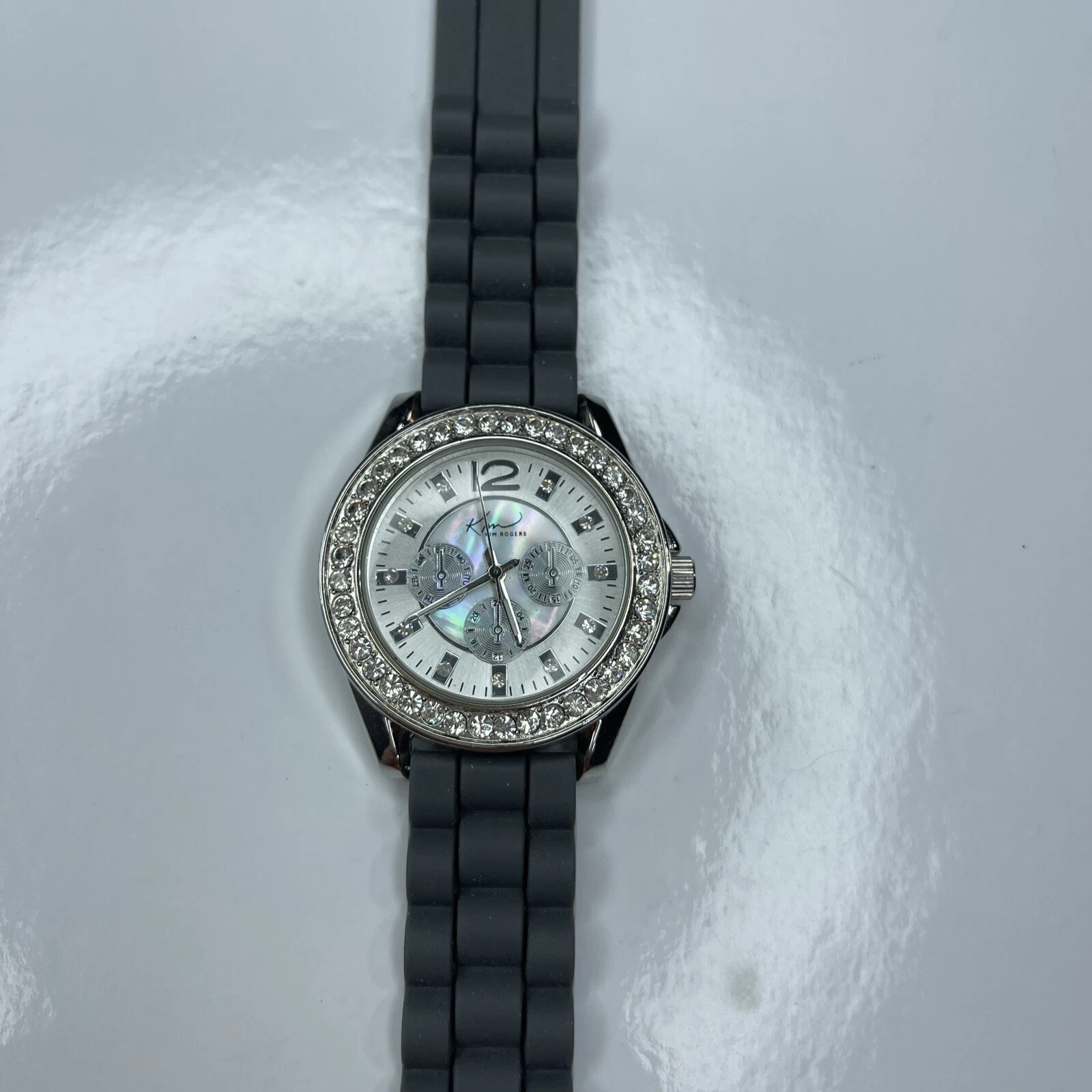 E Kim Rogers F02404GR Crystals Silver Gray Jelly Mother Pearl Stainless Untested