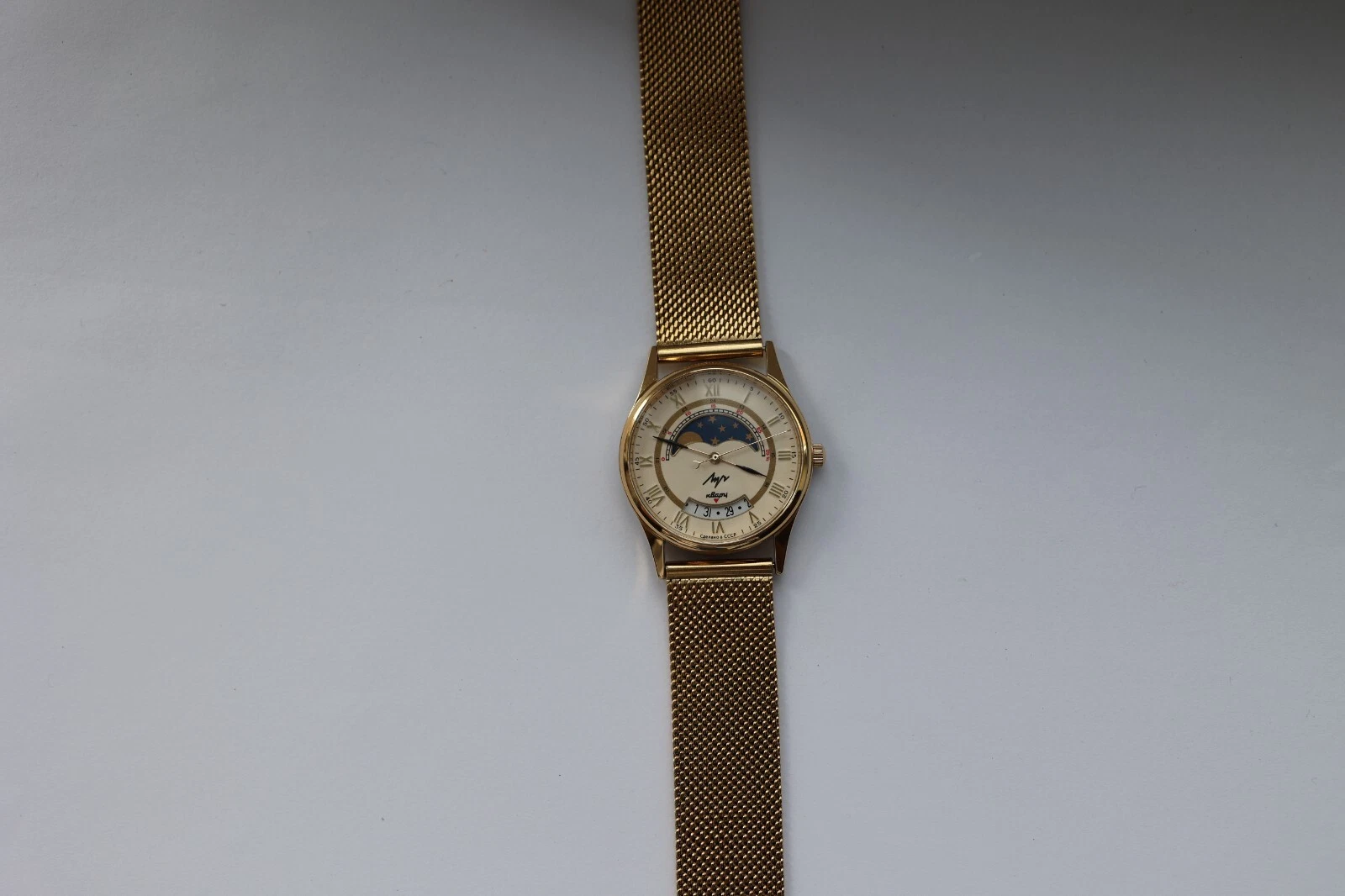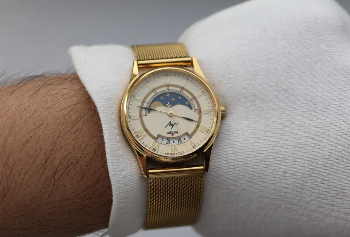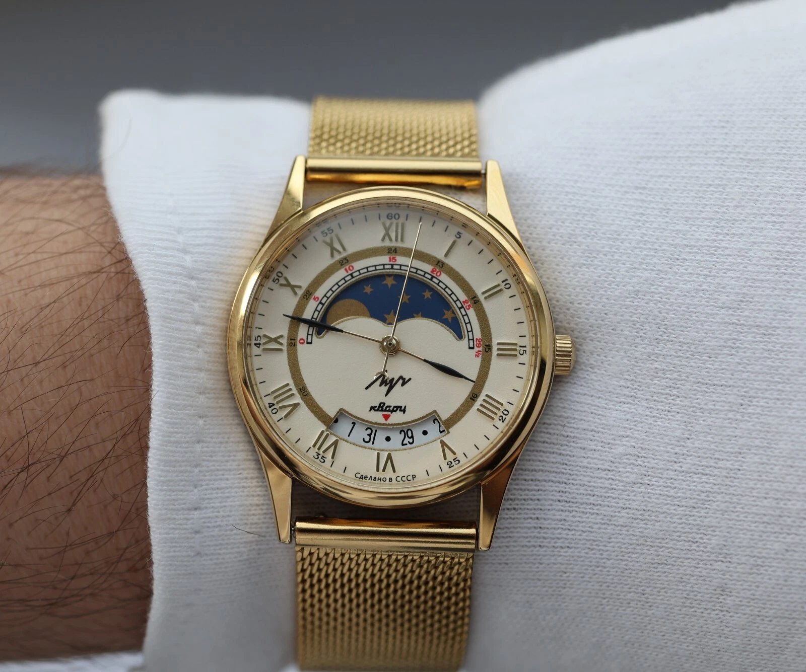 Quartz watch LUCH with Real Moon Phases Calendar, Moonphase watch USSR