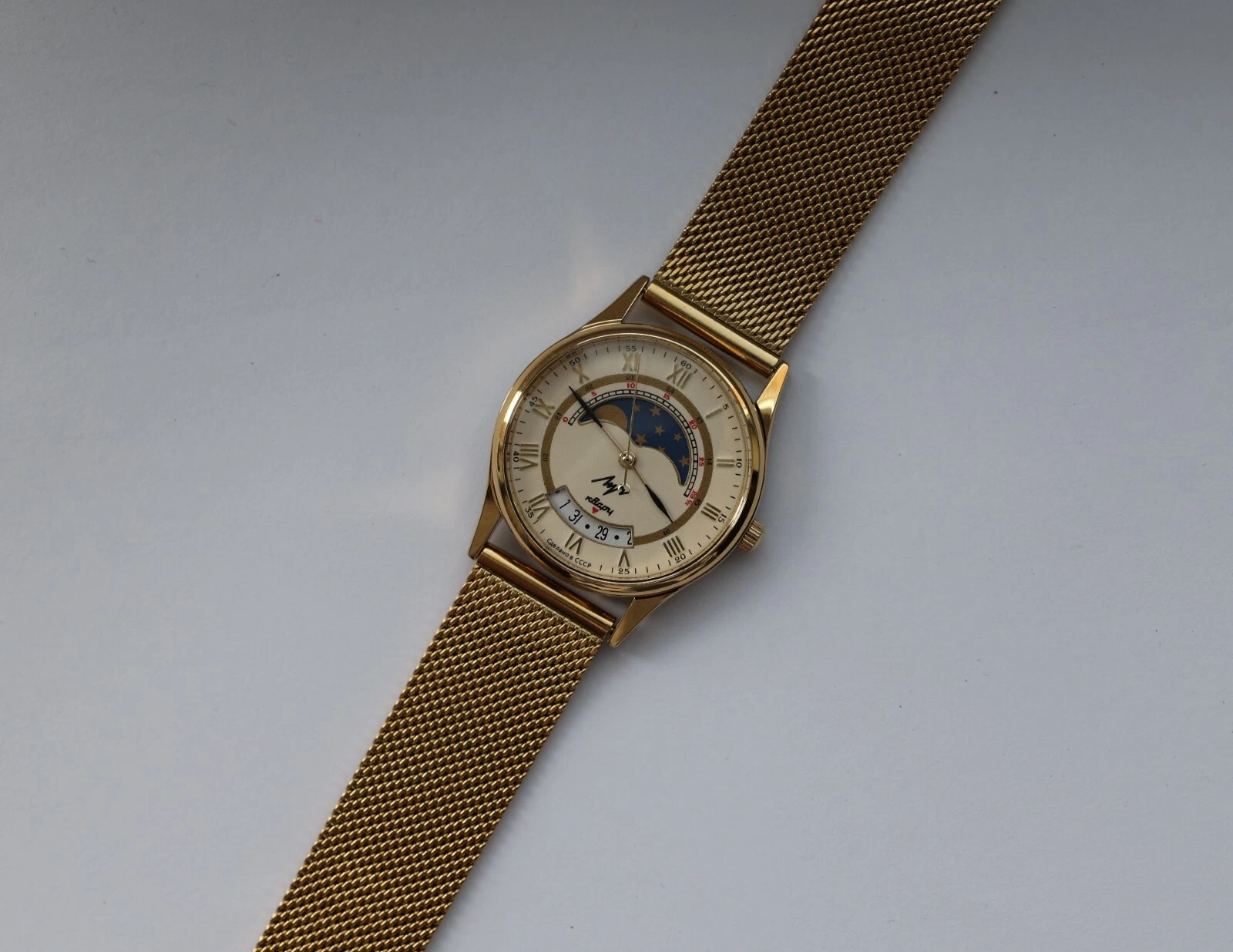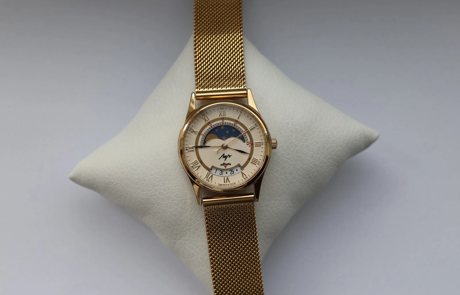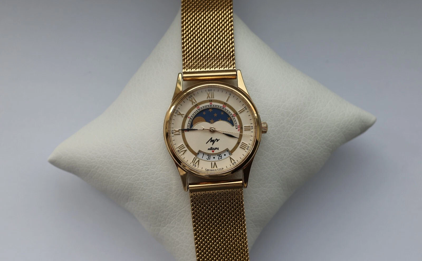 Quartz watch LUCH with Real Moon Phases Calendar, Moonphase watch USSR