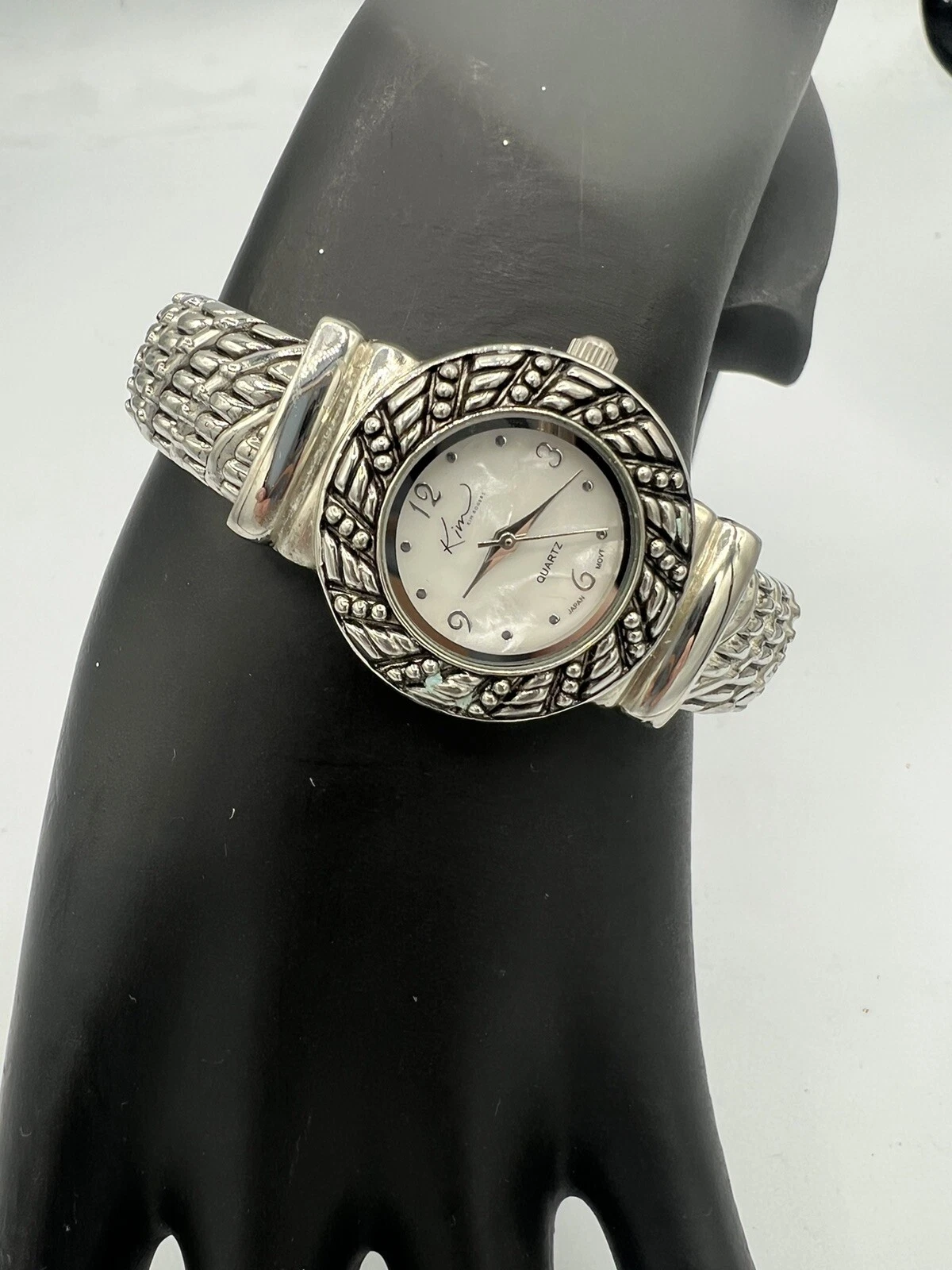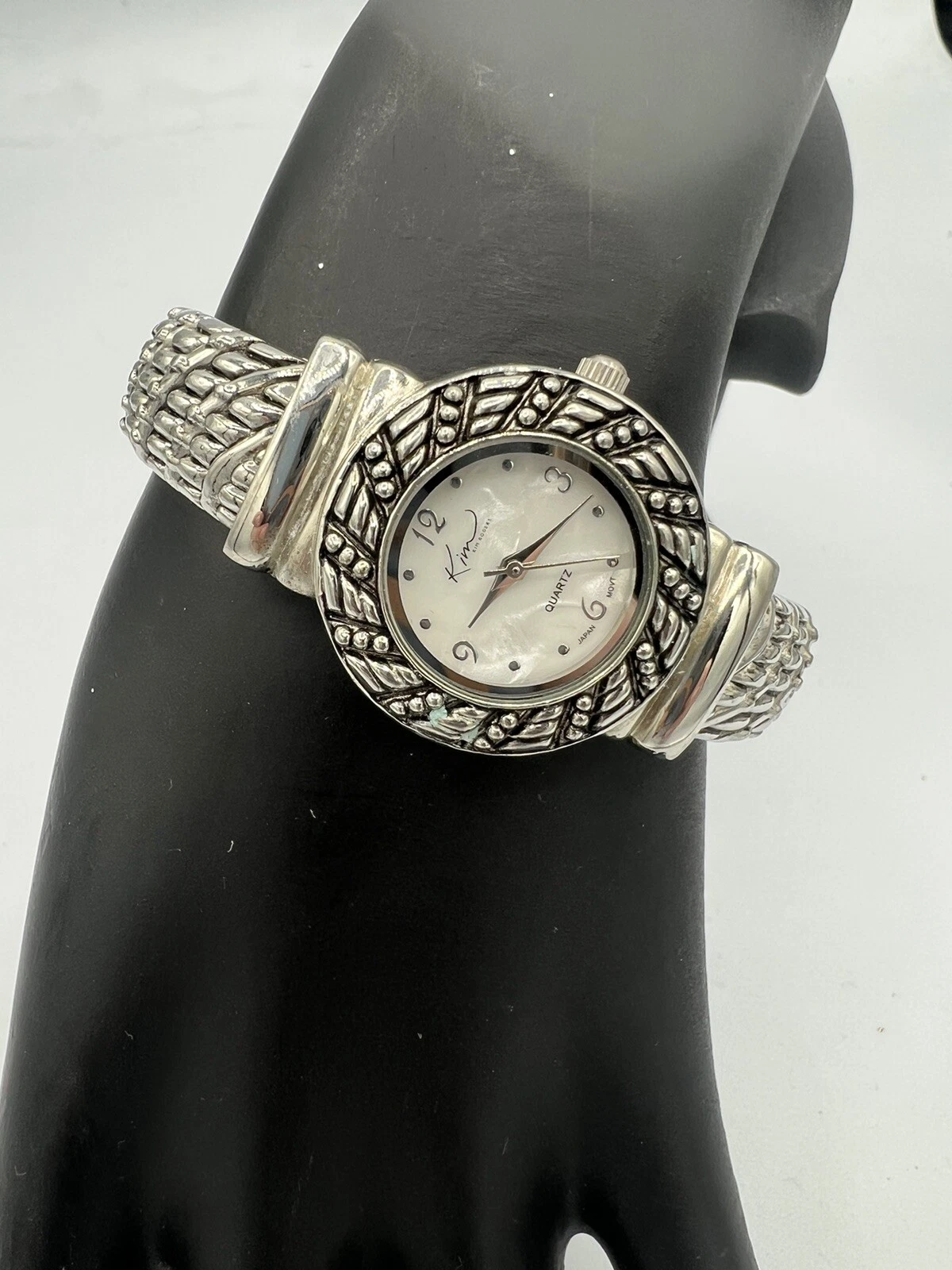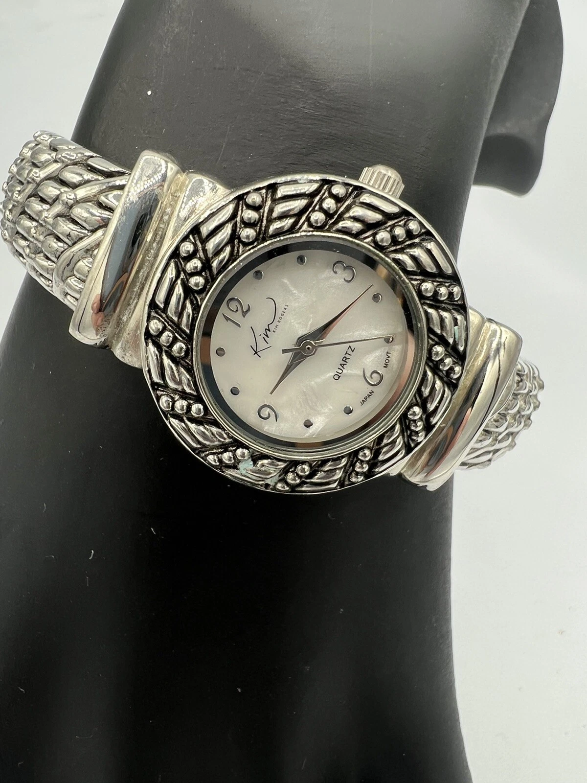 Kim Rogers Trendy Round Silver Tone MoP Dial Cuff Bracelet Watch