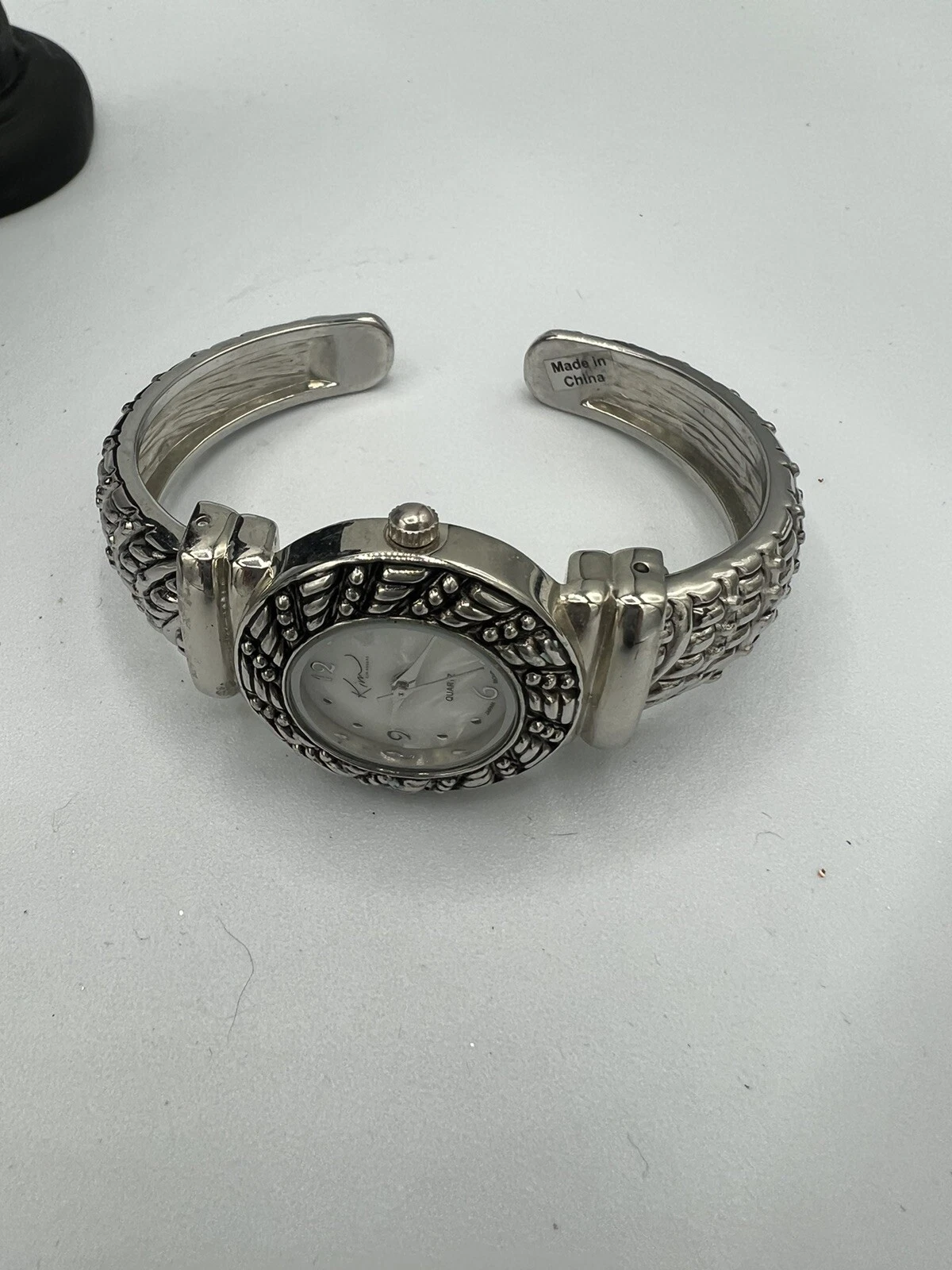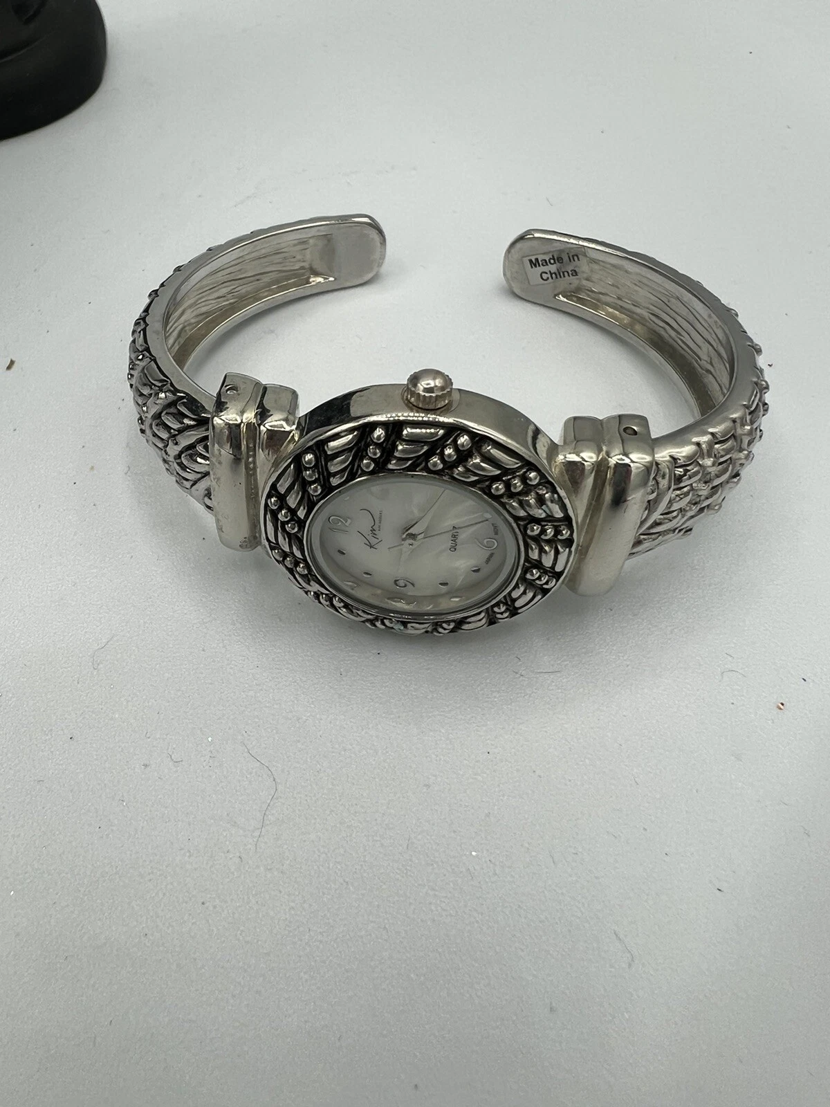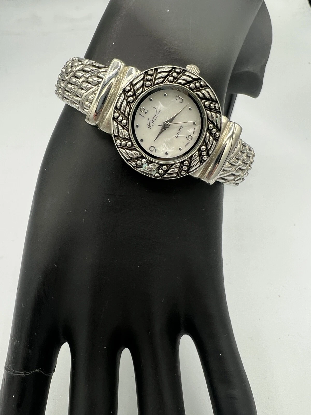 Kim Rogers Trendy Round Silver Tone MoP Dial Cuff Bracelet Watch