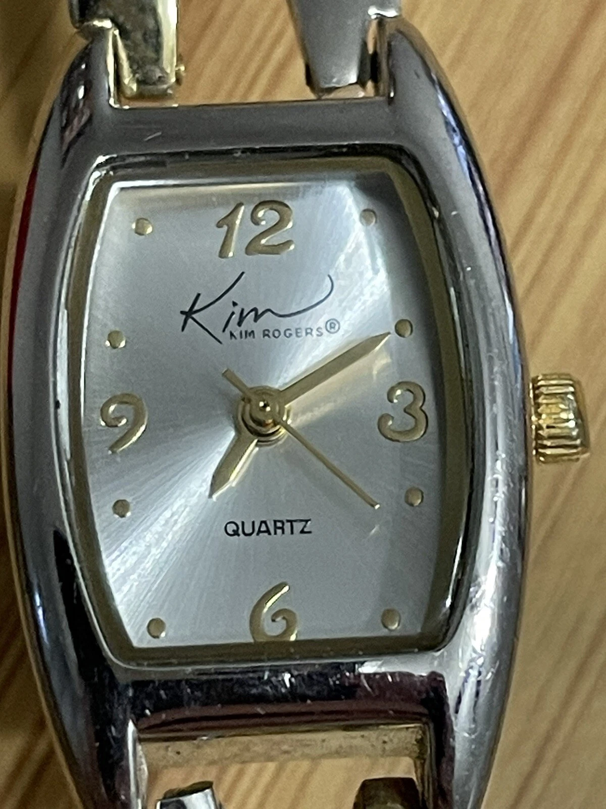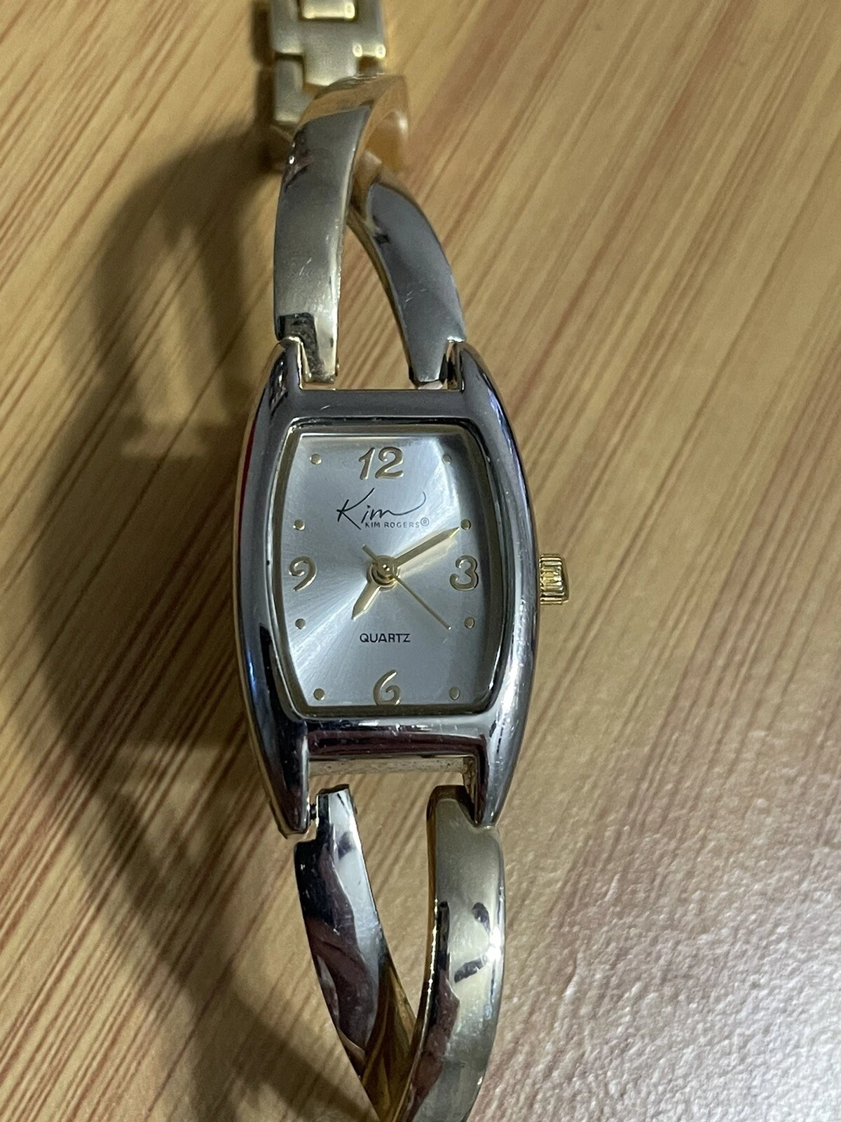 Vintage New Old Stock Kim Rogers Watch Gold & Silver Tone Hinged Bracelet Band!
