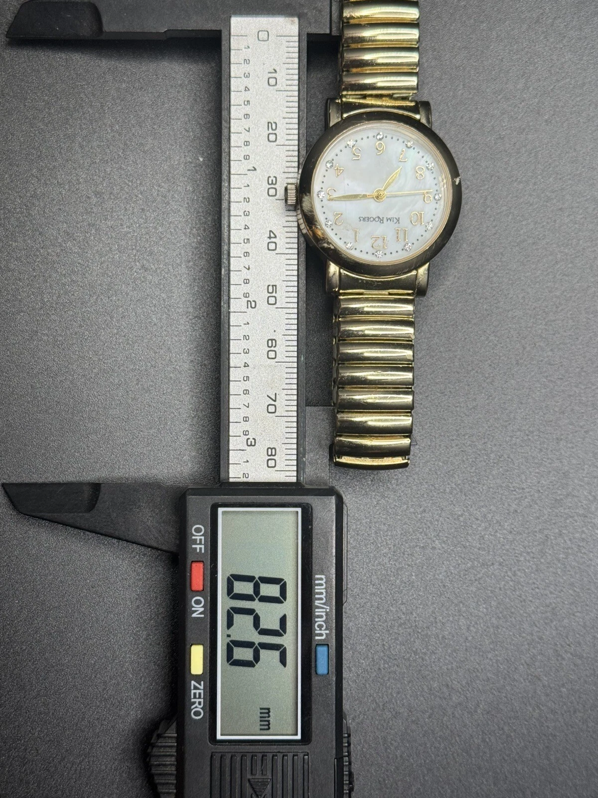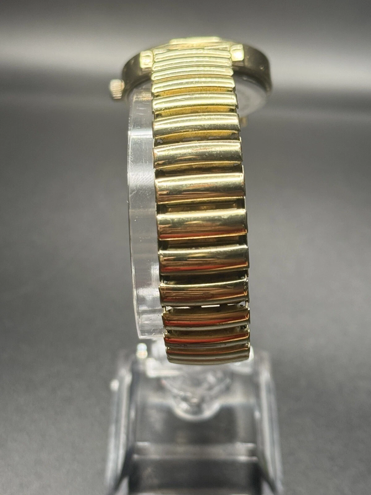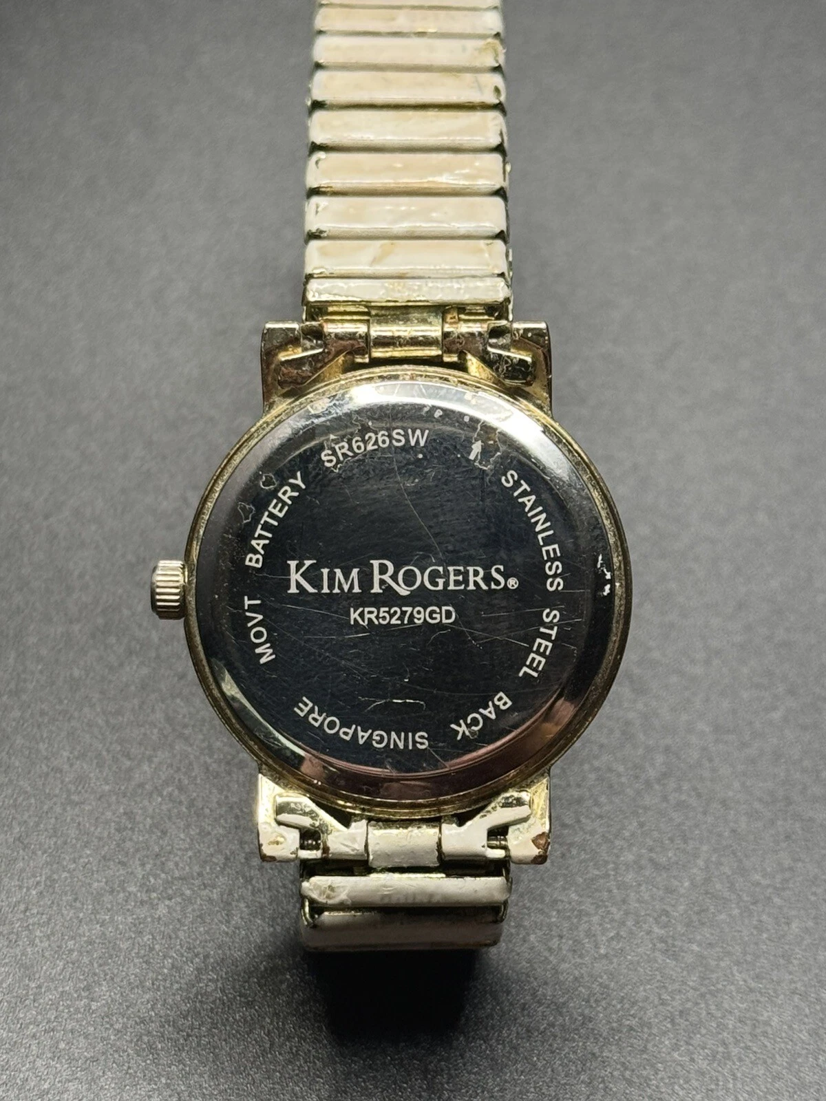 Vintage Gold Tone Women’s Kim Roger’s Watch White Pearl Dial W/ Stretch Band Use
