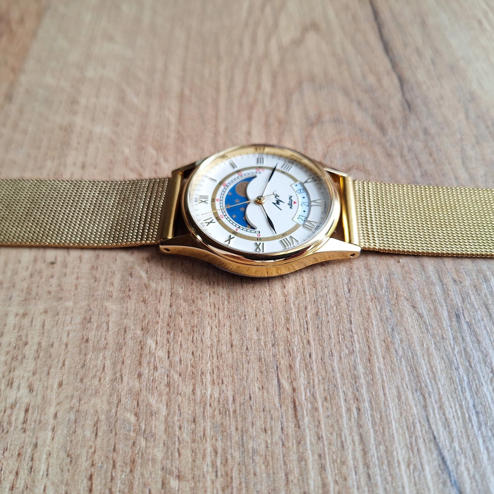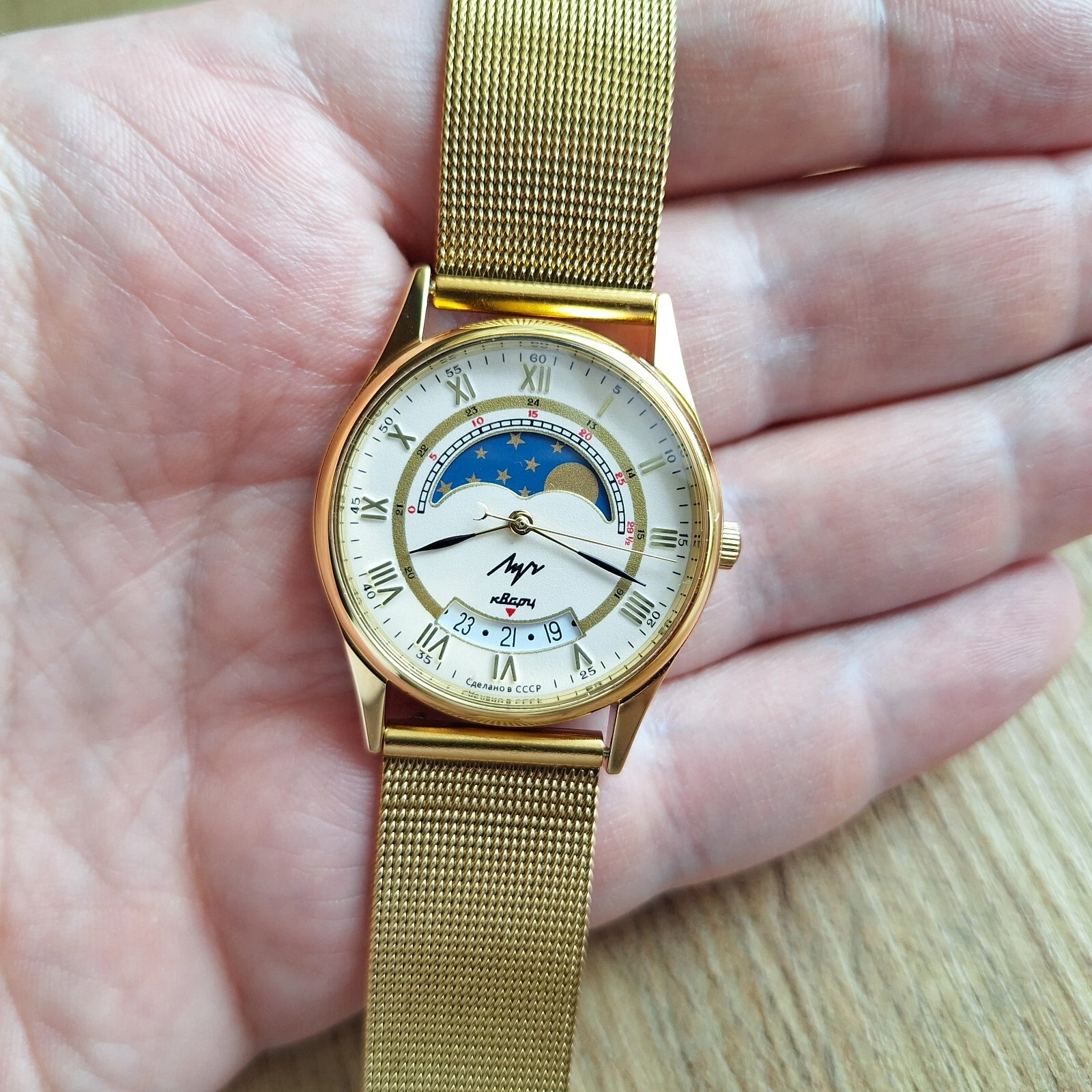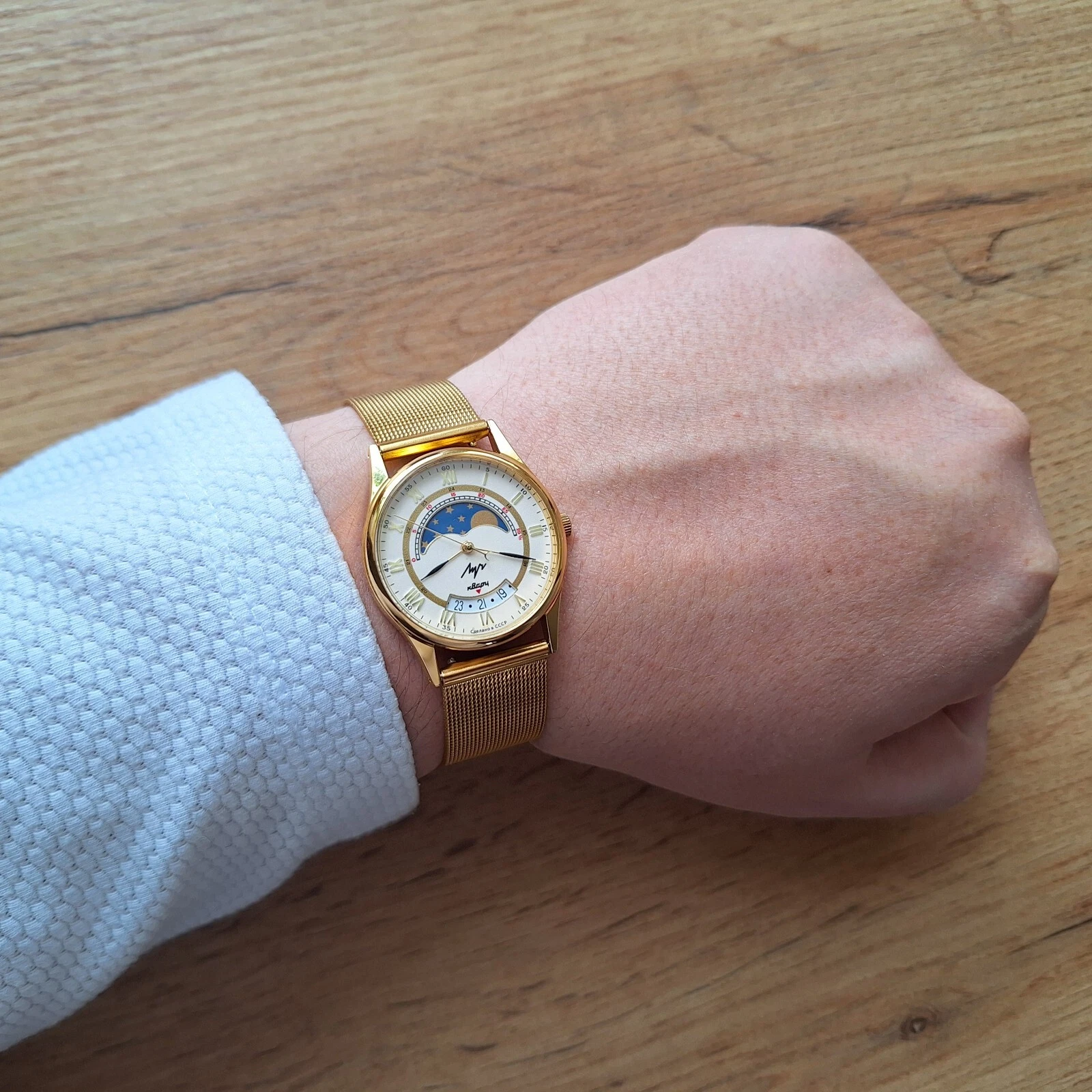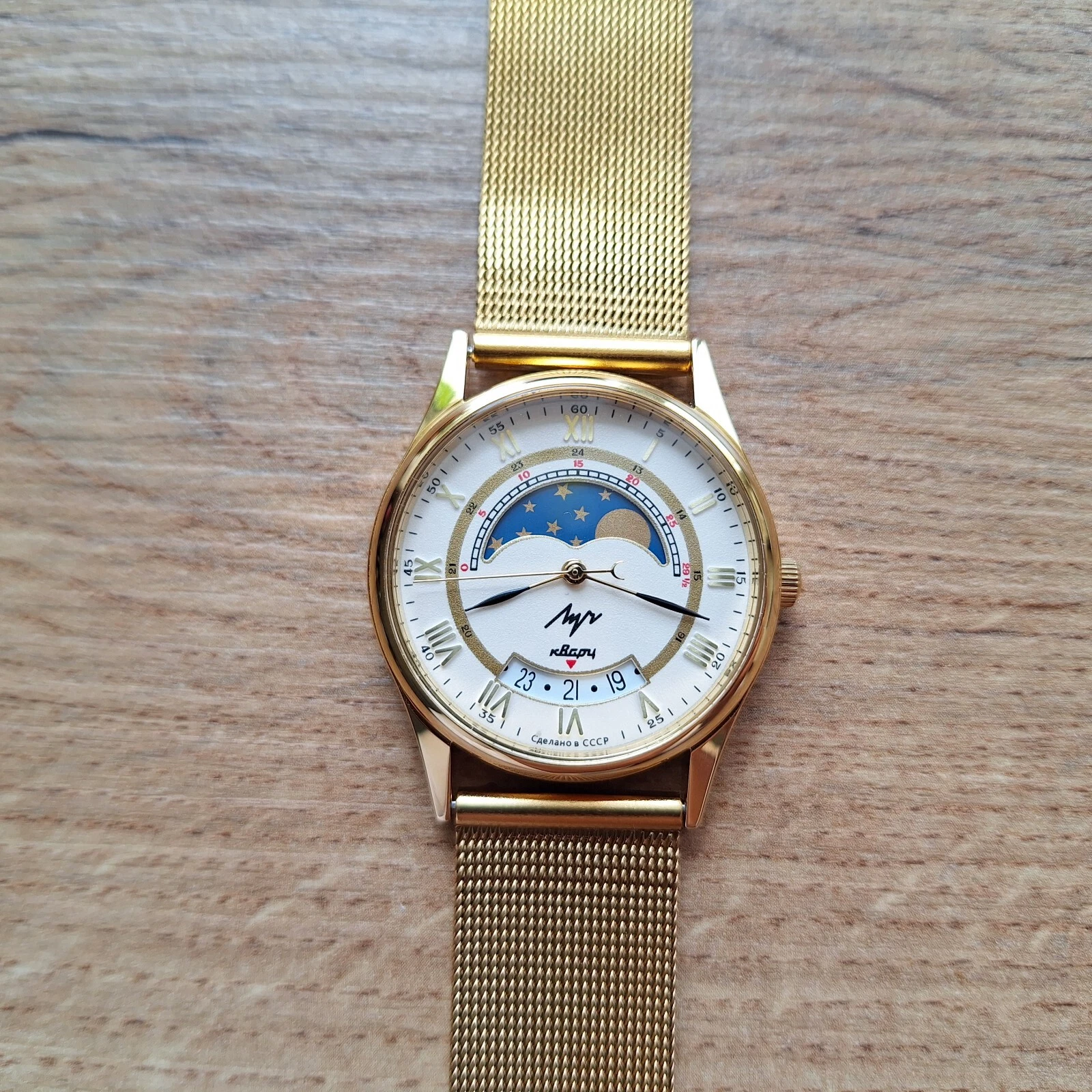 NOS Quartz watch LUCH with Real Moon Phases Calendar, Moonphase watch  Luch