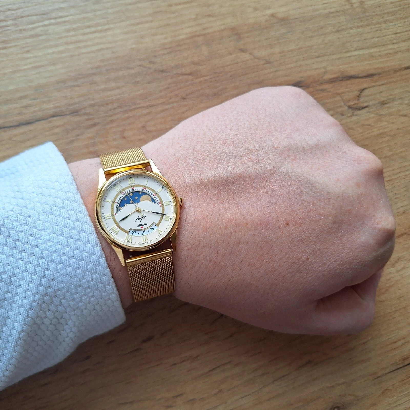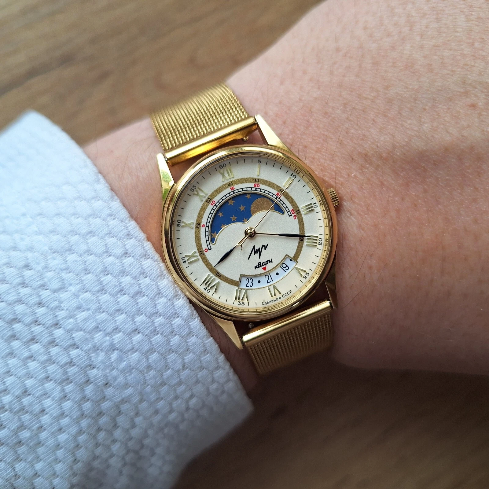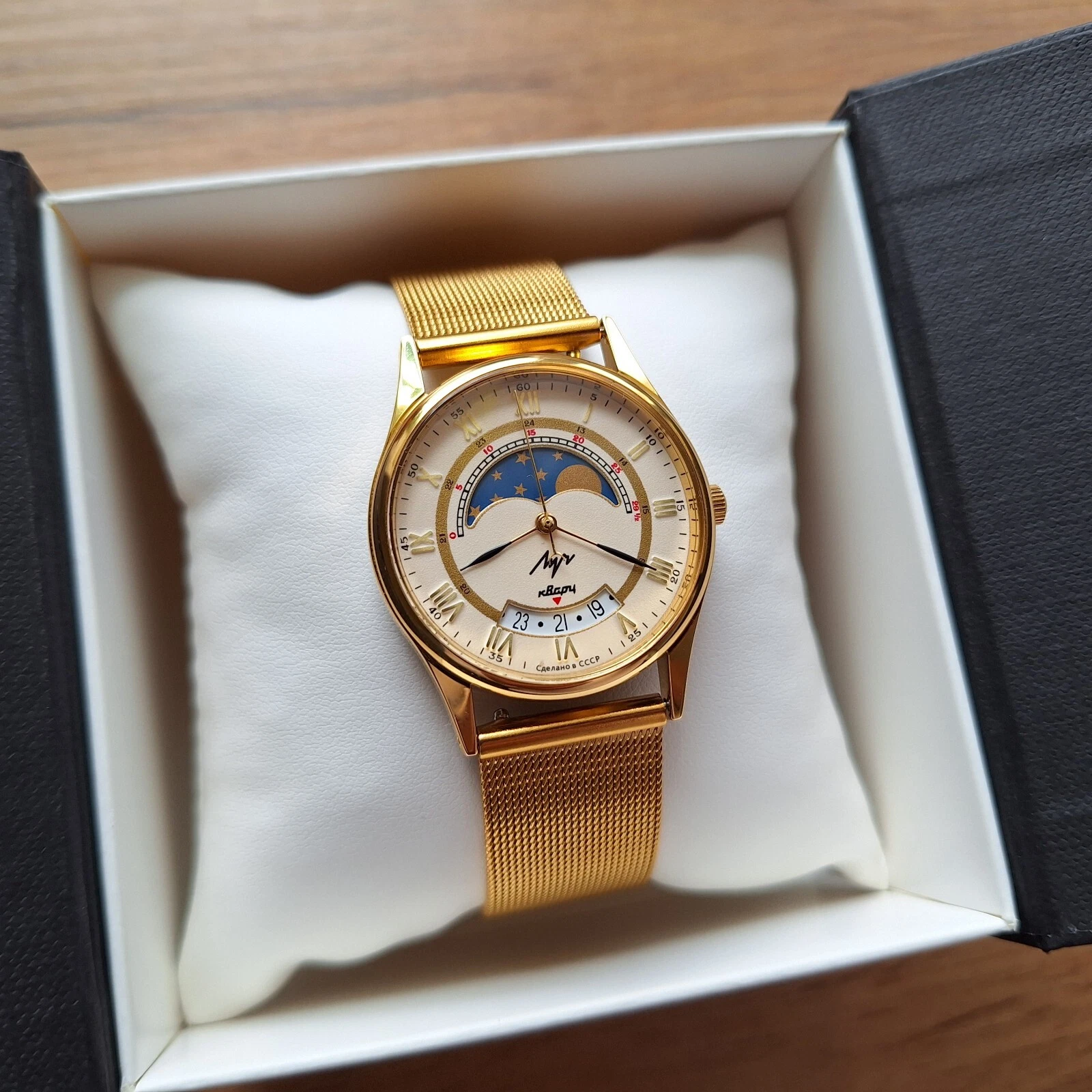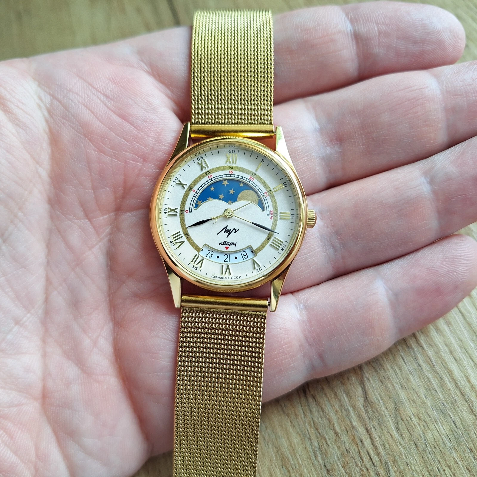 NOS Quartz watch LUCH with Real Moon Phases Calendar, Moonphase watch  Luch
