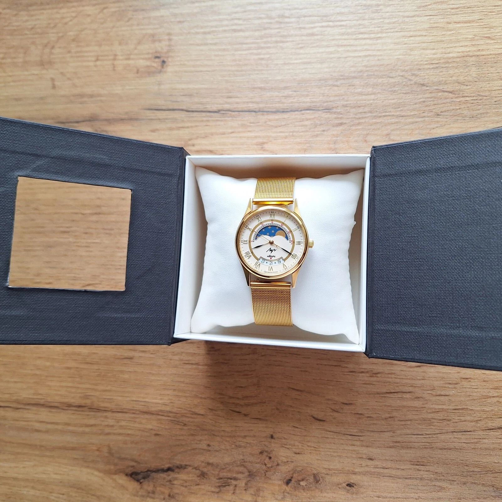 NOS Quartz watch LUCH with Real Moon Phases Calendar, Moonphase watch Luch