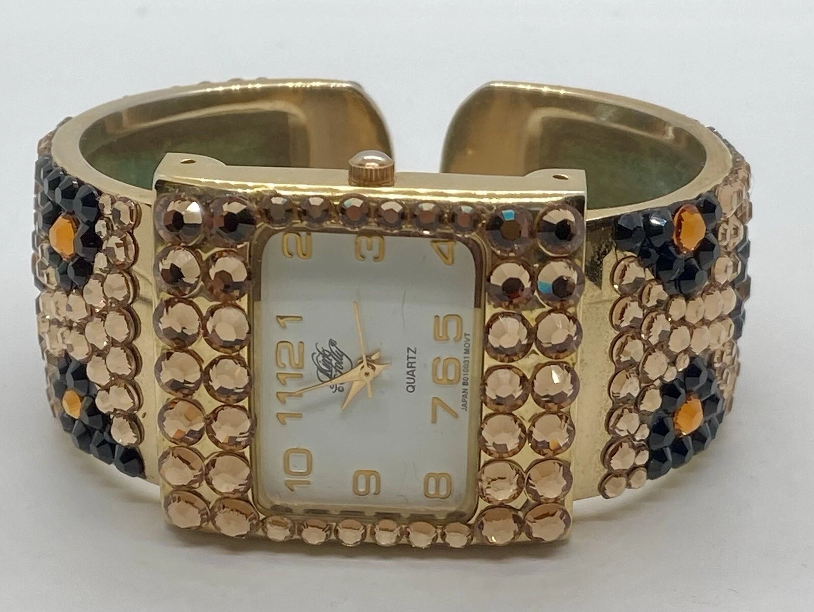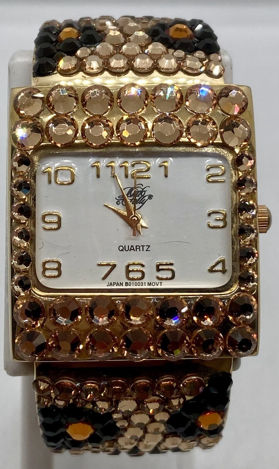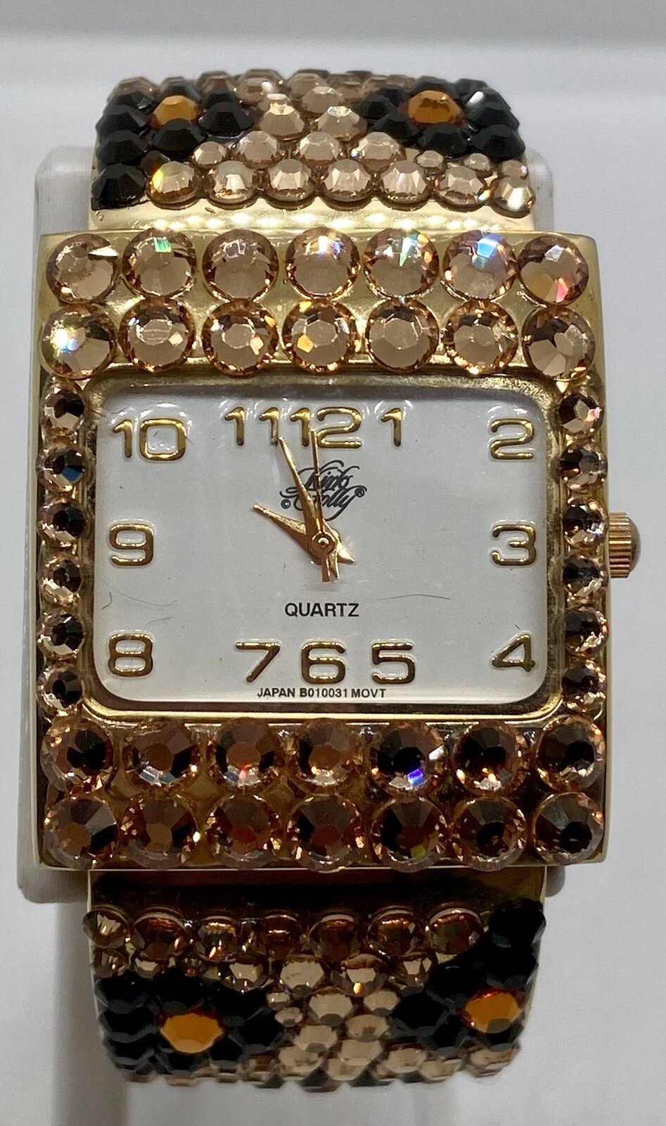 NEW KIRKS FOLLY Watch Fresh Battery Totally Iced Hinged Cuff Fits 6” Wrists NICE