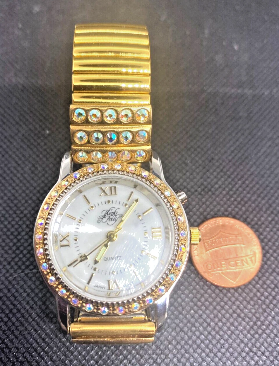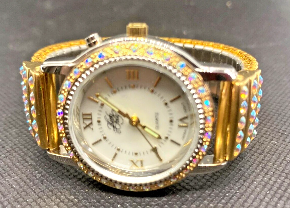 Kirks Folly Aurora Borealis Wristwatch Gold Tone Lighted