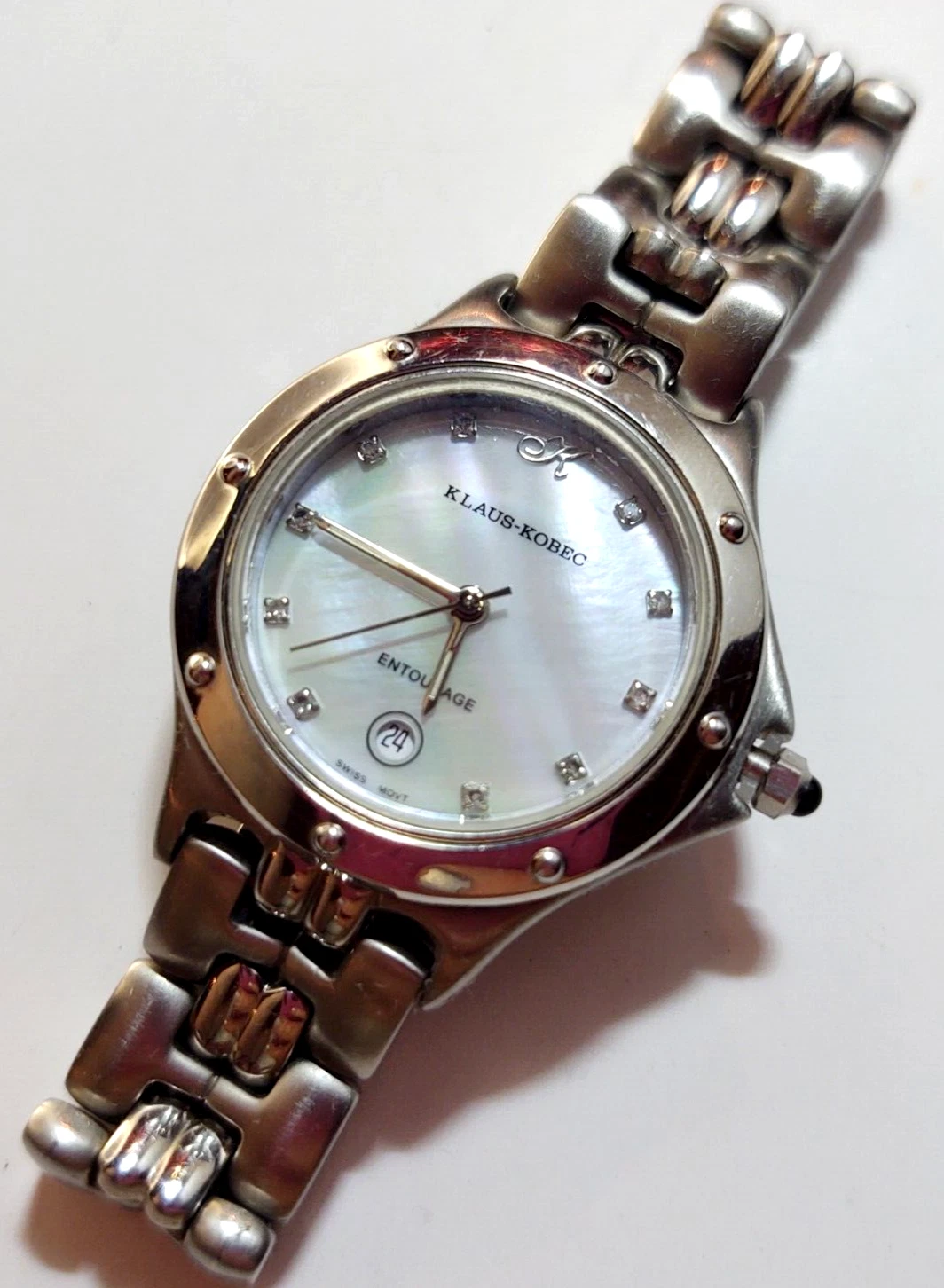Klaus Kobec Entourage Watch Date Indicator SwissMade Mother Of Pearl 10 Diamonds