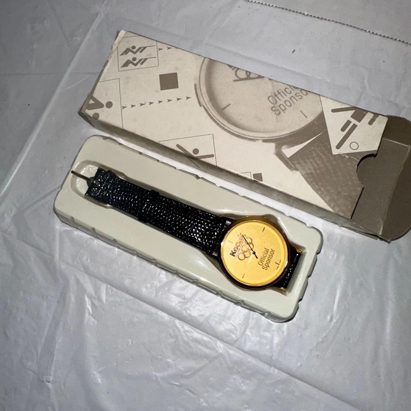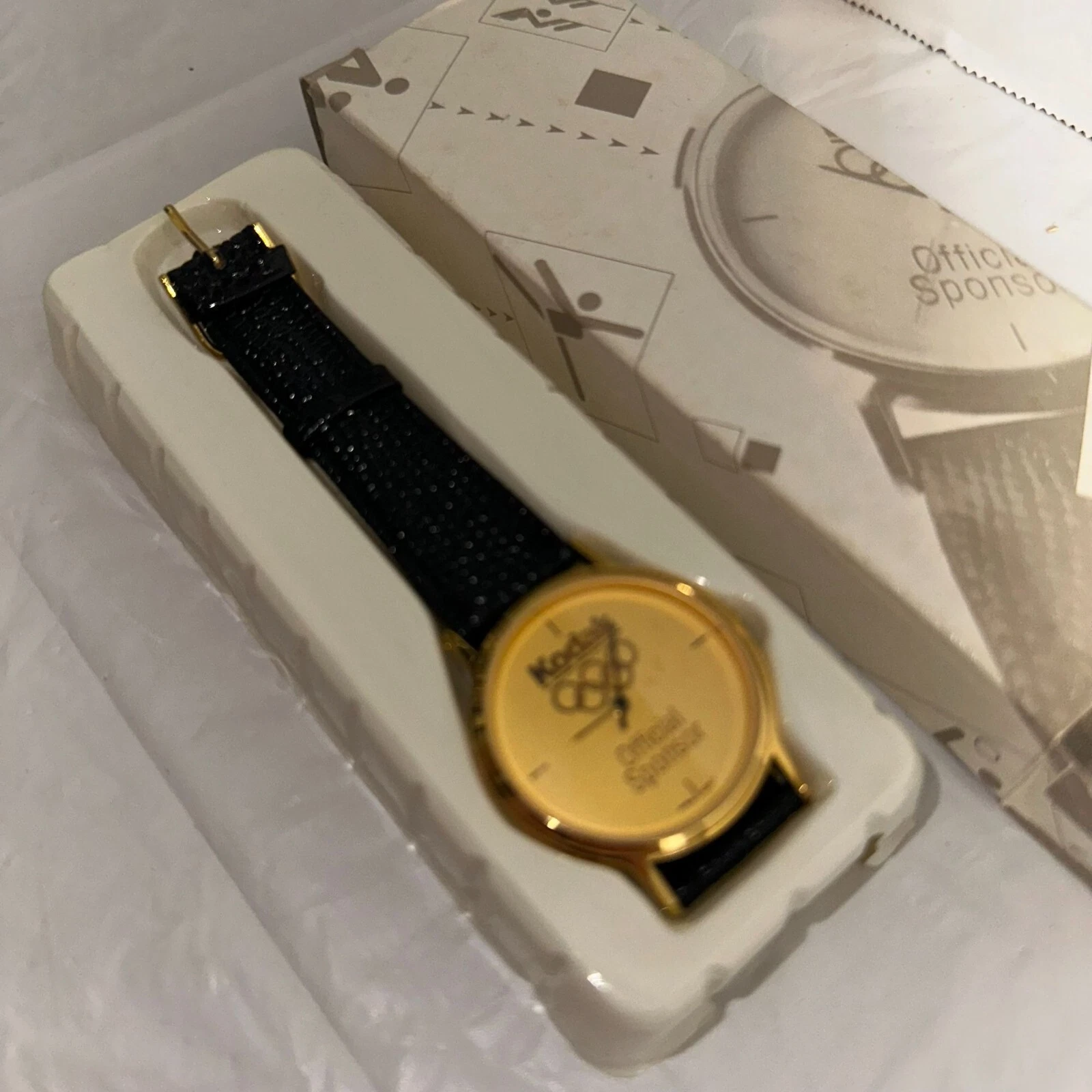 Kodak Olympic Sponsor Gold-Tone Watch With Black Leather Strap