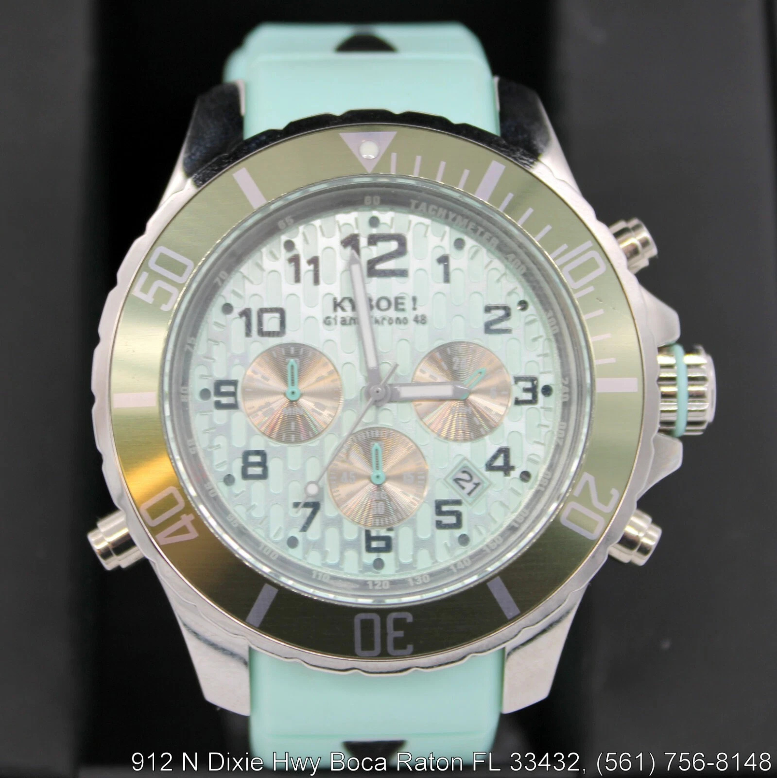 KYBOE! Giant Chrono/Tachymeter 48mm, Backlight, Cyan/Green 10 ATM WR, Watch NWT