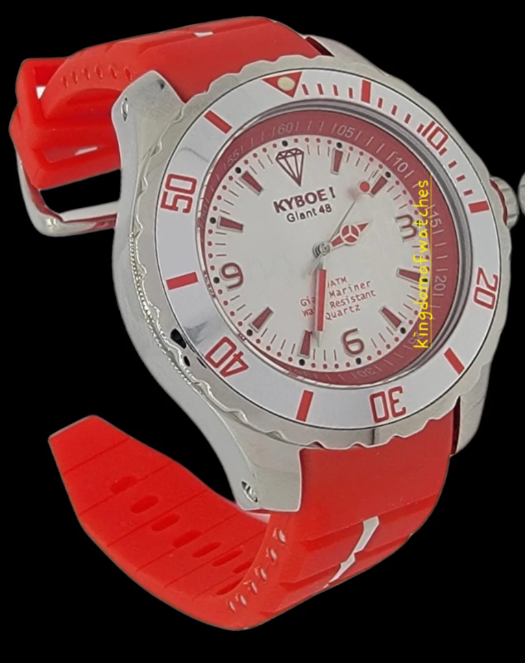 Kyboe! Mens Watch Giant 48MM Stainless Steel Case Orange Silicone Band 100M WR