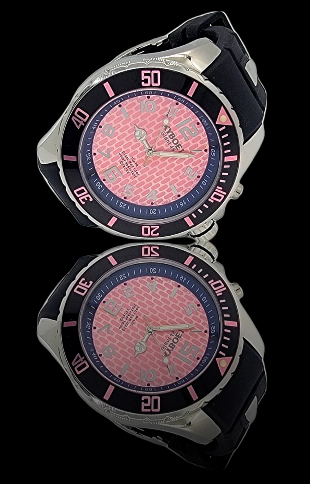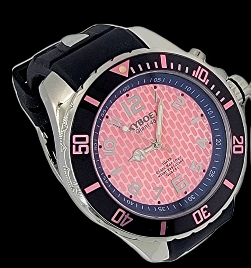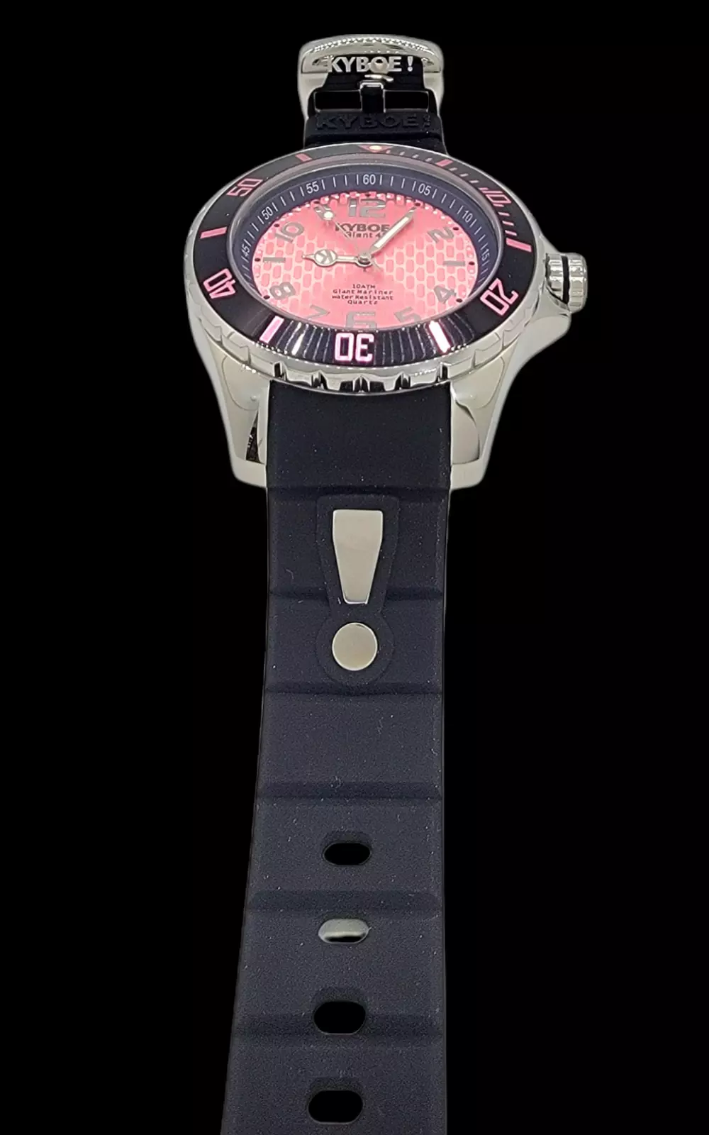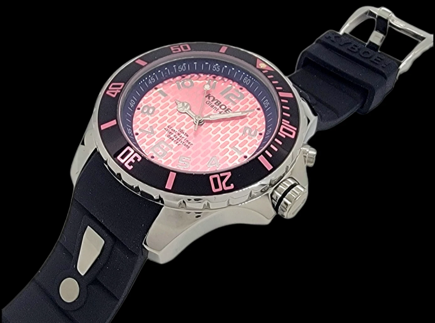 Kyboe! Men Watch Giant 48MM Stainless Case Black Silicone Band Pink Dial 100M WR