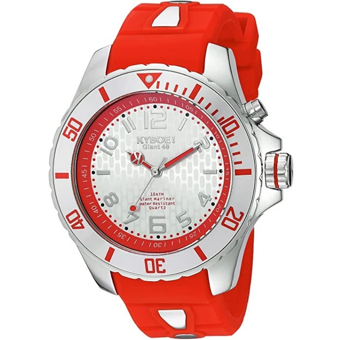 Kyboe! Mens Watch Giant 48MM Stainless Steel Case Orange Silicone Band 100M WR