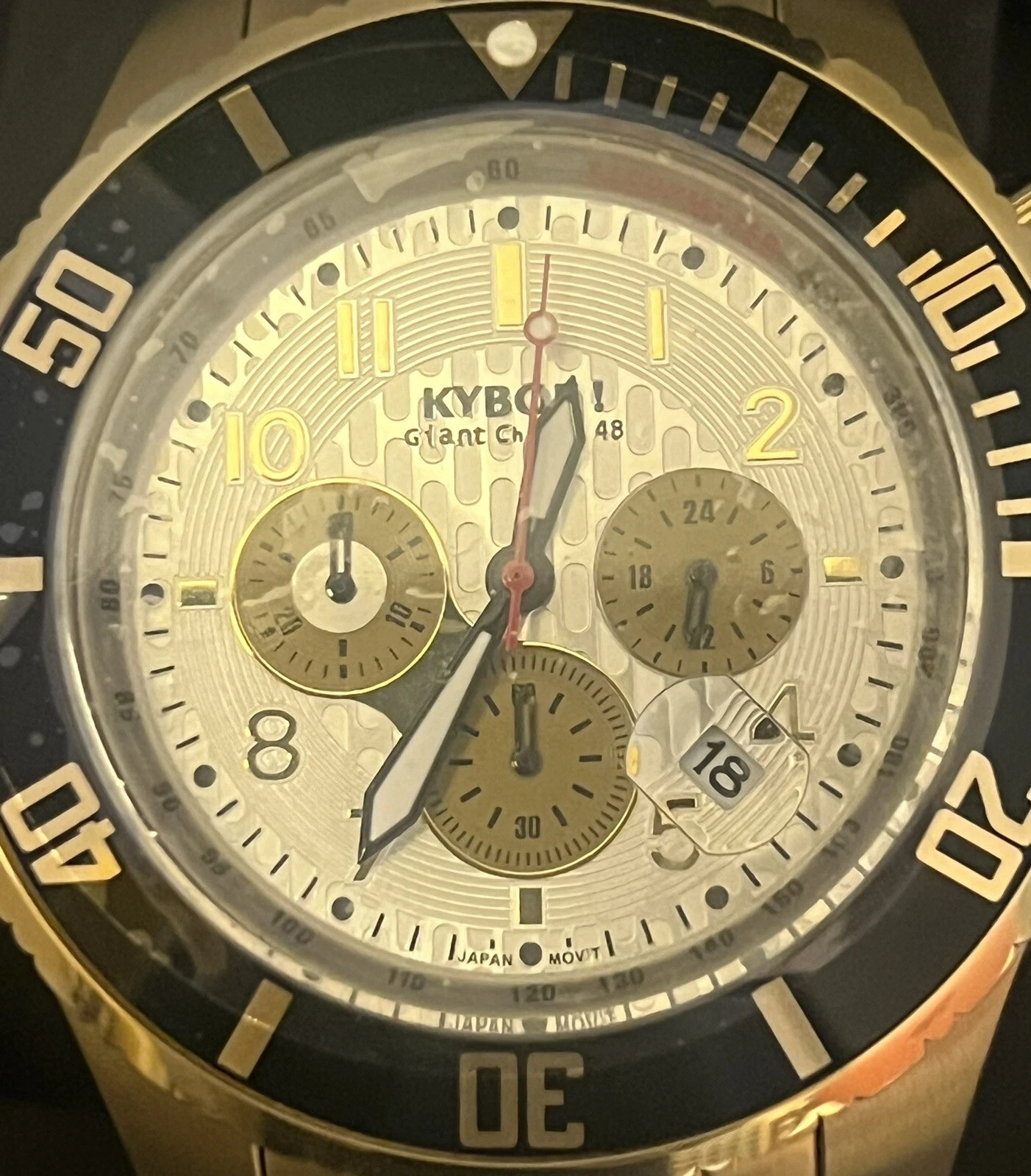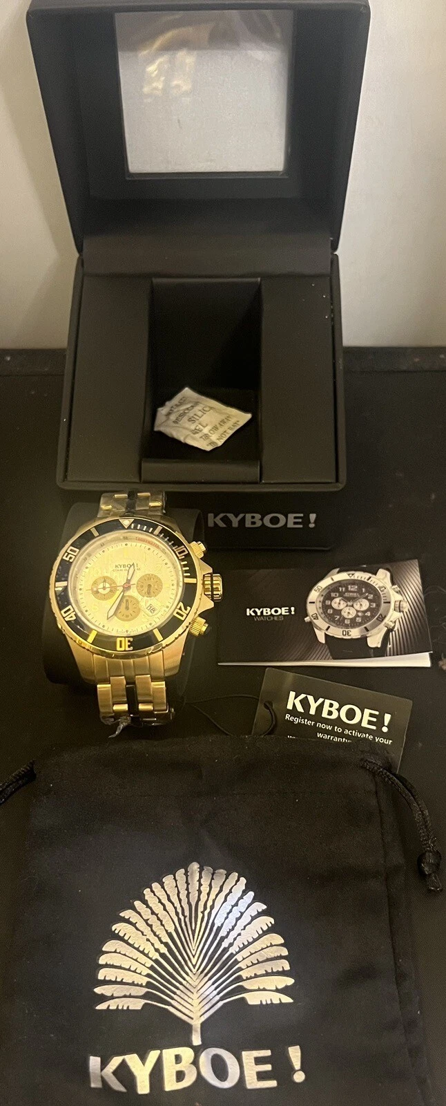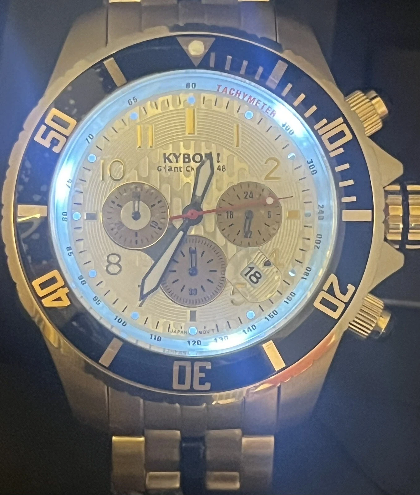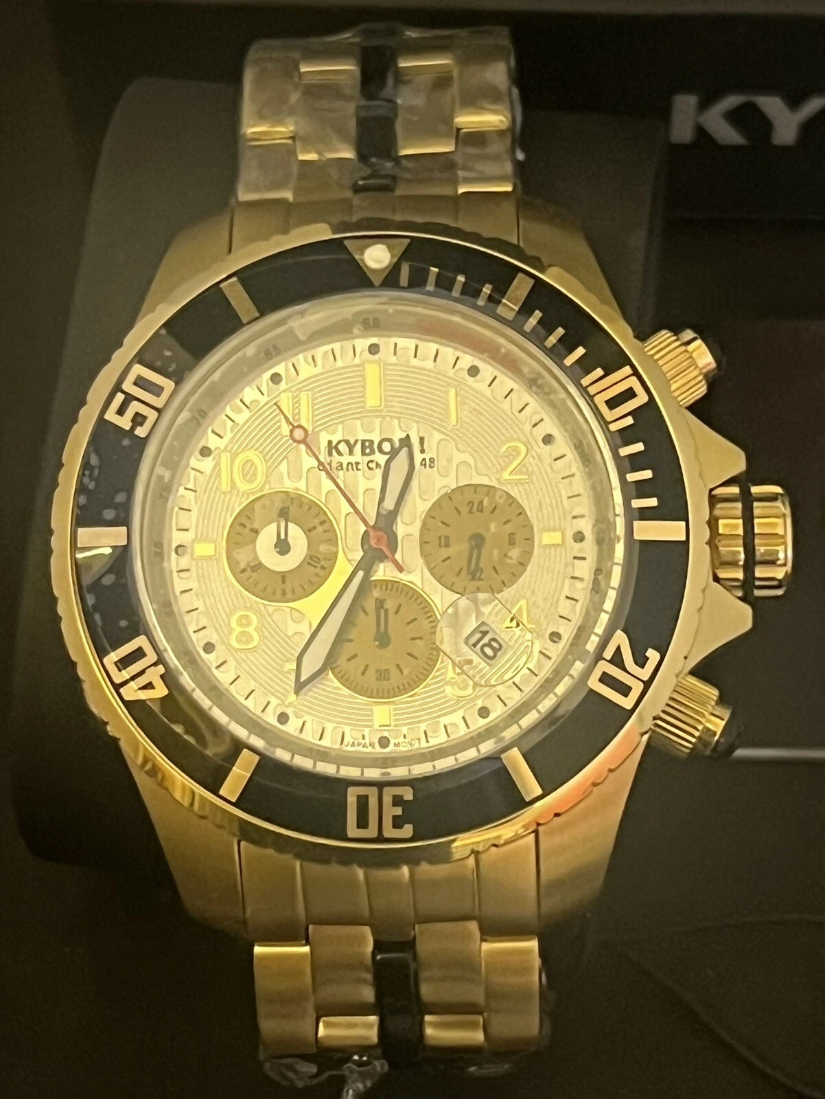 Watch-KYBOE! Giant 48 Chronograph Black & Gold Steel LED light Gold/Black Dial