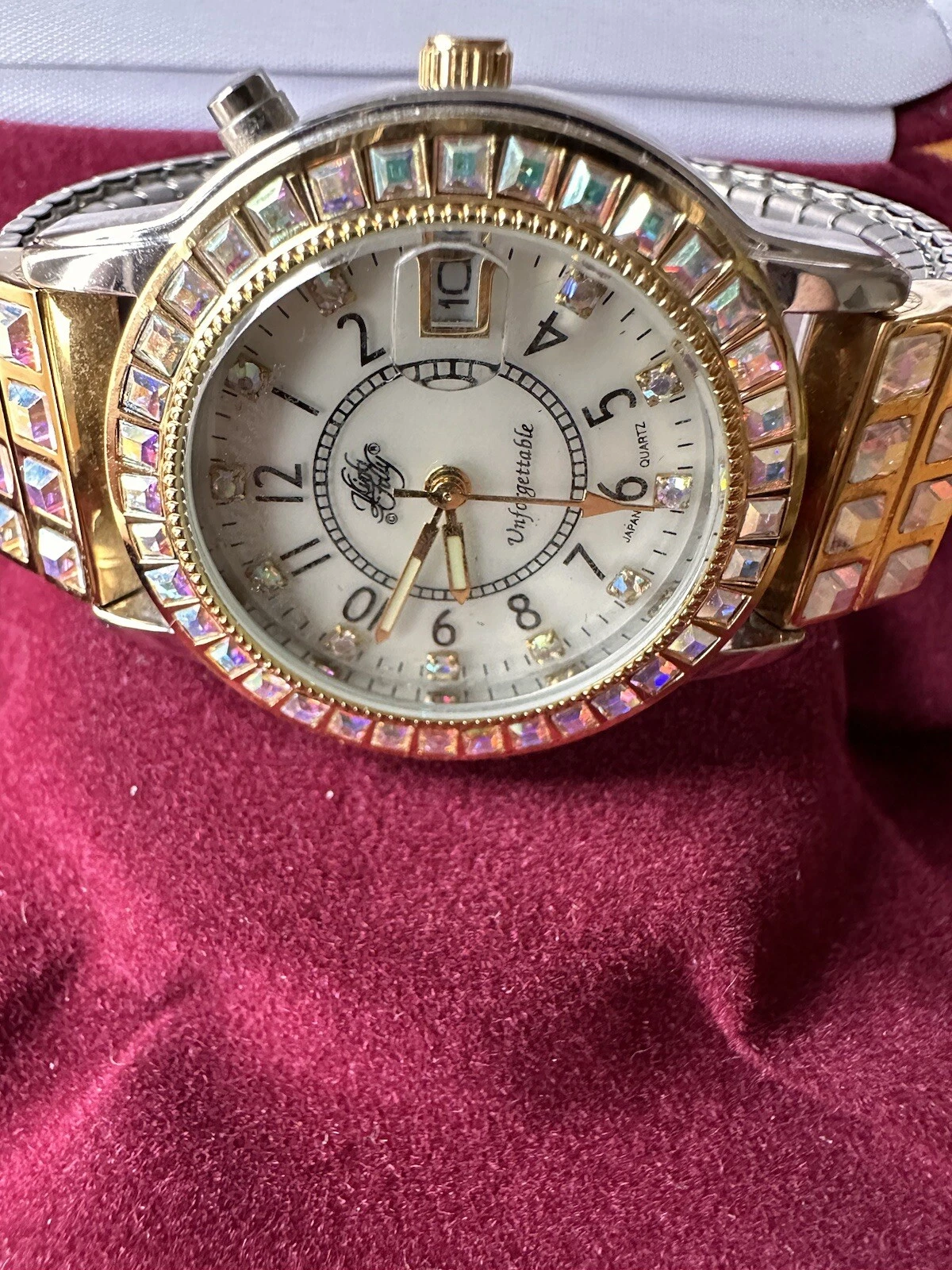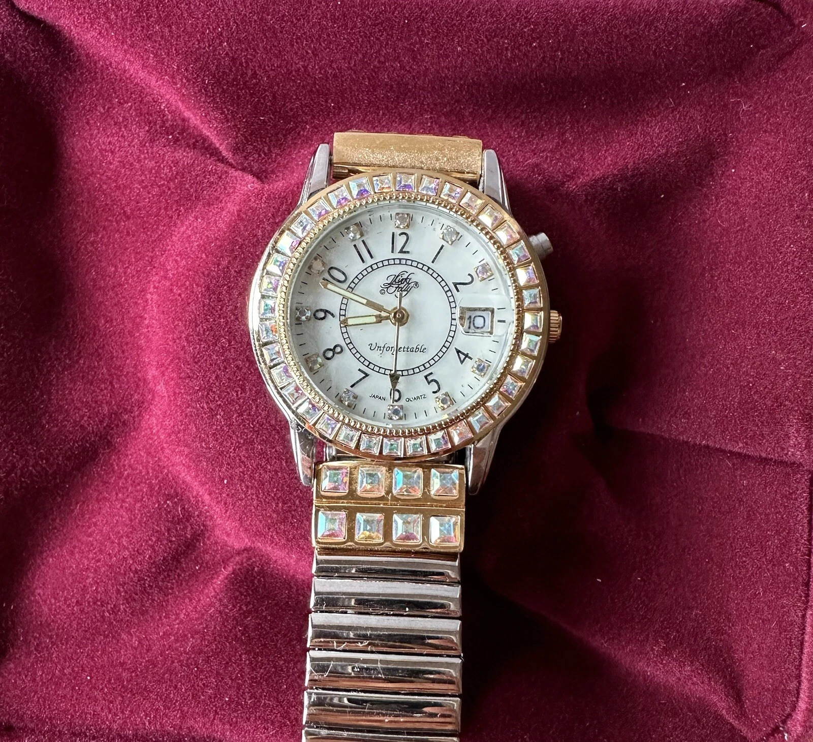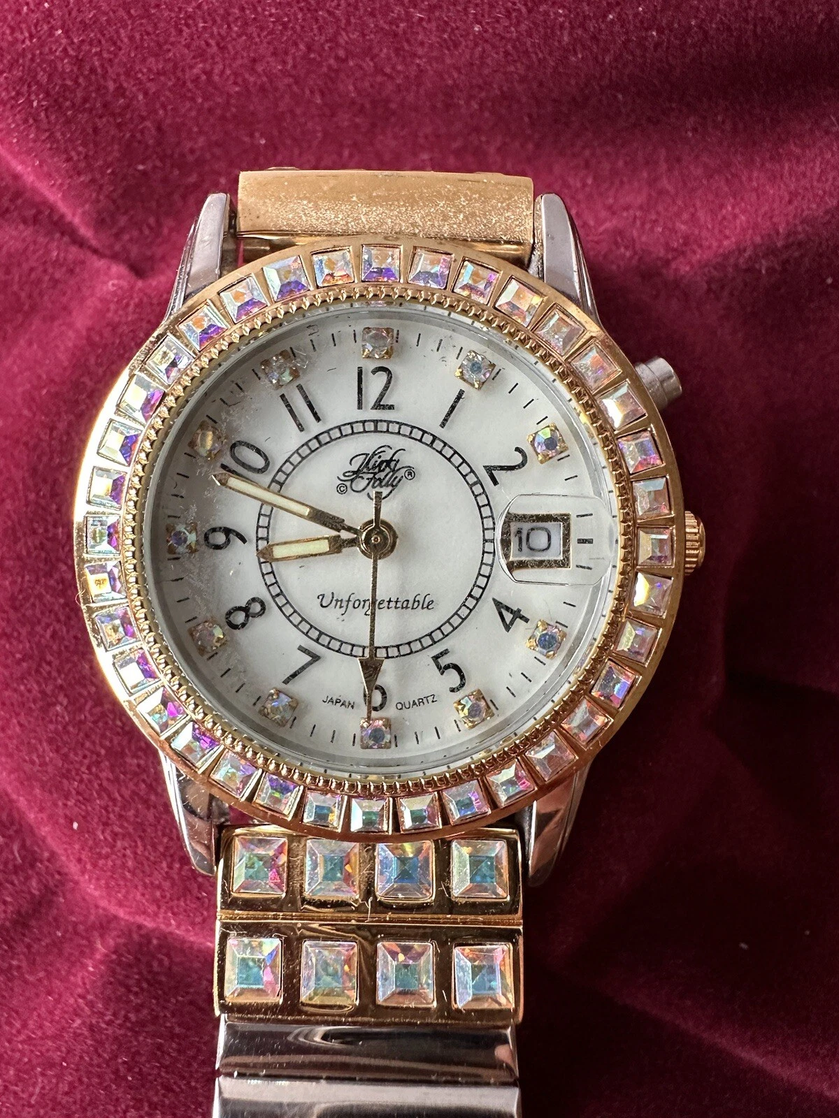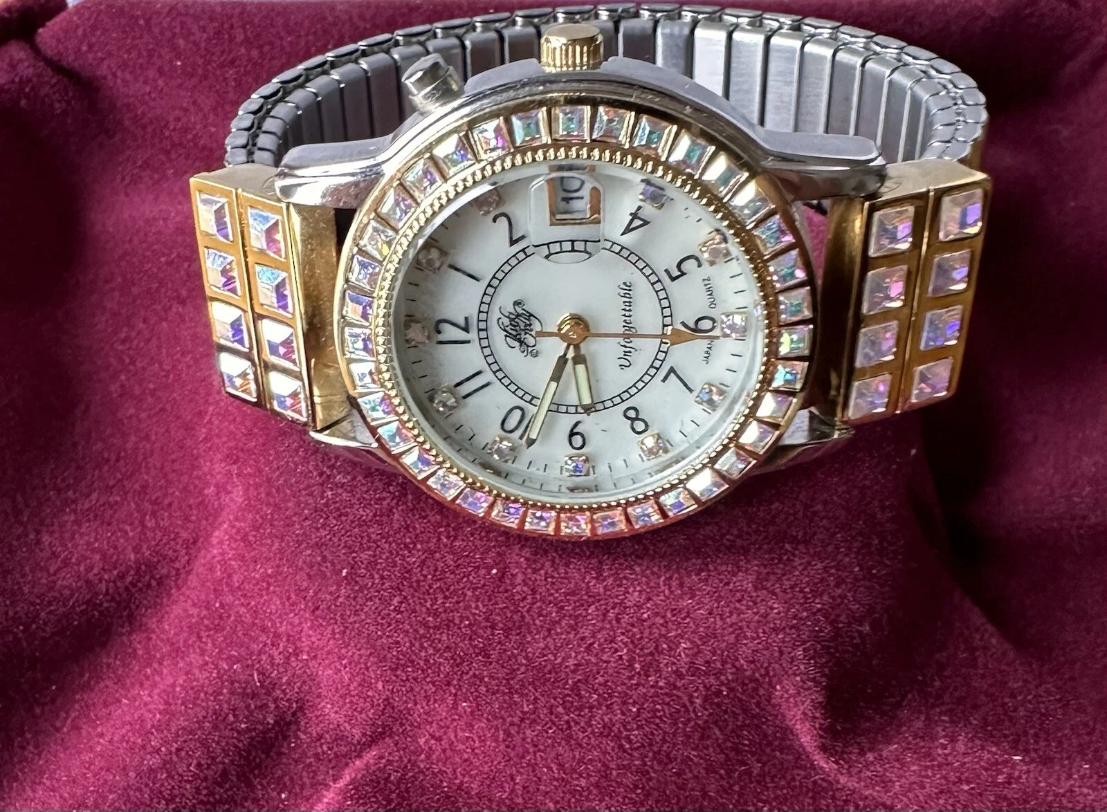 VINTAGE KIRKS FOLLY UNFORGETTABLE WATCH INDIGLO LIGHT STRETCH BAND NEEDS BATTERY