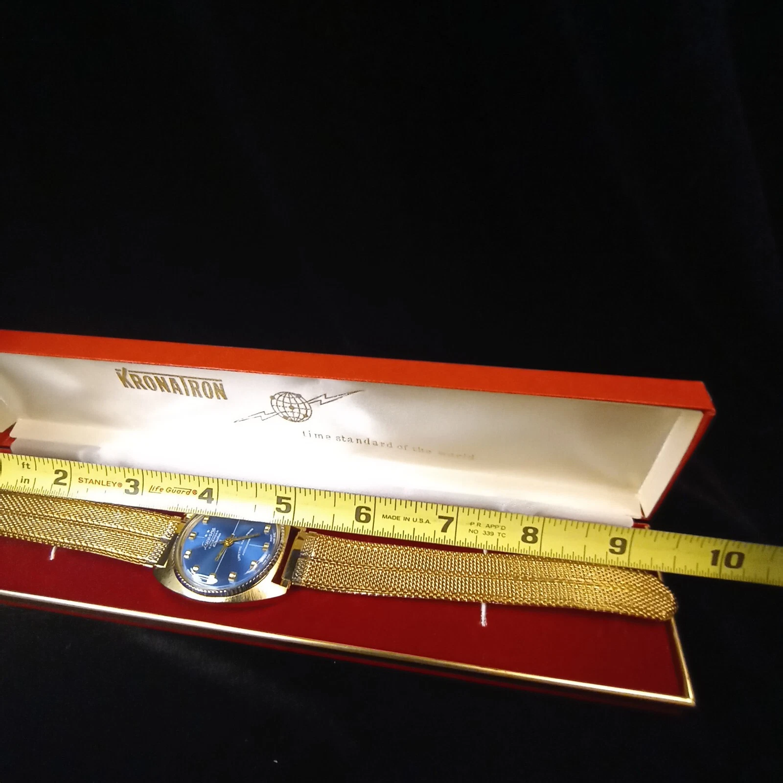 VINTAGE Lucerne Electra Kronatron Watch Mens Blue Calendar RUNNING Original Box