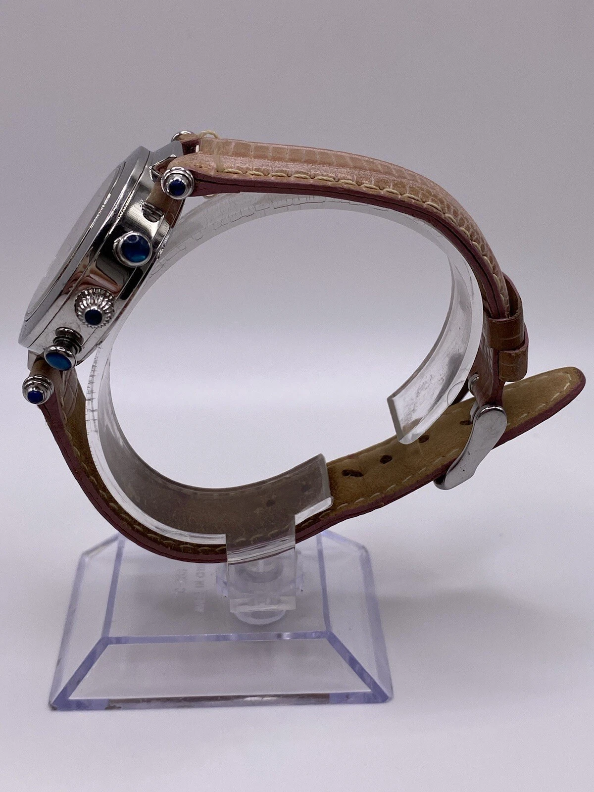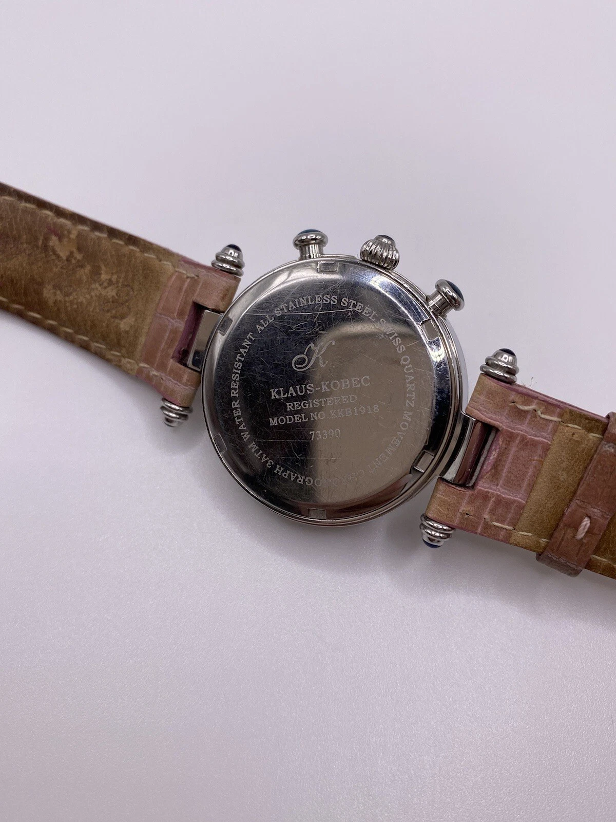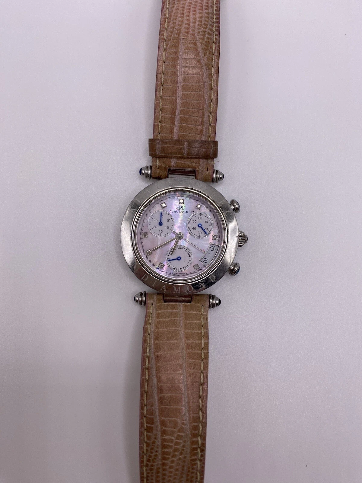 Klaus Kobec Ladies Pink Diamond Dial Face Chrono Leather Band Watch New Batt