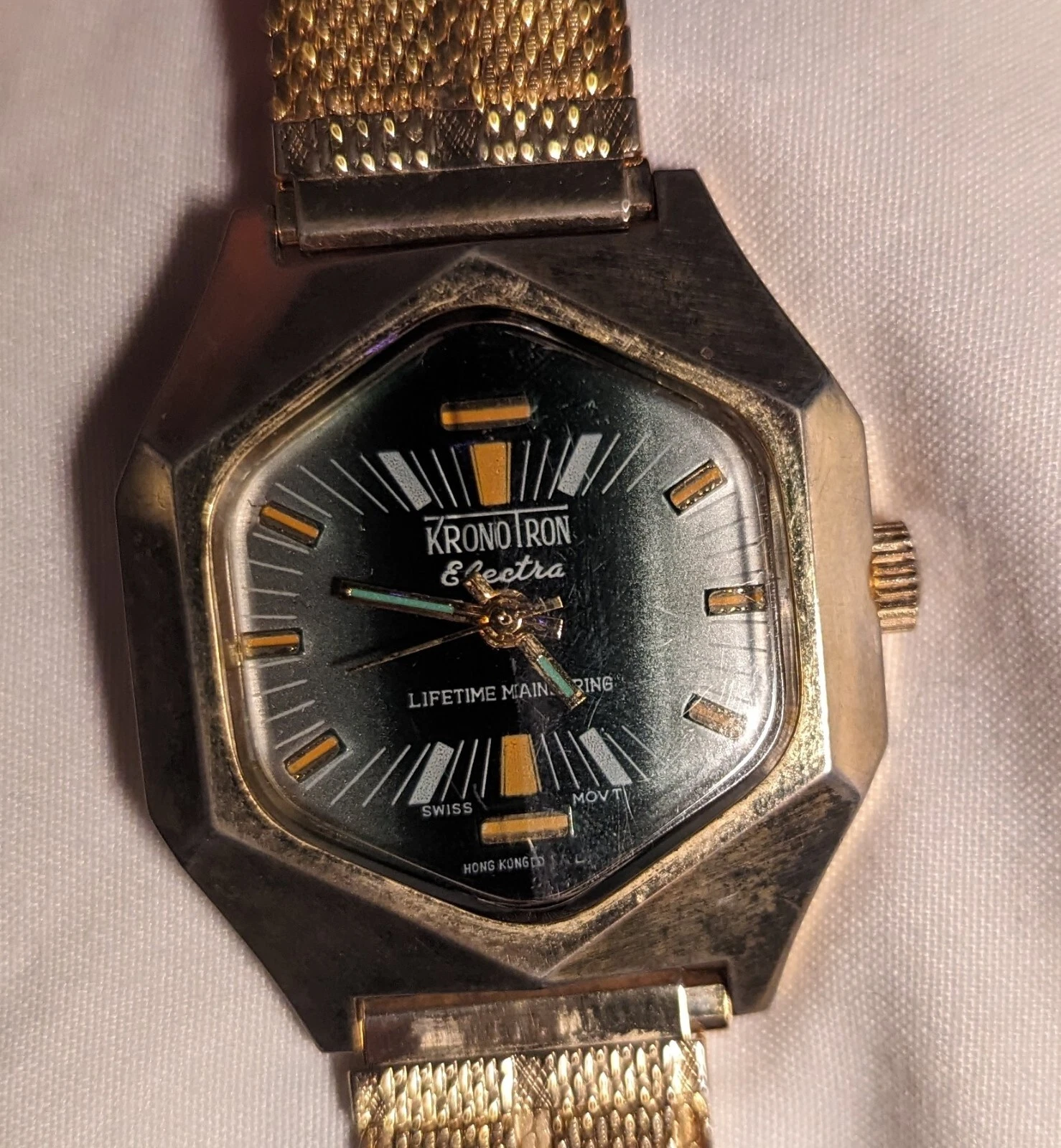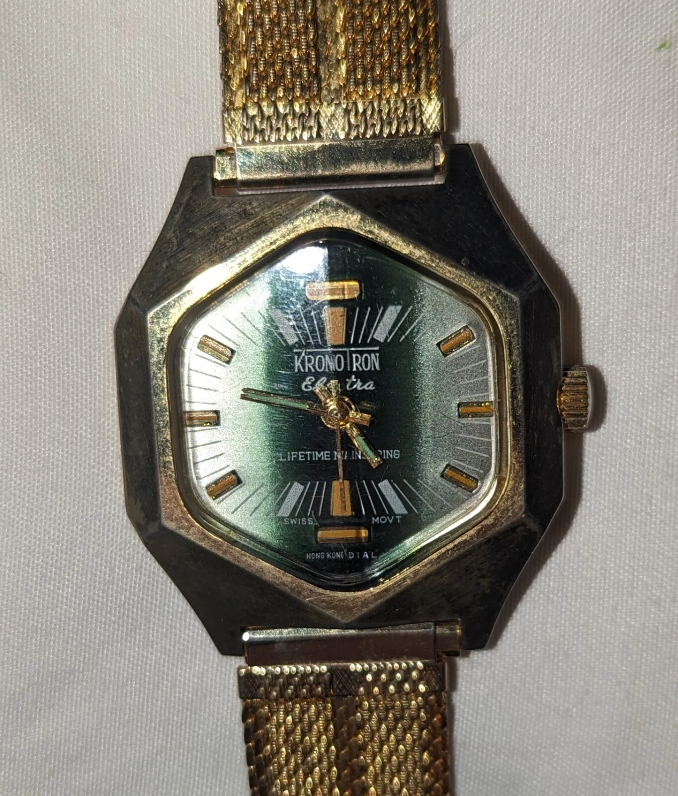 Extremely Rare Mens Kronotron Electra Swiss Made Green Dial