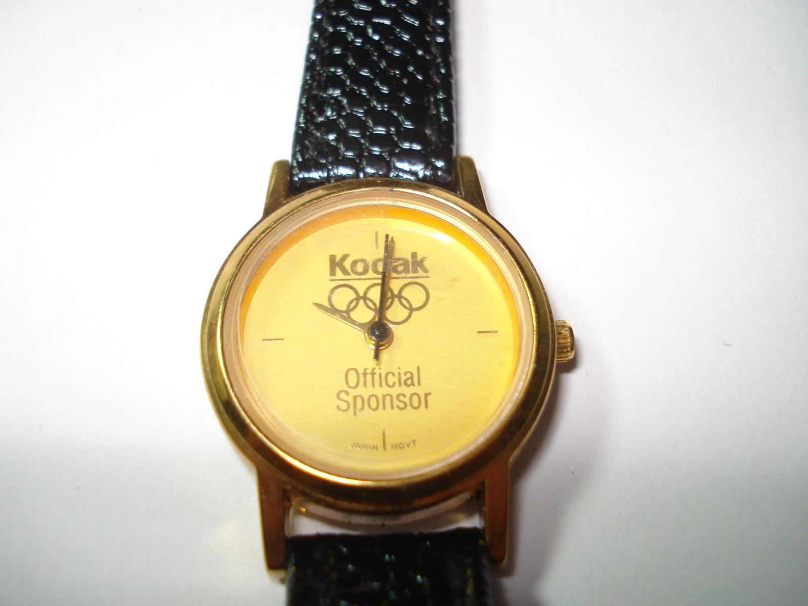 NEW KODAK OFFICIAL SPONSOR GOLD ADVERTISING WATCH NEW BATTERY LEATHER BAND 2