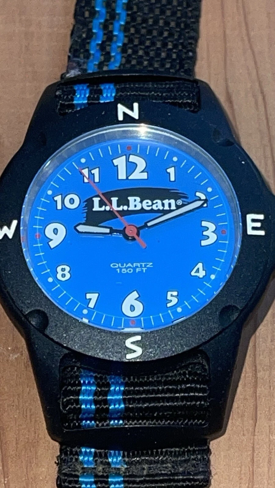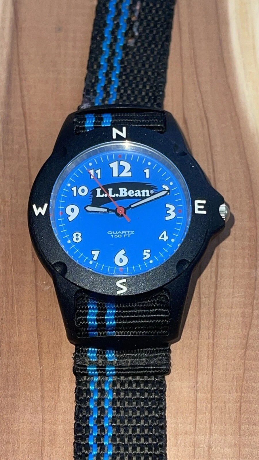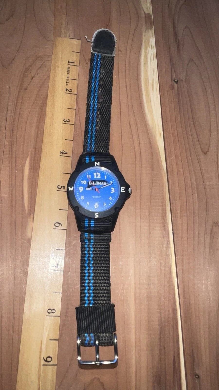 Ll Bean Vintage Watch Blue Face, Quartz Wristwatch Mens Blk-Blue Nylon Band