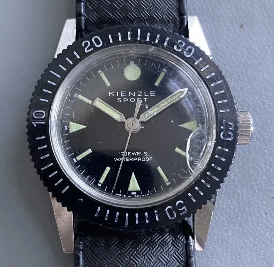Kienzle Sport Skin Diver Watch. Tritium Dial. Original Tropic Strap. Working