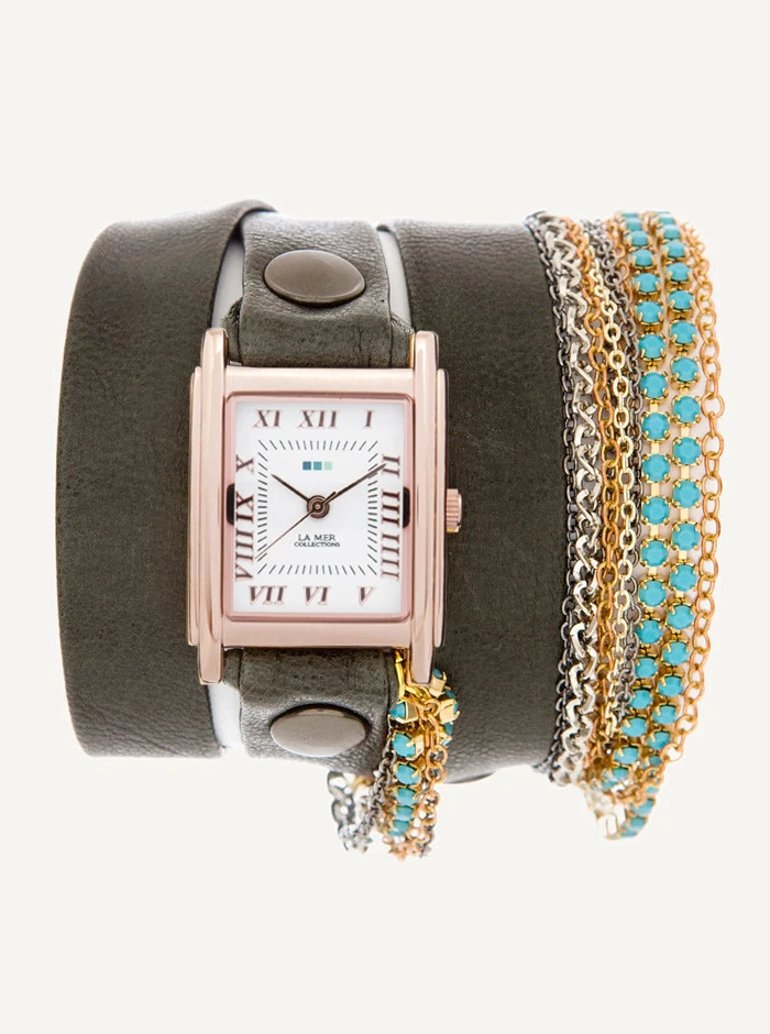 La Mer Turquoise Crystal Slate Gray with Gold Case Wrap