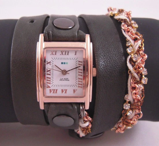 La Mer  Turkish Crystal Chain-Slate w/Gunmetal Rivets Rose Square