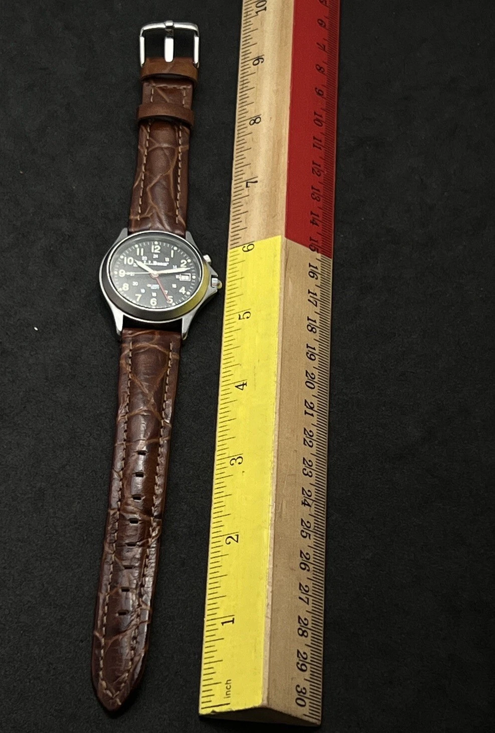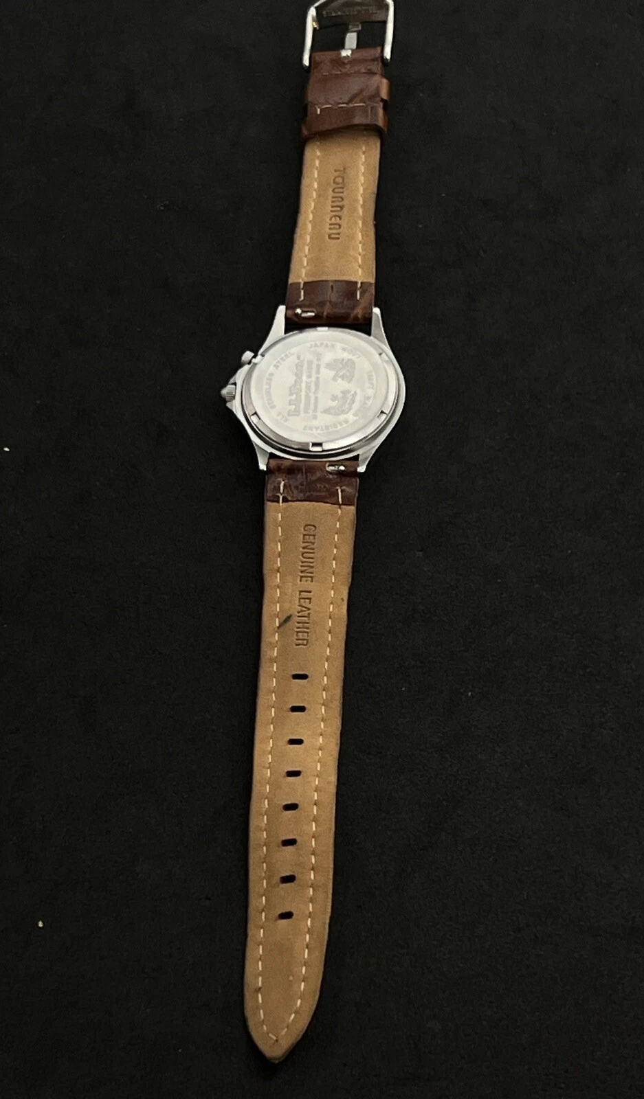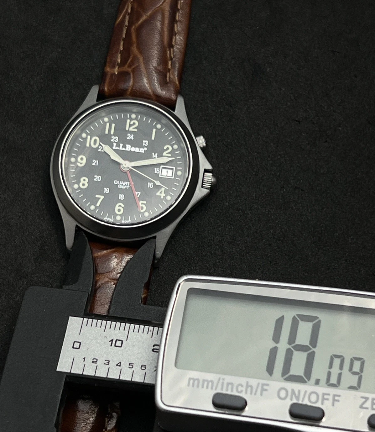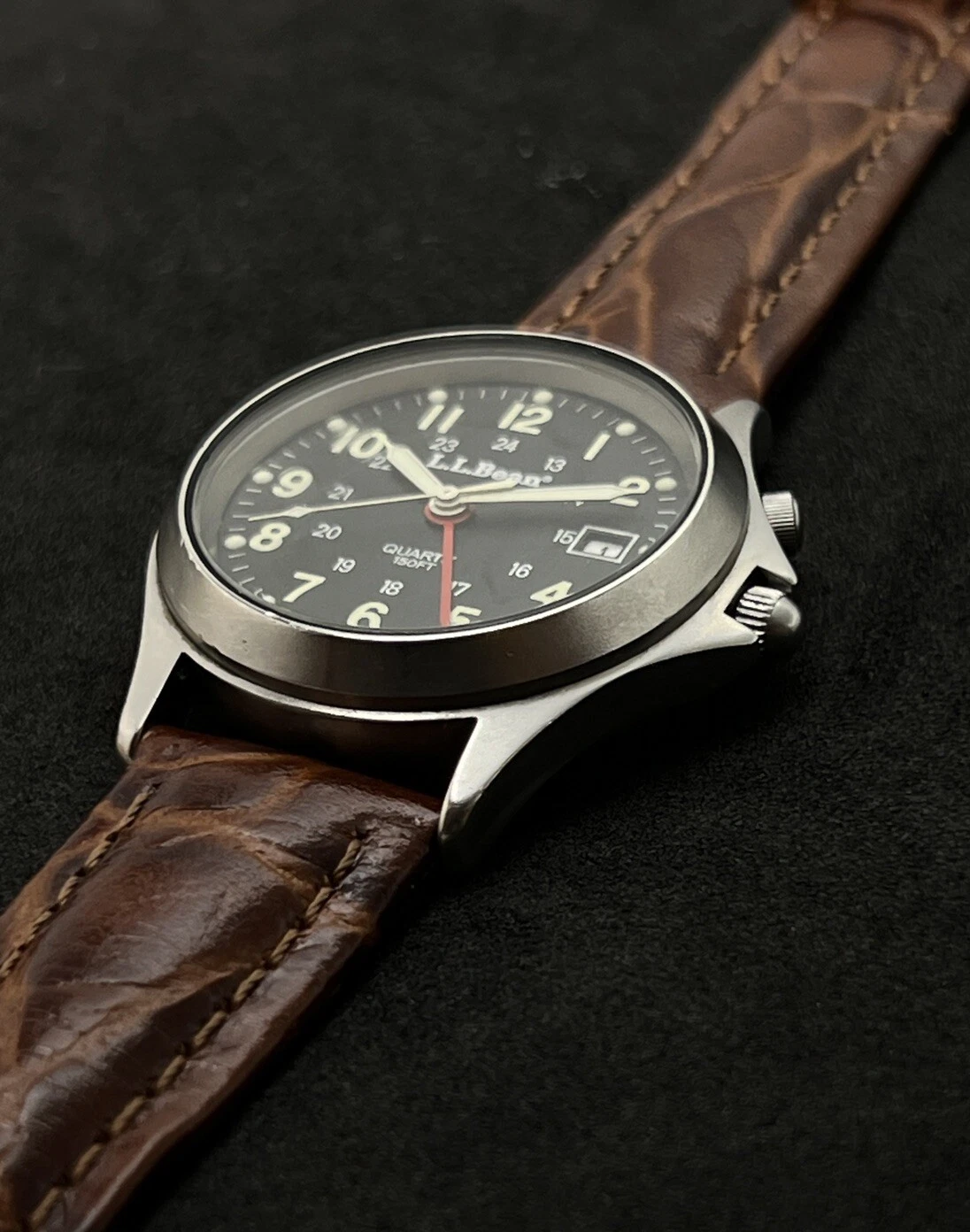Vintage LL BEAN Men's 36mm Alarm Date Quartz Watch Steel Black Tan Leather