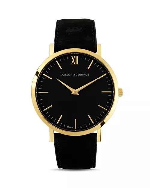 Larsson & Jennings Lugano Black Leather 40mm Gold Black