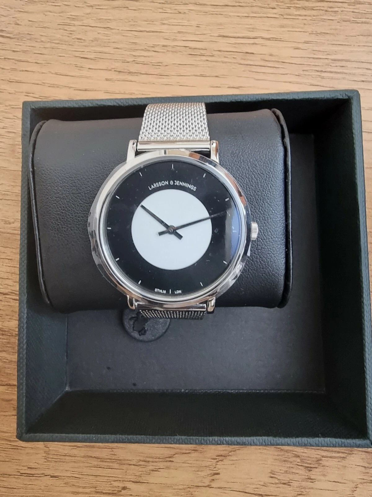 Larsson & Jennings Watch Code Dot Milanese Bracelet 38mm Silver Black New