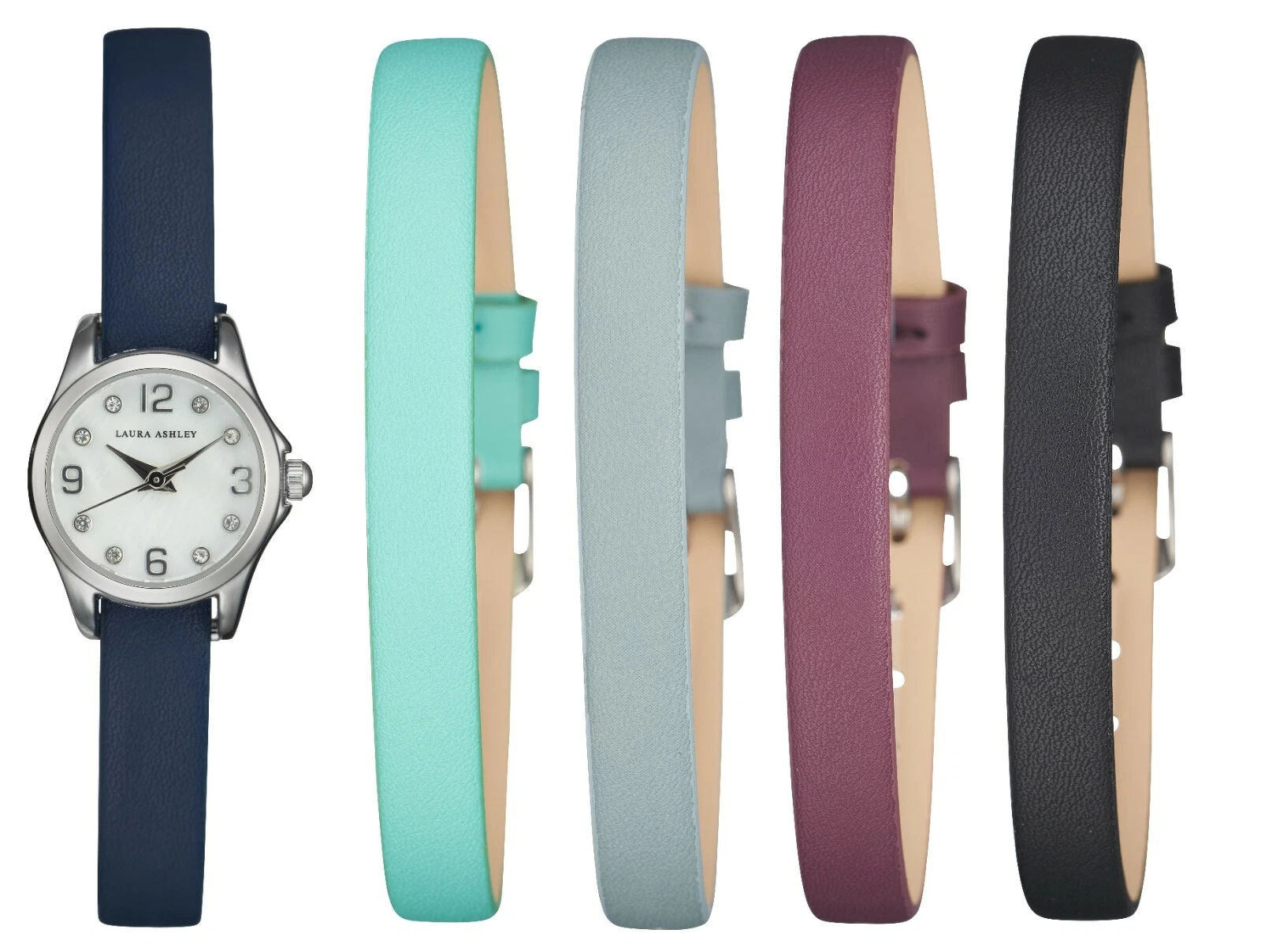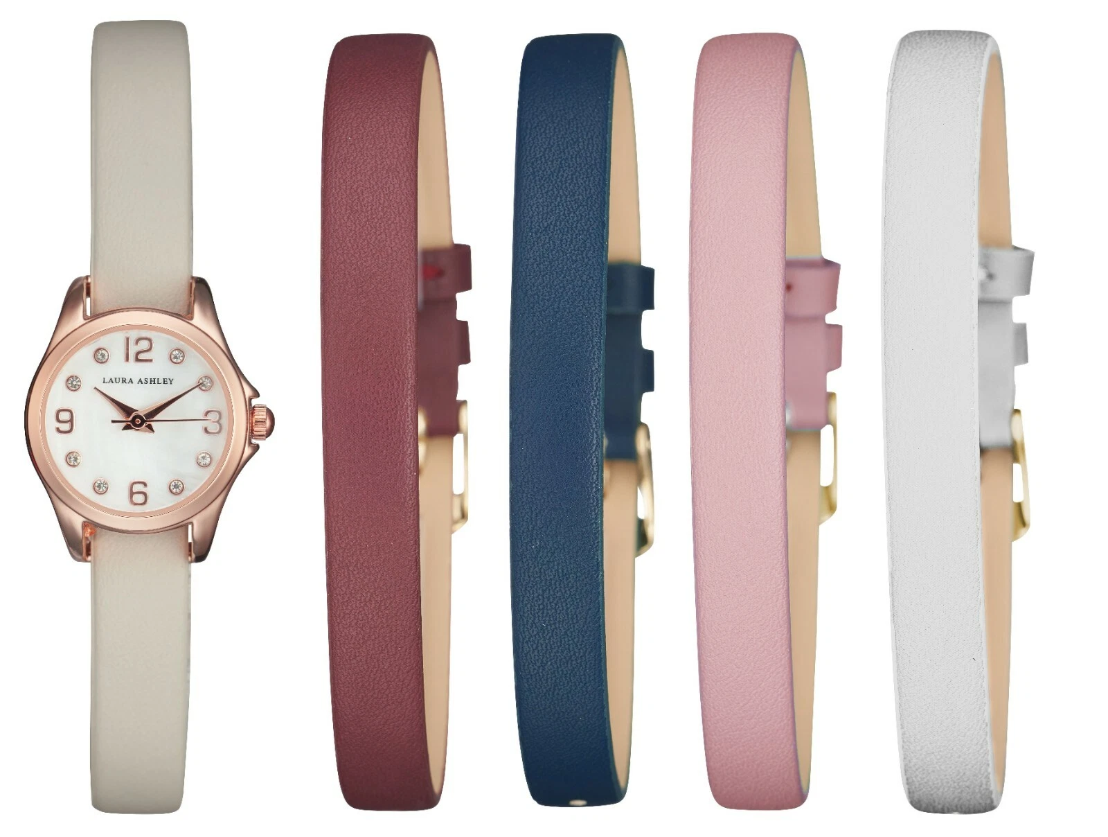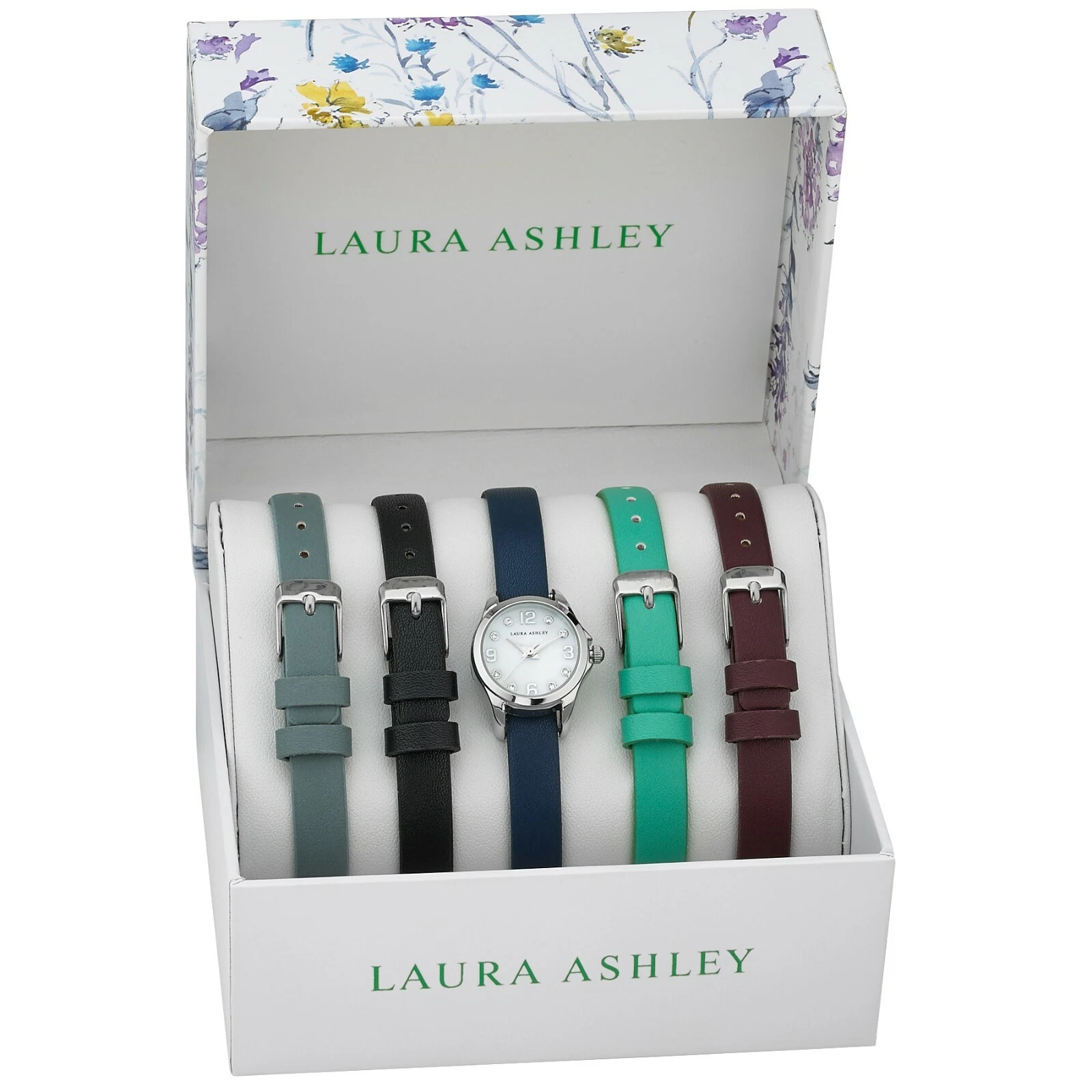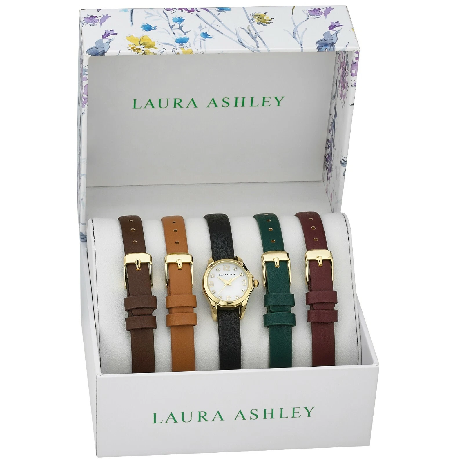 Laura Ashley Womens Mini Case Strap Watch Set with 5 Interchangeable Straps