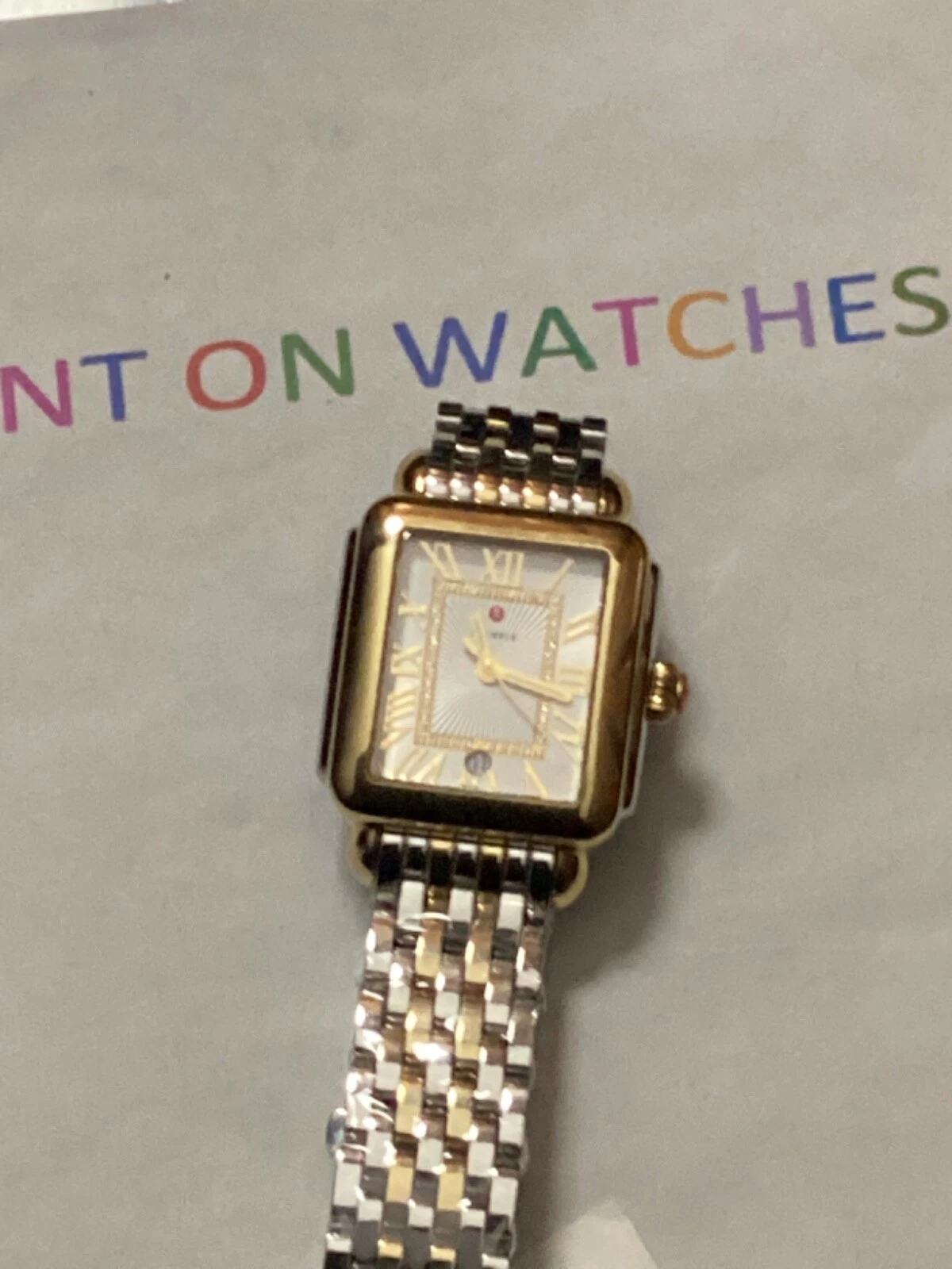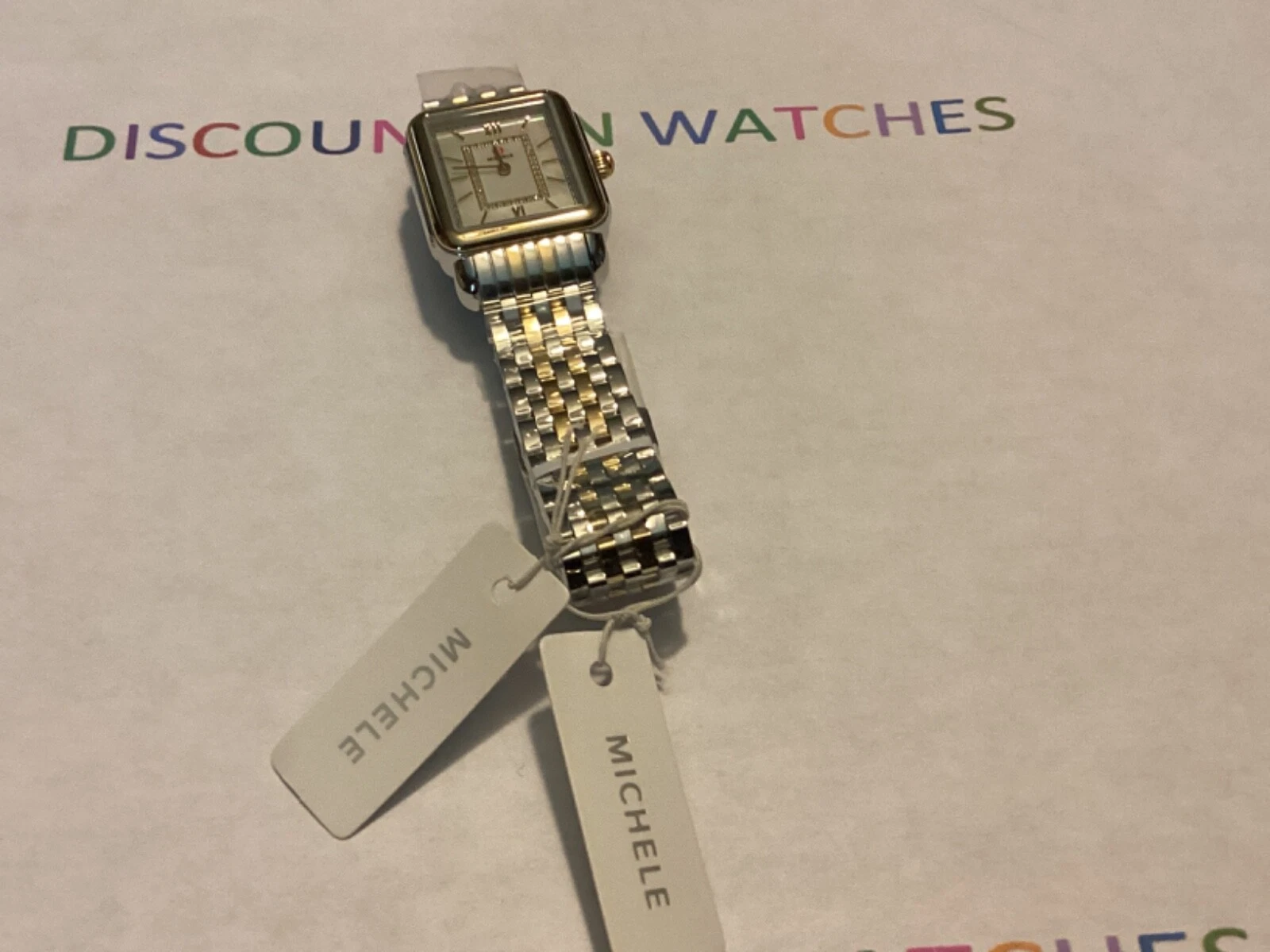 NEW Michele Deco Madison Mid Two-Tone 18K Gold Diamond Dial Watch