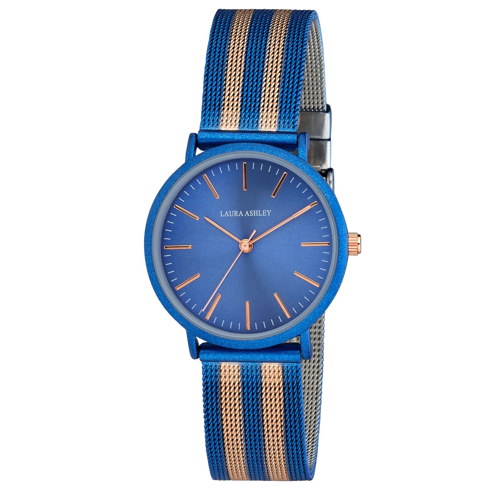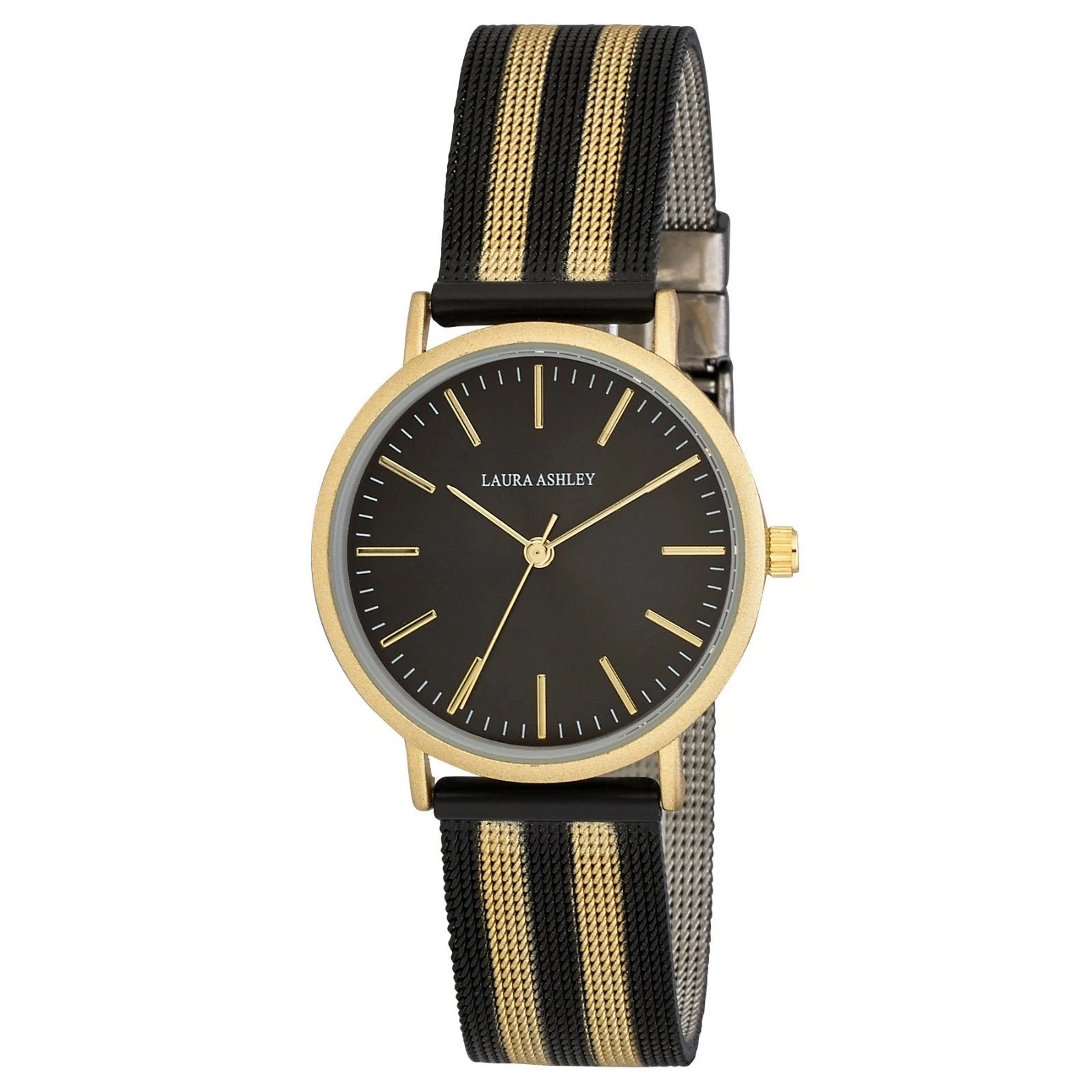 Laura Ashley Ladies Sunray Dial Striped Mesh Band Watch Comes in A Gift Box